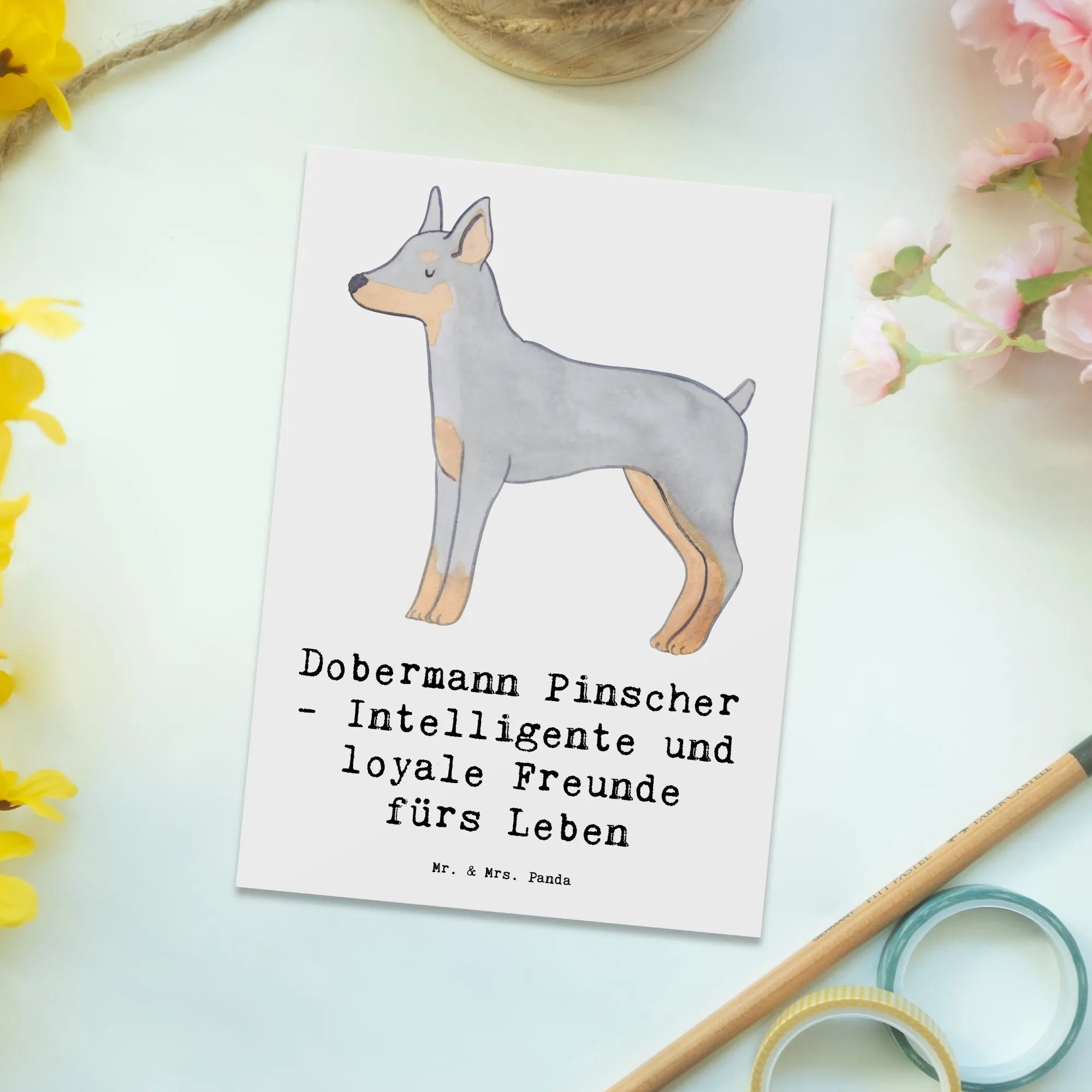 Pocztówka Dobermann Pinscher - Intelligente und loyale Freunde fürs Leben - Biały