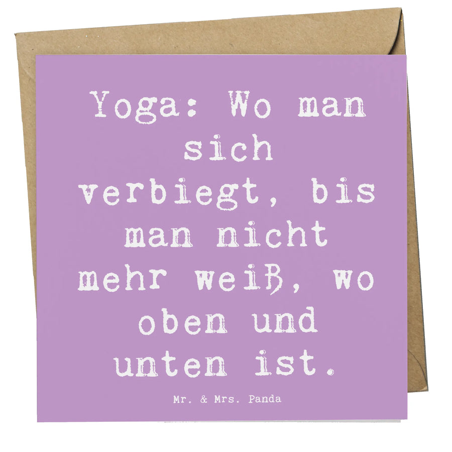 Die Deluxe Karte Yoga von Mr. & Mrs. Panda ist das perfekte Geschenk für alle Sportbegeisterten und Yoga-Liebhaber. Mit dem liebevollen Spruch "Yoga: Wo man sich verbiegt, bis man nicht mehr weiß, wo oben und unten ist." findest du die ideale Grußkarte für viele Anlässe. Ob Geburtstag, Hochzeit oder einfach nur ein individueller Gruß – diese hochwertige Klappkarte ist vielseitig einsetzbar.