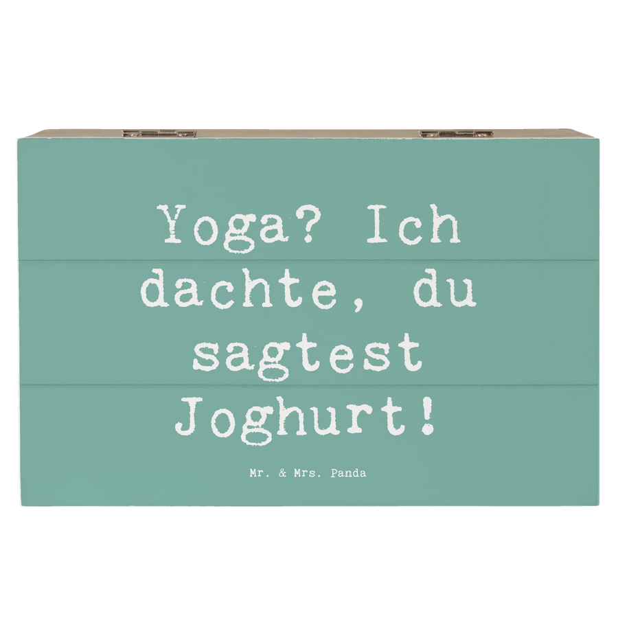Mit einem lustigen Spruch "Yoga? Ich dachte, du sagtest Joghurt!" bringt diese Kiste ein Lächeln auf jedes Gesicht und eignet sich hervorragend als Erinnerungskiste für besondere Anlässe wie Geburtstage, Kommunionen, Konfirmationen oder einfach nur als Aufbewahrungsort für Fotos.