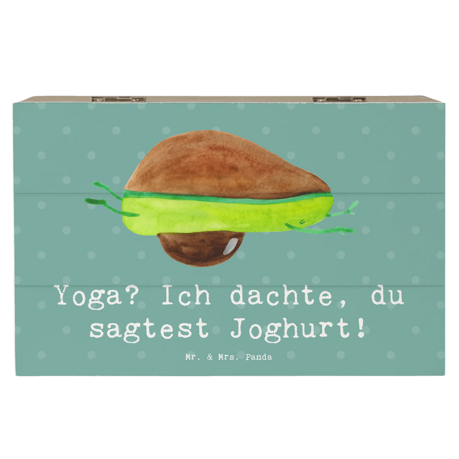 Die wunderschöne Holzkiste von Mr. & Mrs. Panda ist das ideale Geschenk für Yogafans! Mit dem liebevollen und humorvollen Spruch "Yoga? Ich dachte, du sagtest Joghurt!" bringt sie nicht nur einen Hauch von Freude, sondern auch einen praktischen Nutzen.