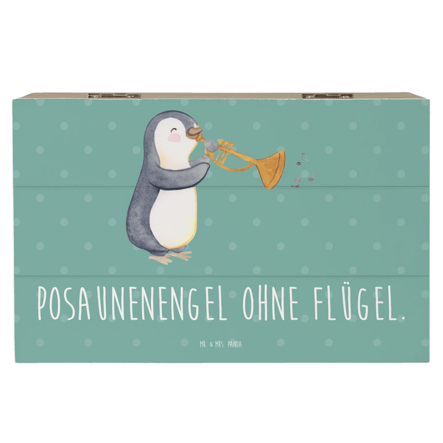 Die wunderschöne Holzkiste von Mr. & Mrs. Panda ist das perfekte Geschenk für alle Musikliebhaber! Mit ihrem einzigartigen Motiv der Posaune und dem Slogan "Posaunenengel ohne Flügel" ziert sie jedes Zuhause und bringt Freude in jedes musikalische Herz. Diese robust gebaute Erinnerungskiste ist ideal, um wertvolle Schätze, Erinnerungen und besondere Momentaufnahmen zu bewahren.