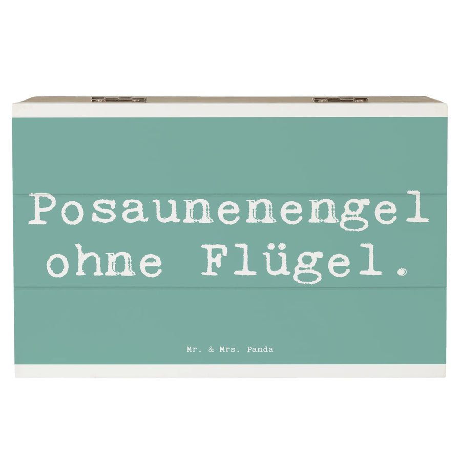 Die wunderschöne Holzkiste von Mr. & Mrs. Panda ist ein echtes Schmuckstück für alle Musikliebhaber und Posaunenspieler! Mit ihrem zauberhaften Motiv der Posaune und dem liebevollen Spruch 'Posaunenengel ohne Flügel' lässt sie nicht nur Herzen höherschlagen, sondern bietet dir auch einen idealen Platz für all deine wertvollen Erinnerungen. Ob für die ersten Schritte in die Musikwelt, besondere Anlässe wie die Kommunion oder Konfirmation, oder einfach nur als stilvolle Aufbewahrung für Fotos und andere Schätze, diese Kiste ist ein wahrhaft vielseitiges Geschenk.