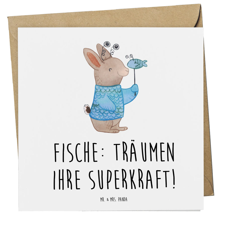 Auf der Vorderseite der Karte prangt der liebevoll gestaltete Spruch "Fische: Träumen ihre Superkraft!" – ein perfektes Motto für alle, die in den Zauber der Phantasie eintauchen.
