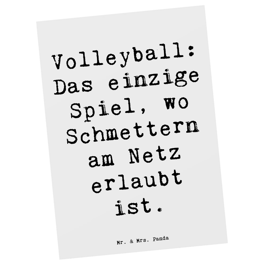 Entdecke die perfekte Postkarte für jeden Volleyball-Liebhaber! Diese einzigartige Postkarte von Mr. & Mrs. Panda mit dem liebevollen Motiv "Volleyball: Das einzige Spiel, wo Schmettern am Netz erlaubt ist." ist das ideale Geschenk für Sportler und Fans der Sportart.