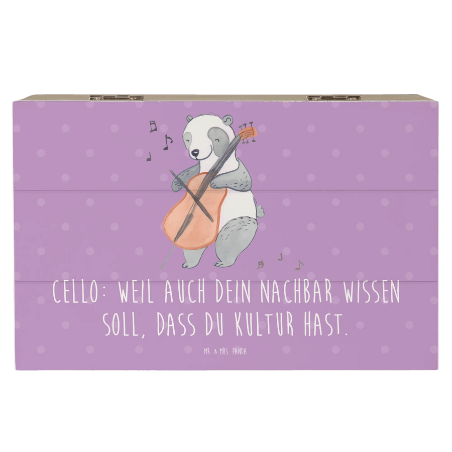 Die Holzkiste mit dem wunderschönen Cello-Motiv von Mr. & Mrs. Panda ist die perfekte Aufbewahrung für all deine wertvollen Erinnerungen! Sie ist nicht nur praktisch, sondern auch ein echter Hingucker in jedem Zuhause. Mit einem Slogan, der selbst den Nachbarn zum Schmunzeln bringt – "Cello: Weil auch dein Nachbar wissen soll, dass du Kultur hast" – ist diese Kiste ideal für alle Musikliebhaber und Cello-Fans.