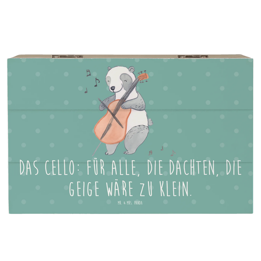 Entdecke die bezaubernde Holzkiste von Mr. & Mrs. Panda – eine wunderbare Erinnerungskiste, die das Herz eines jeden Musikliebhabers höherschlagen lässt. Diese speziell gestaltete Kiste ist mit einem exquisiten Motiv eines Cellos verziert und trägt den humorvollen Slogan: "Das Cello: Für alle, die dachten, die Geige wäre zu klein." Egal, ob du selbst ein Streichinstrument spielst oder einem geliebten Musiker ein besonderes Geschenk machen möchtest, diese Kiste ist die perfekte Wahl.