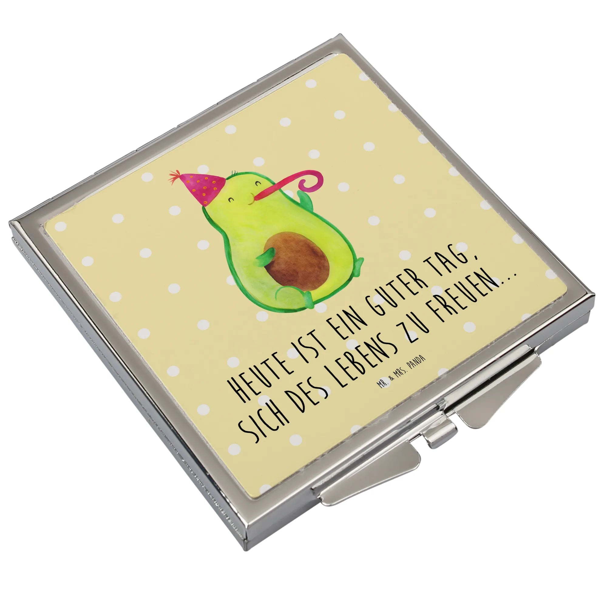 Kwadratowe lusterko do torebki Awokado impreza - z napisem - biały