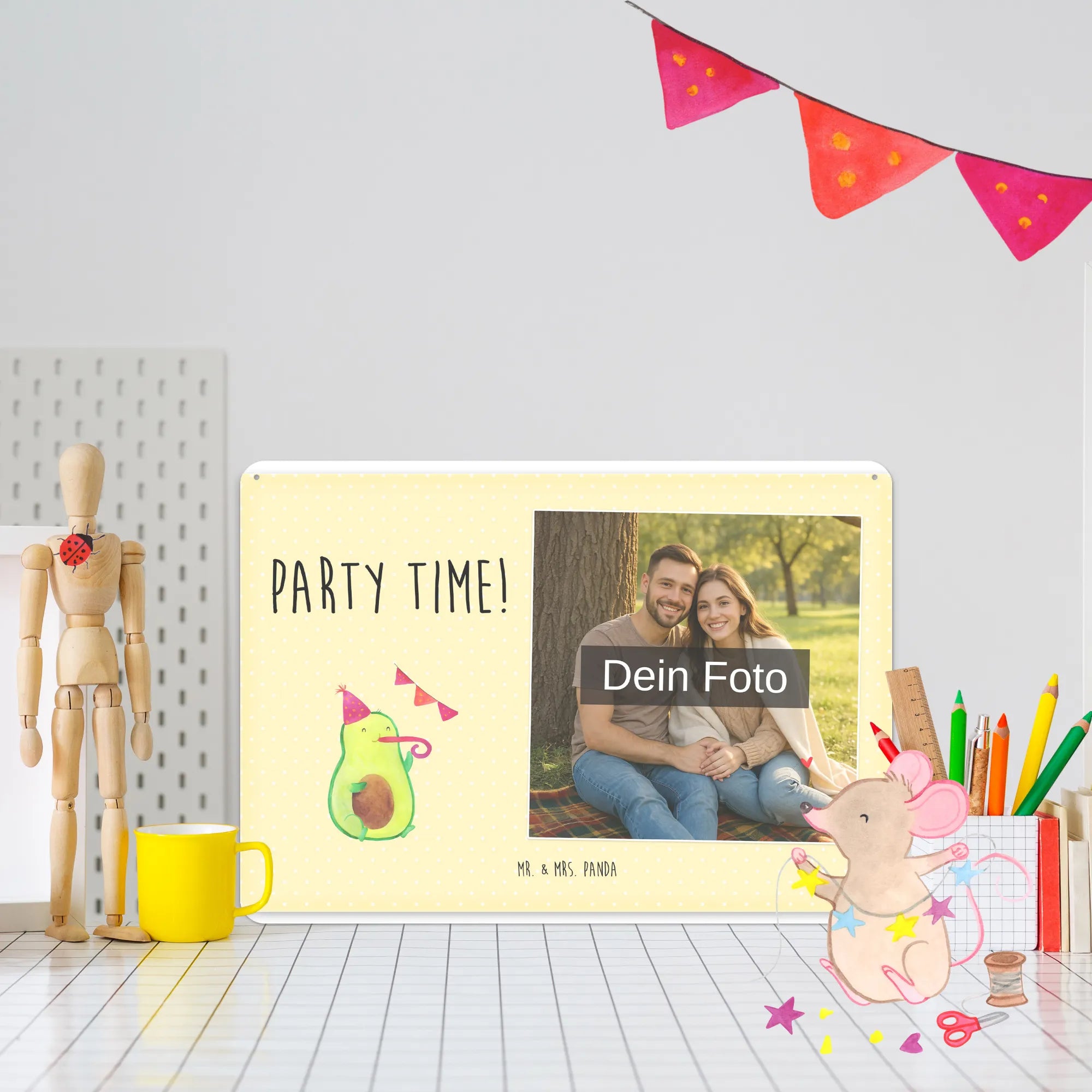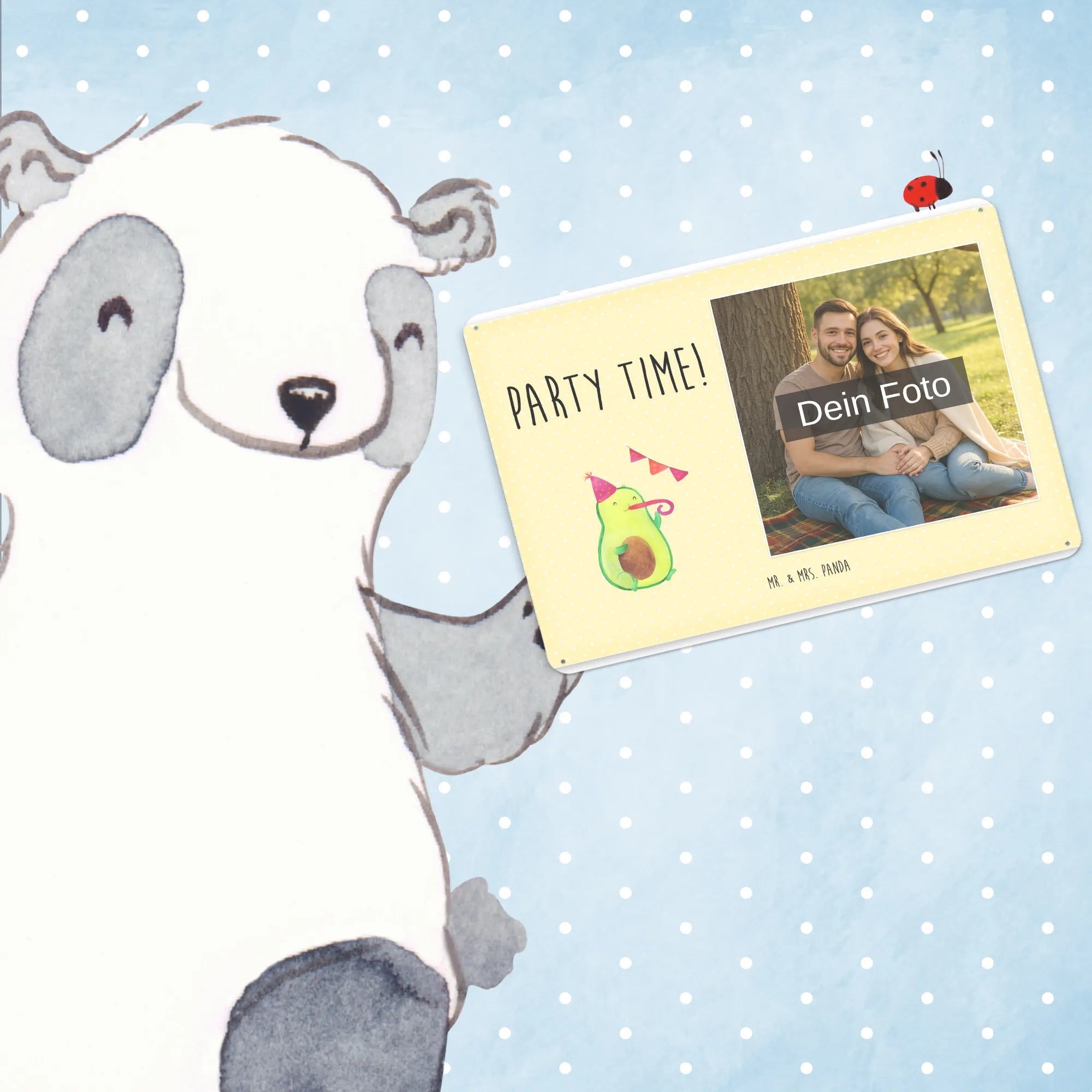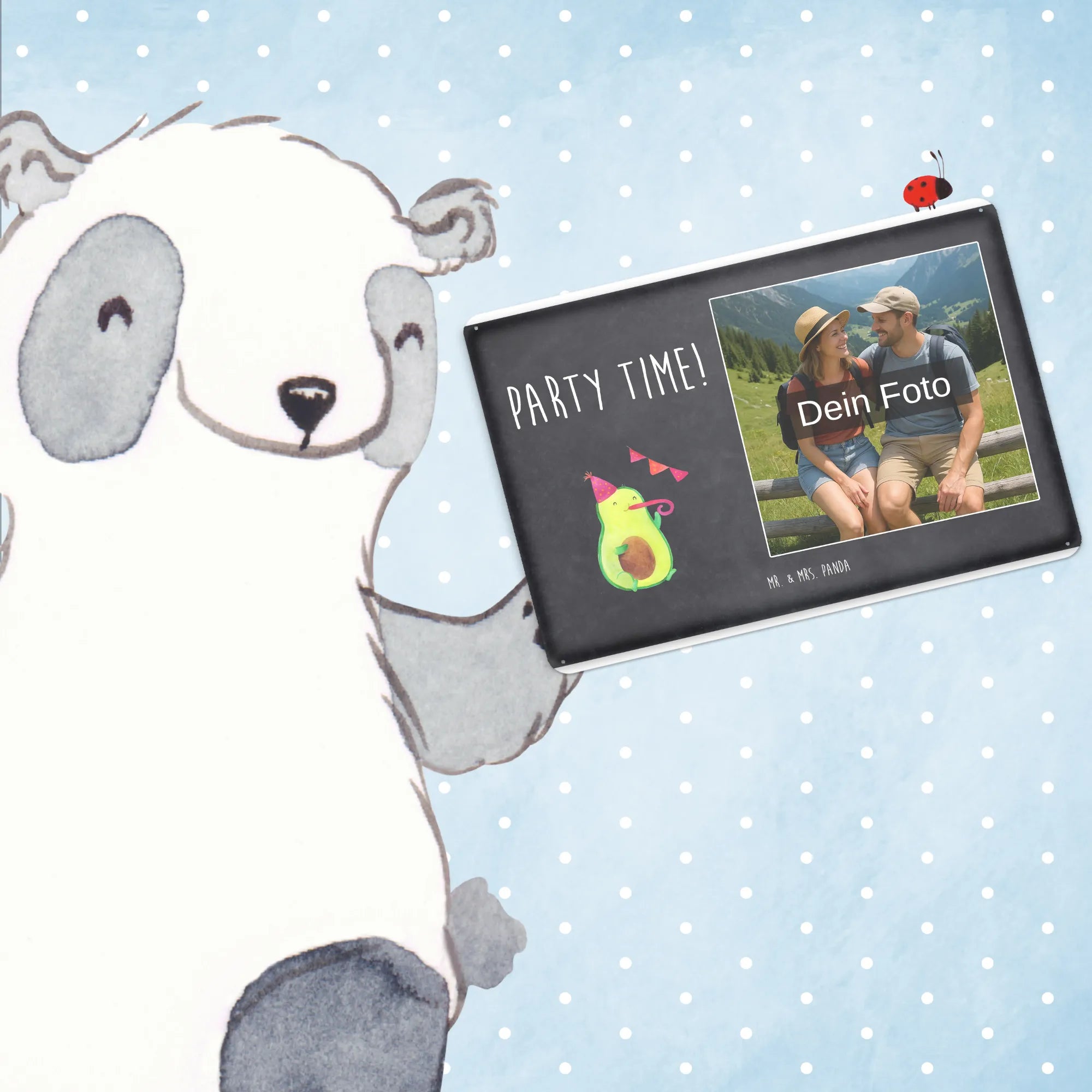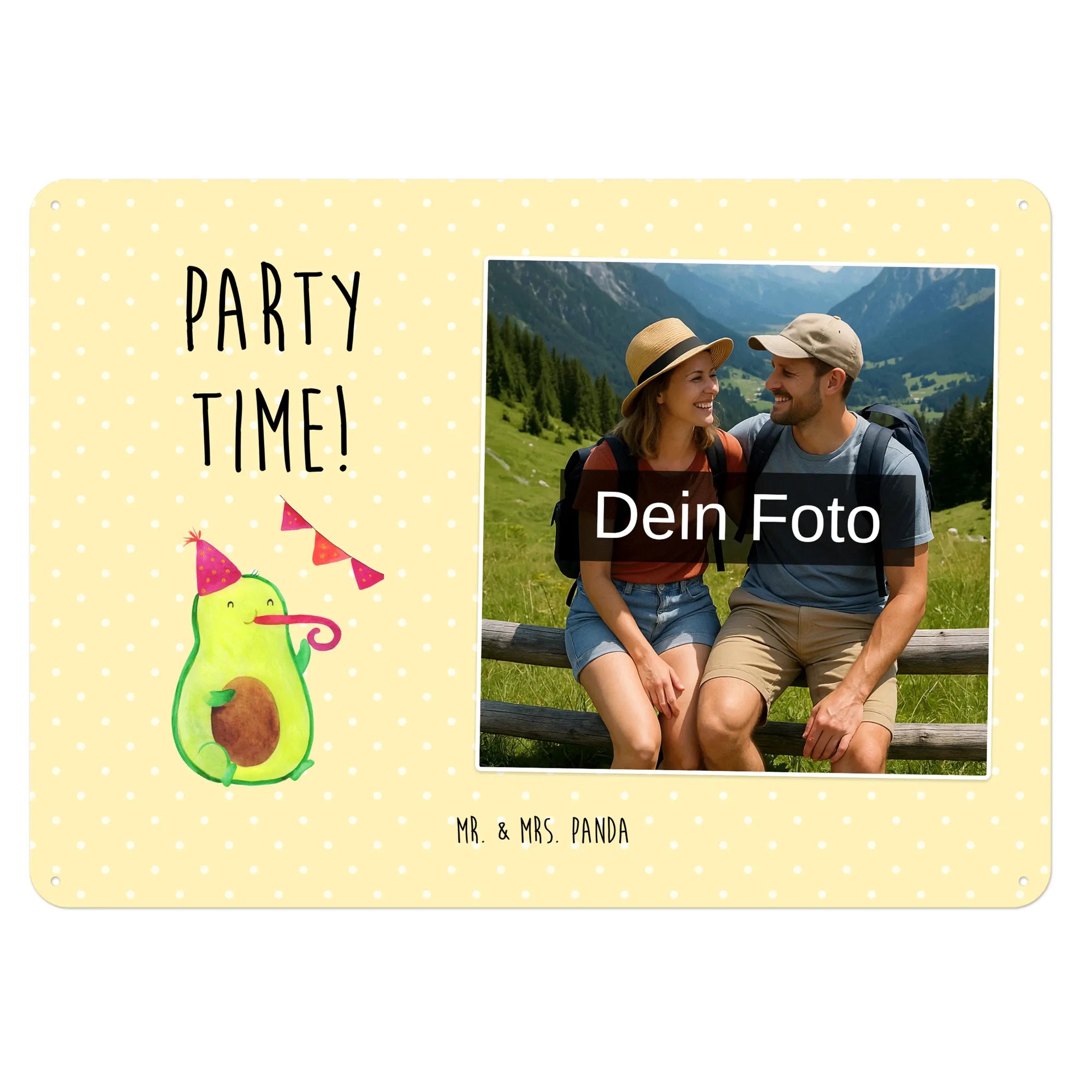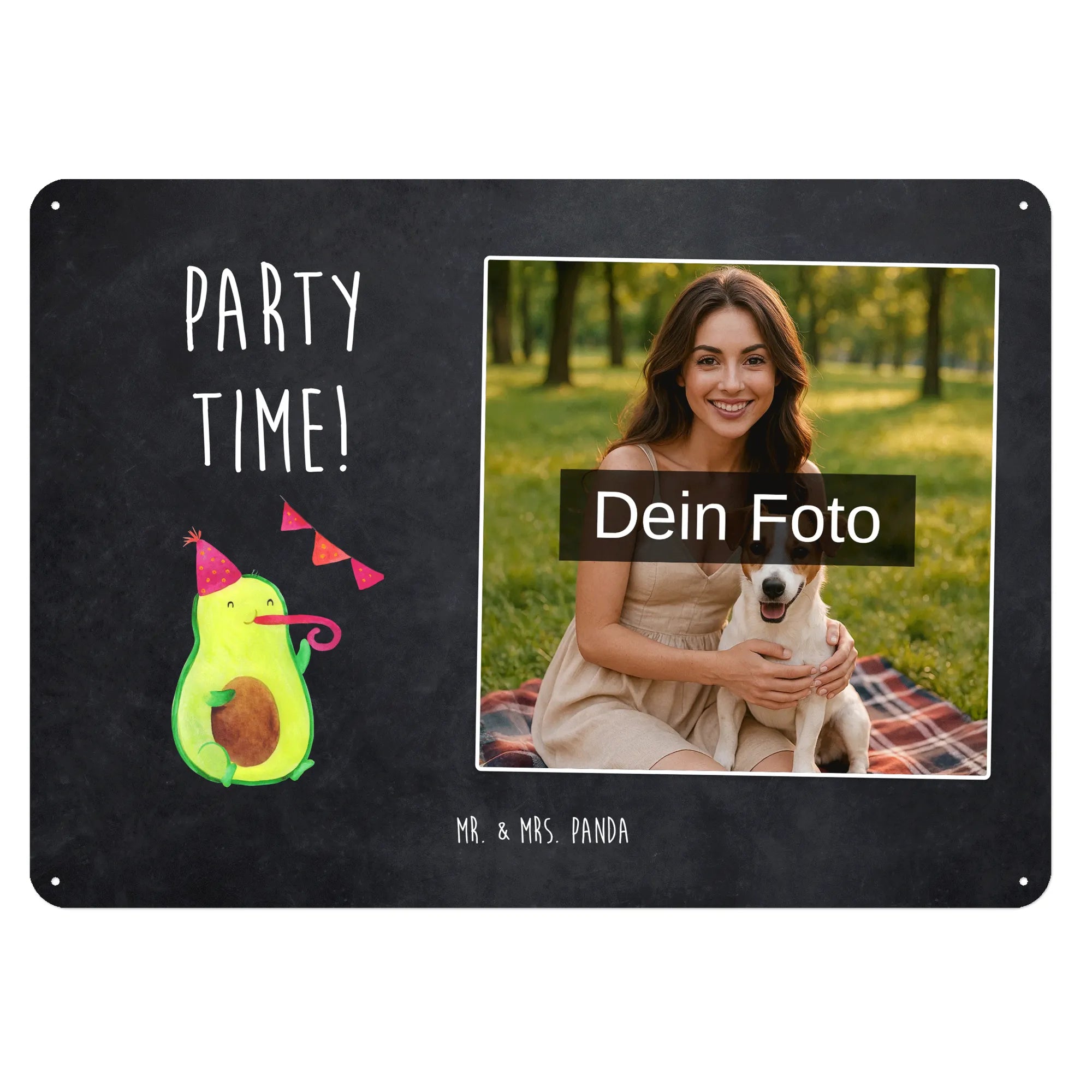 Spersonalizowany metalowy szyld ze zdjęciem Awokado Czas na imprezę - DIN A6 - Kreidetafel