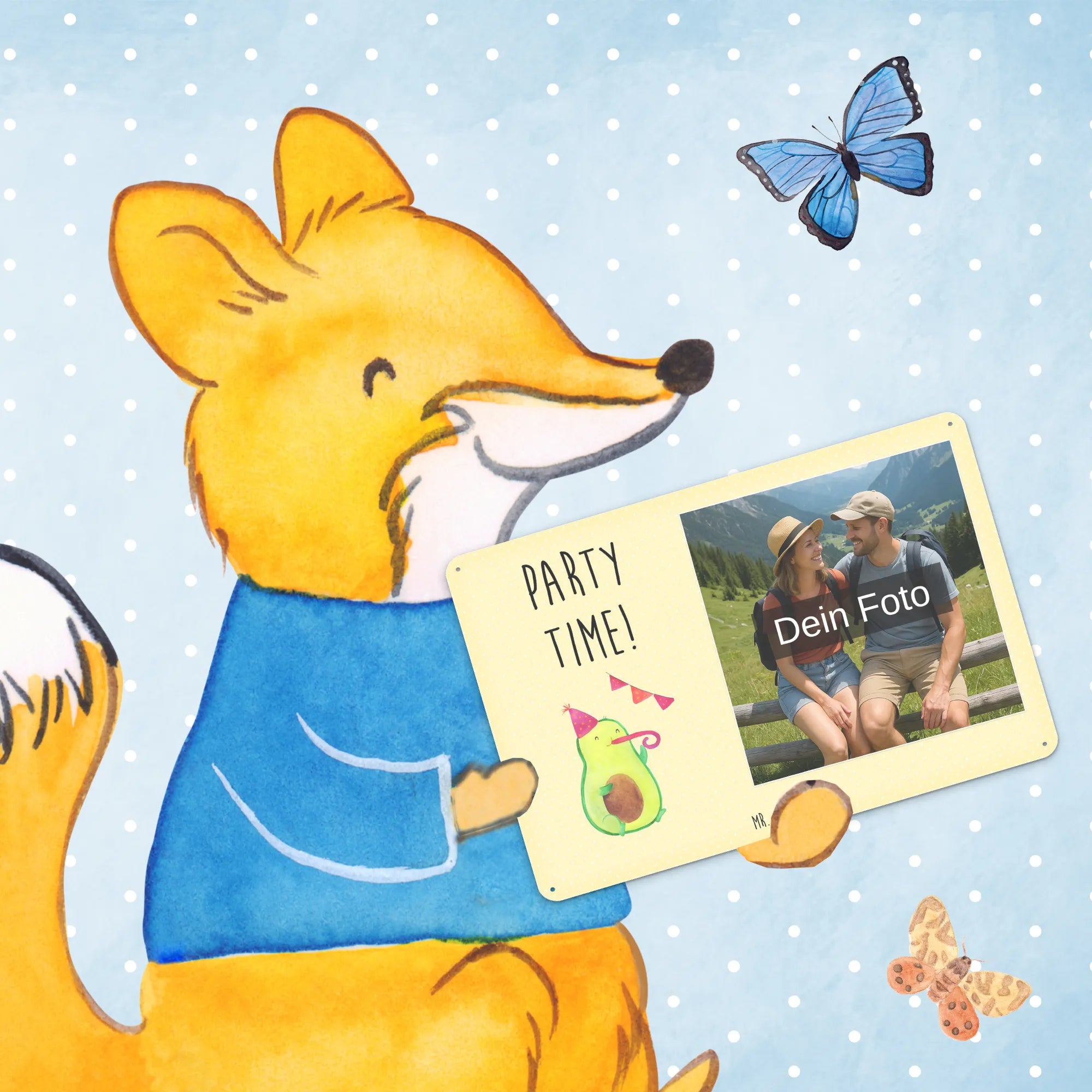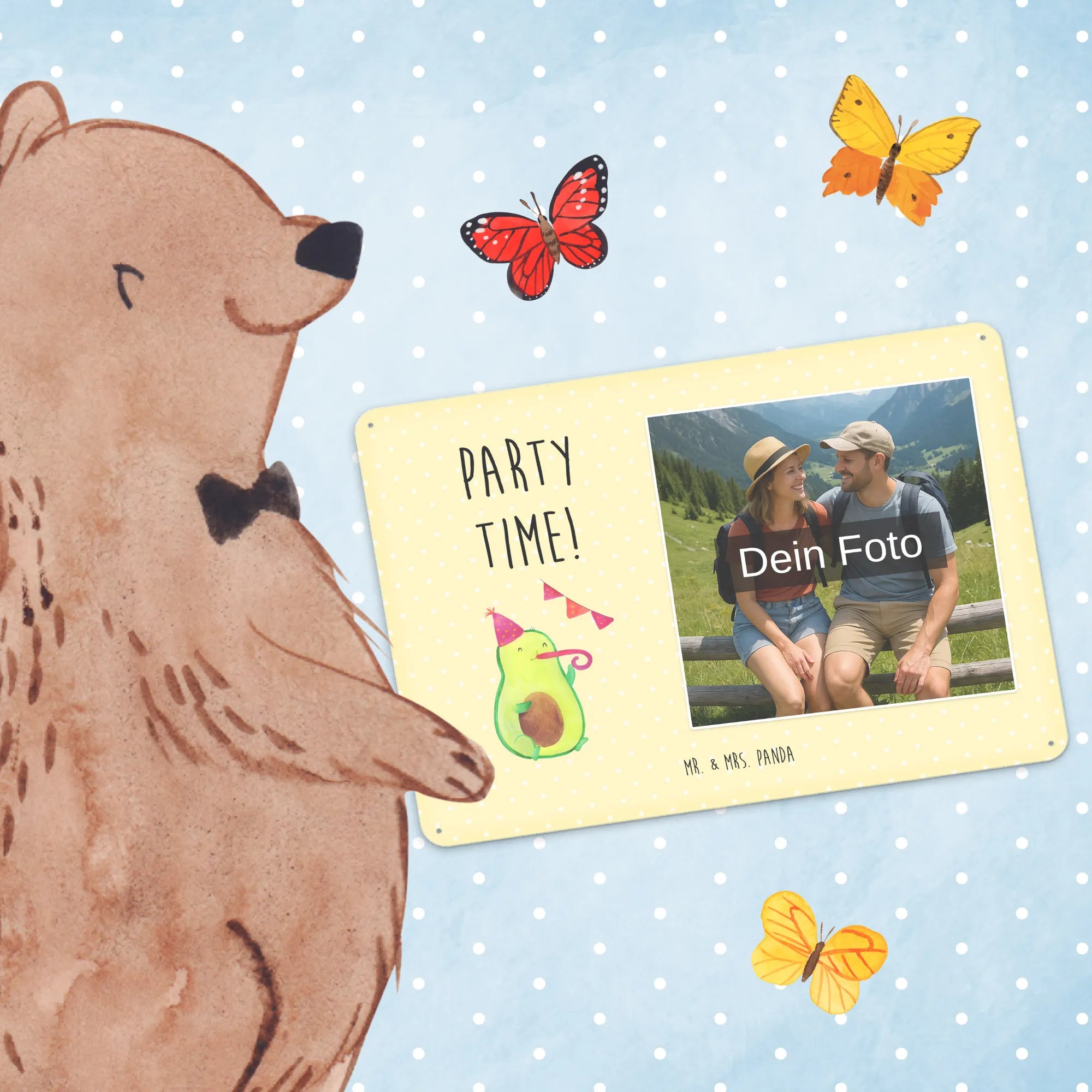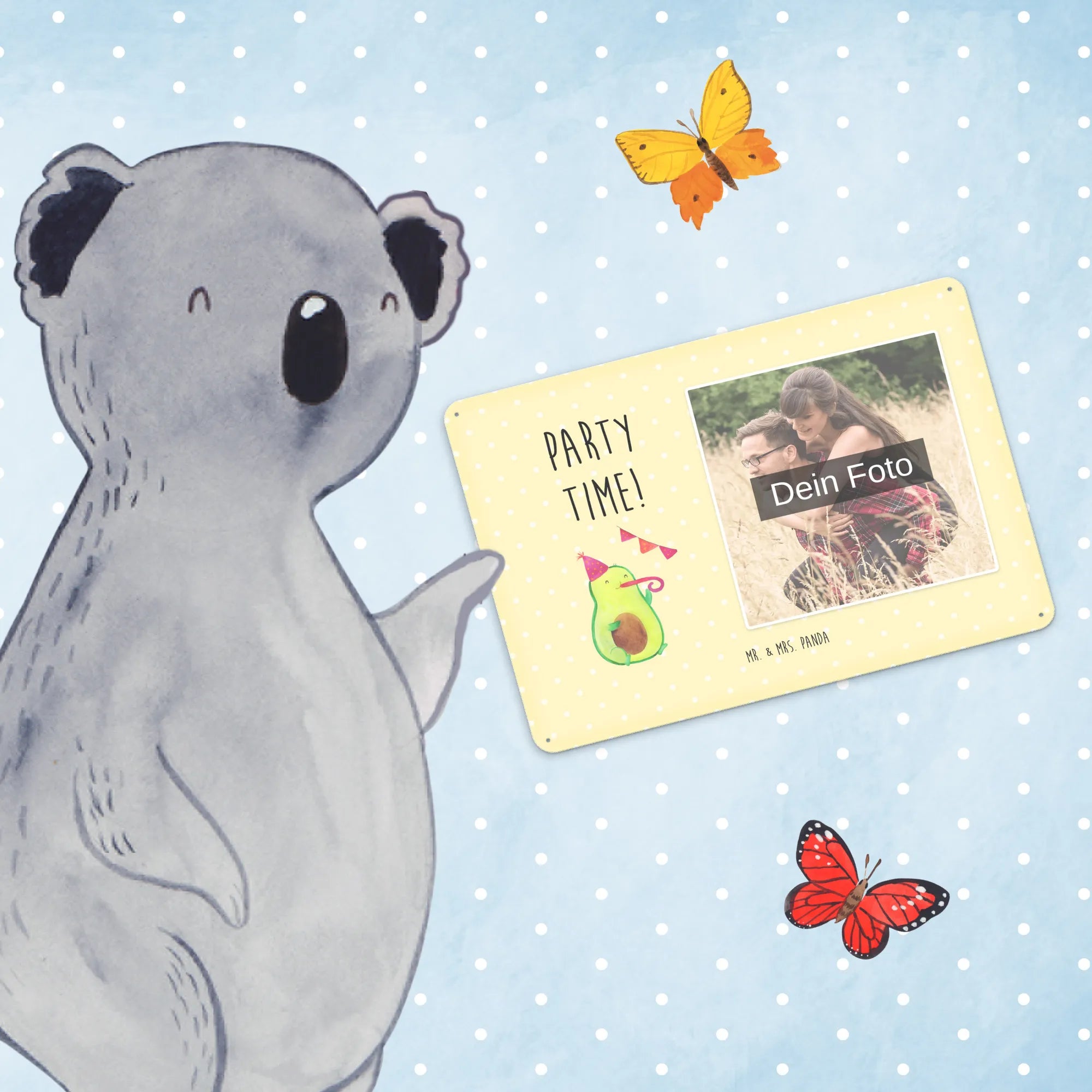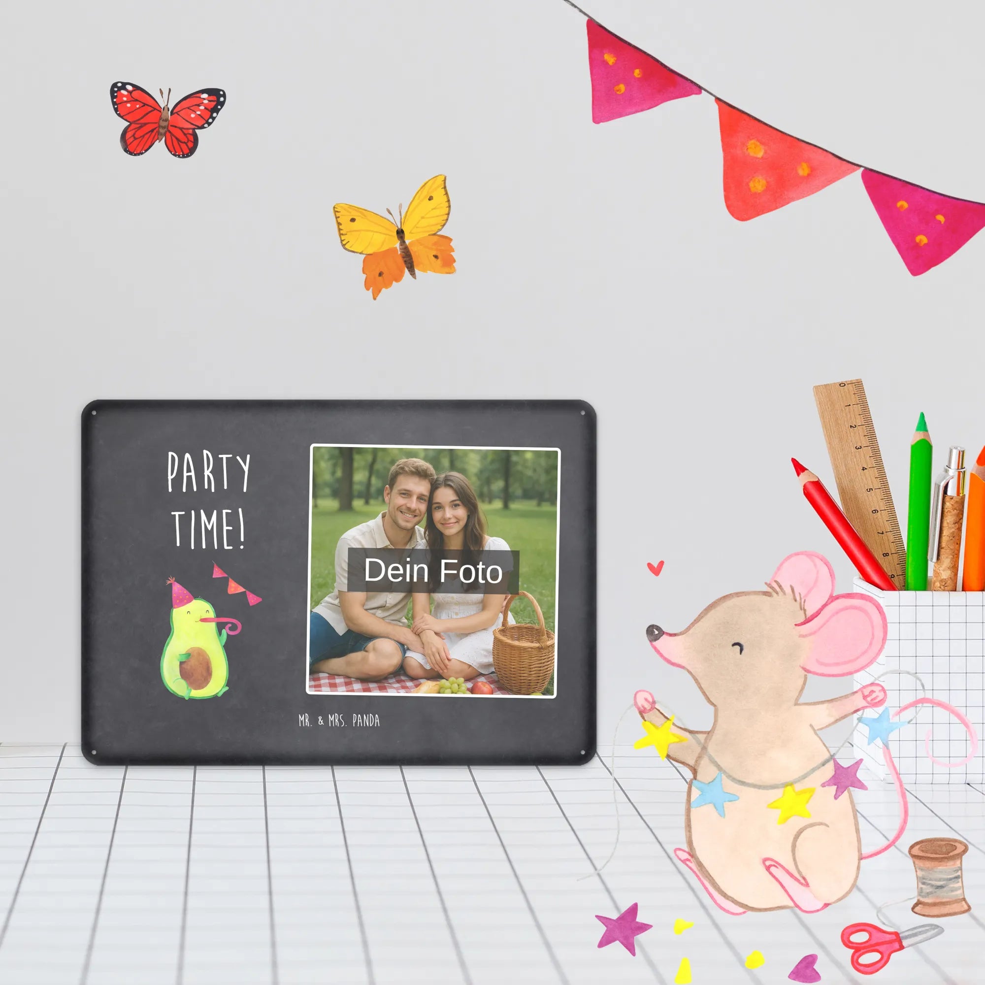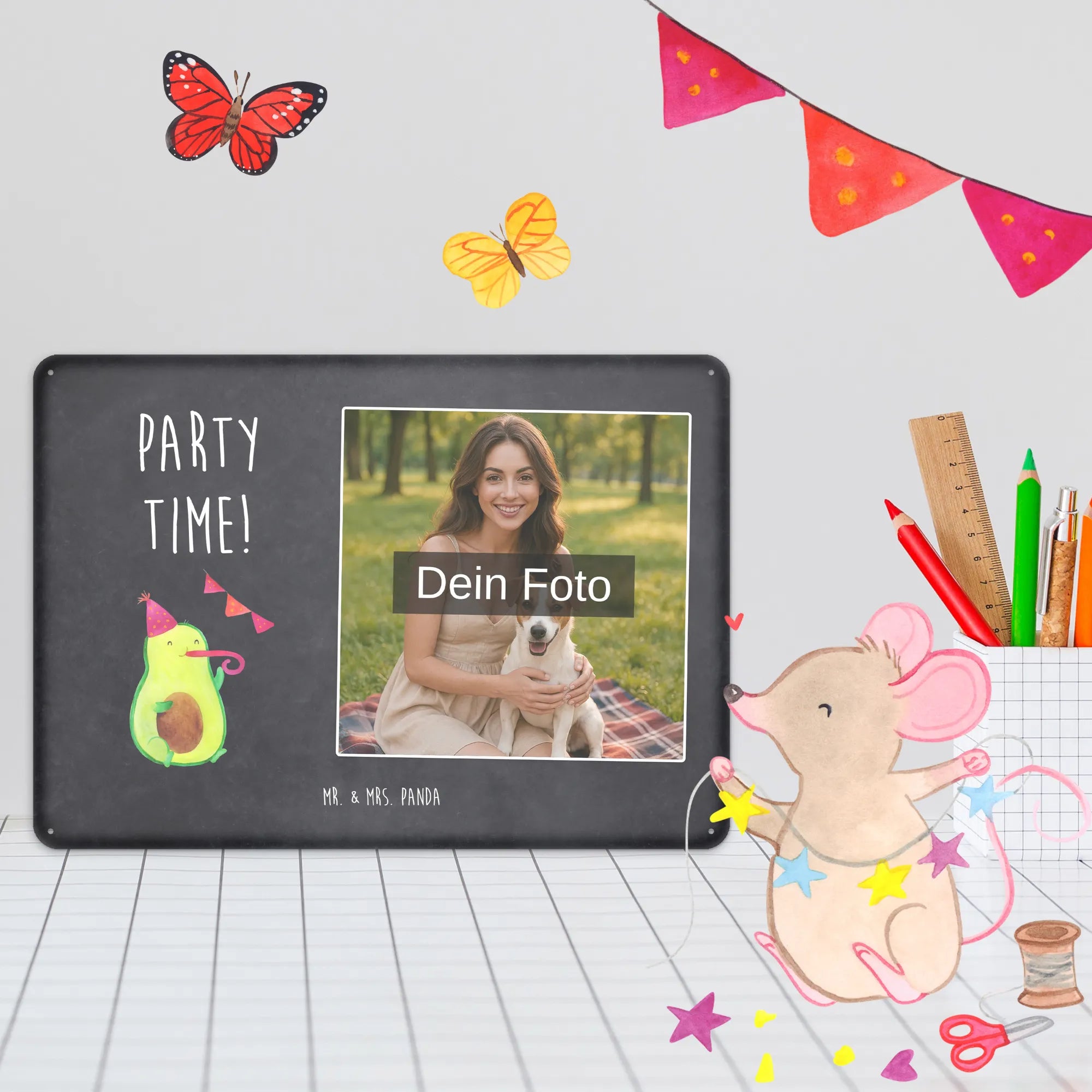 Spersonalizowany metalowy szyld ze zdjęciem Awokado Czas na imprezę - DIN A6 - Kreidetafel