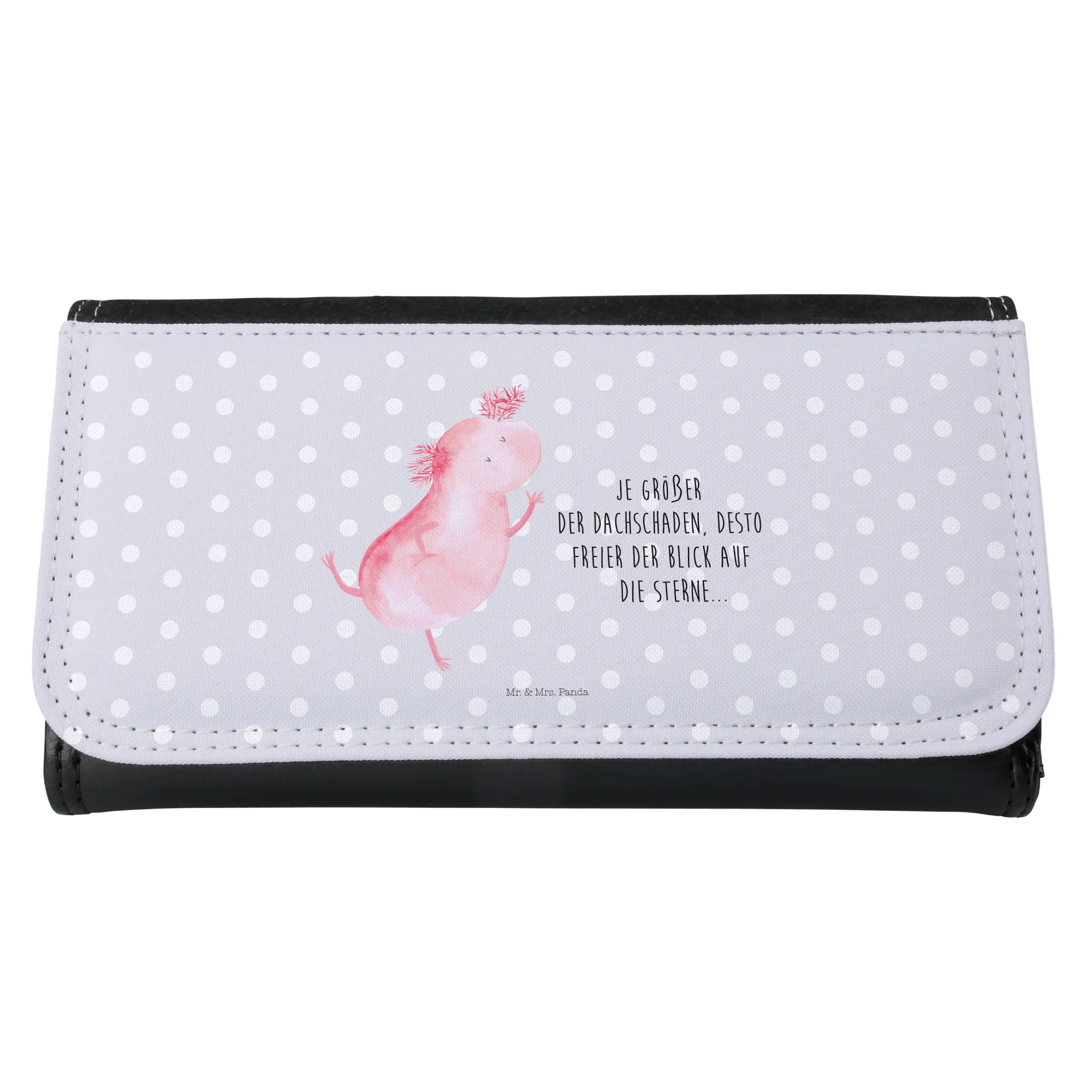 Portfel damski aksolotl tańczyć - z napisem - Szary Pastel