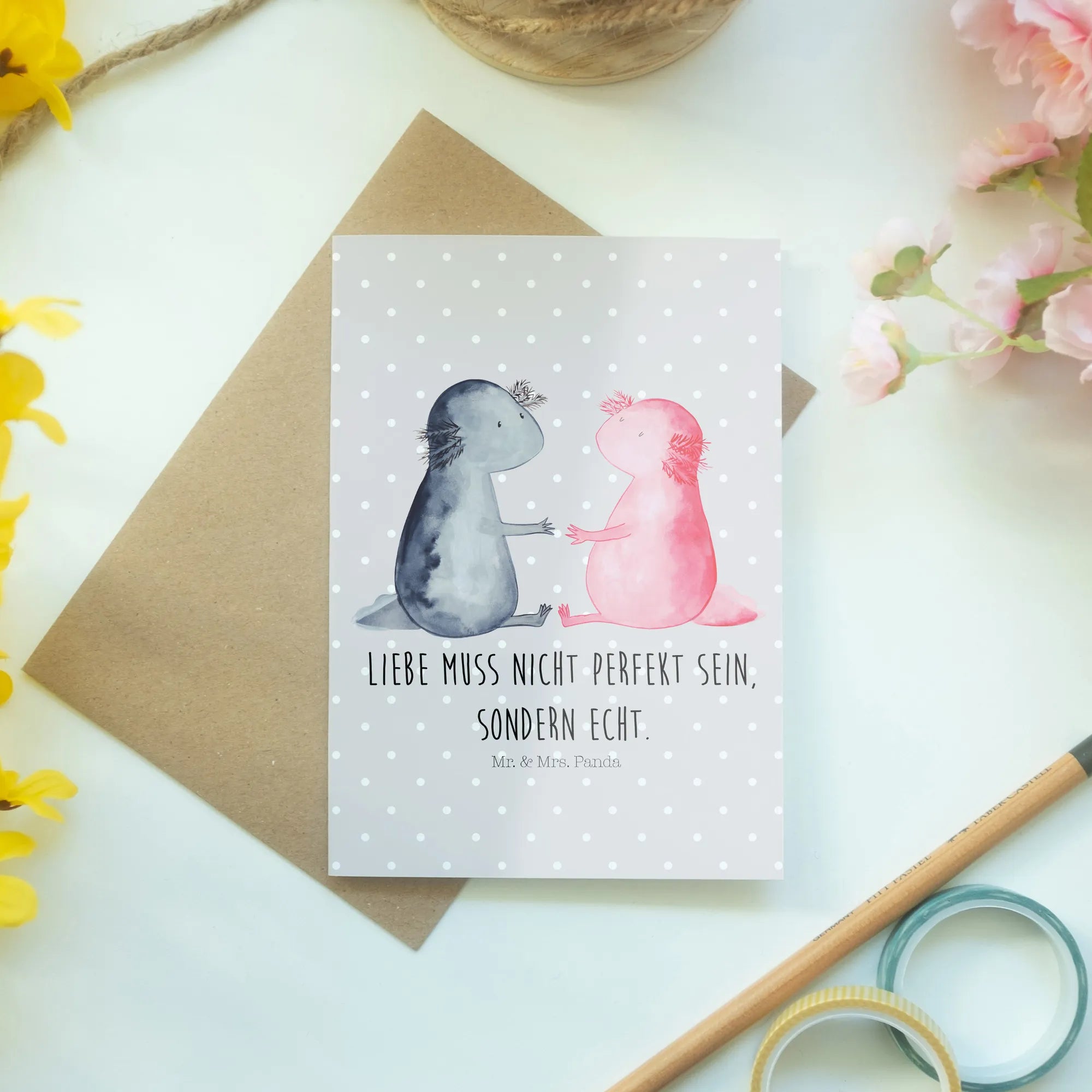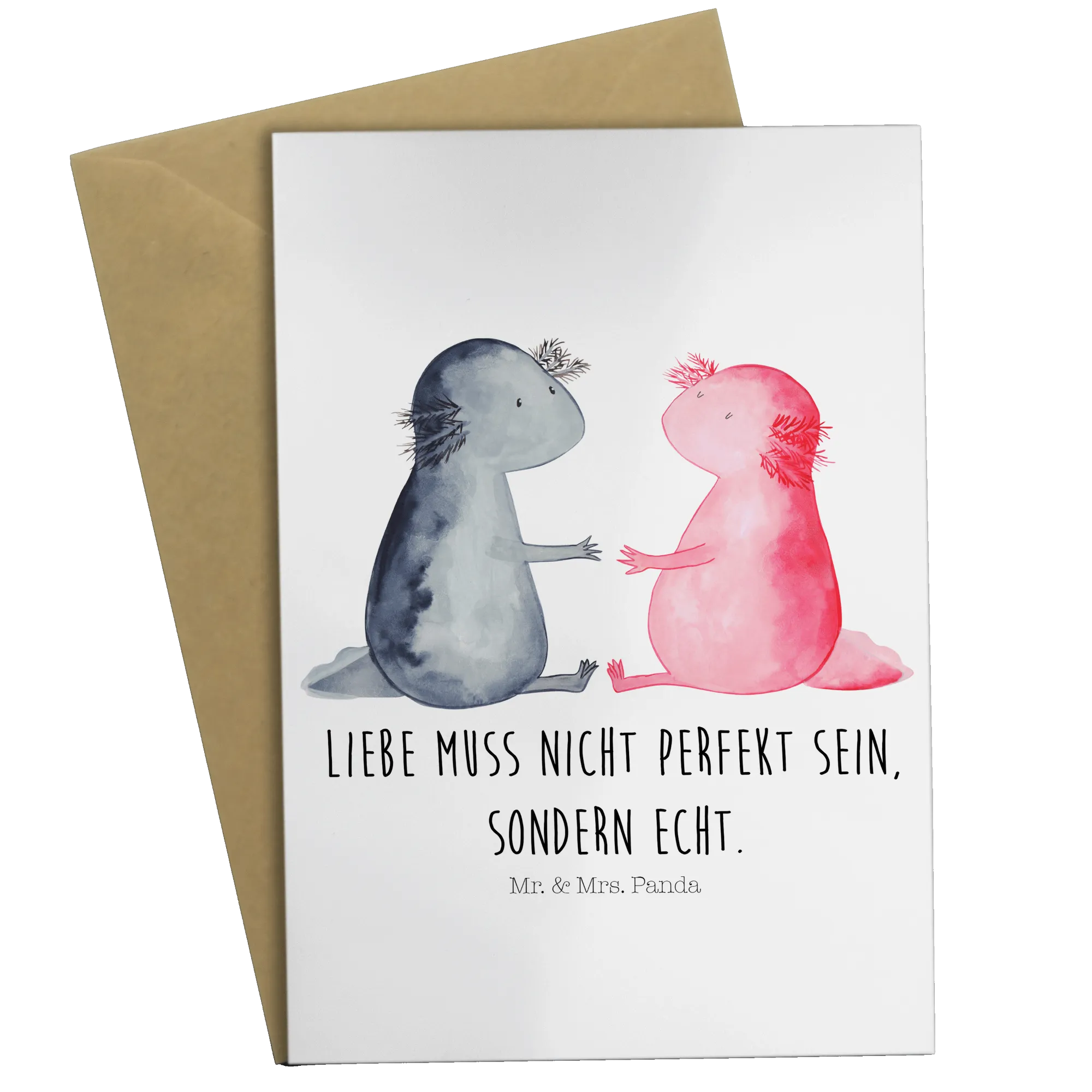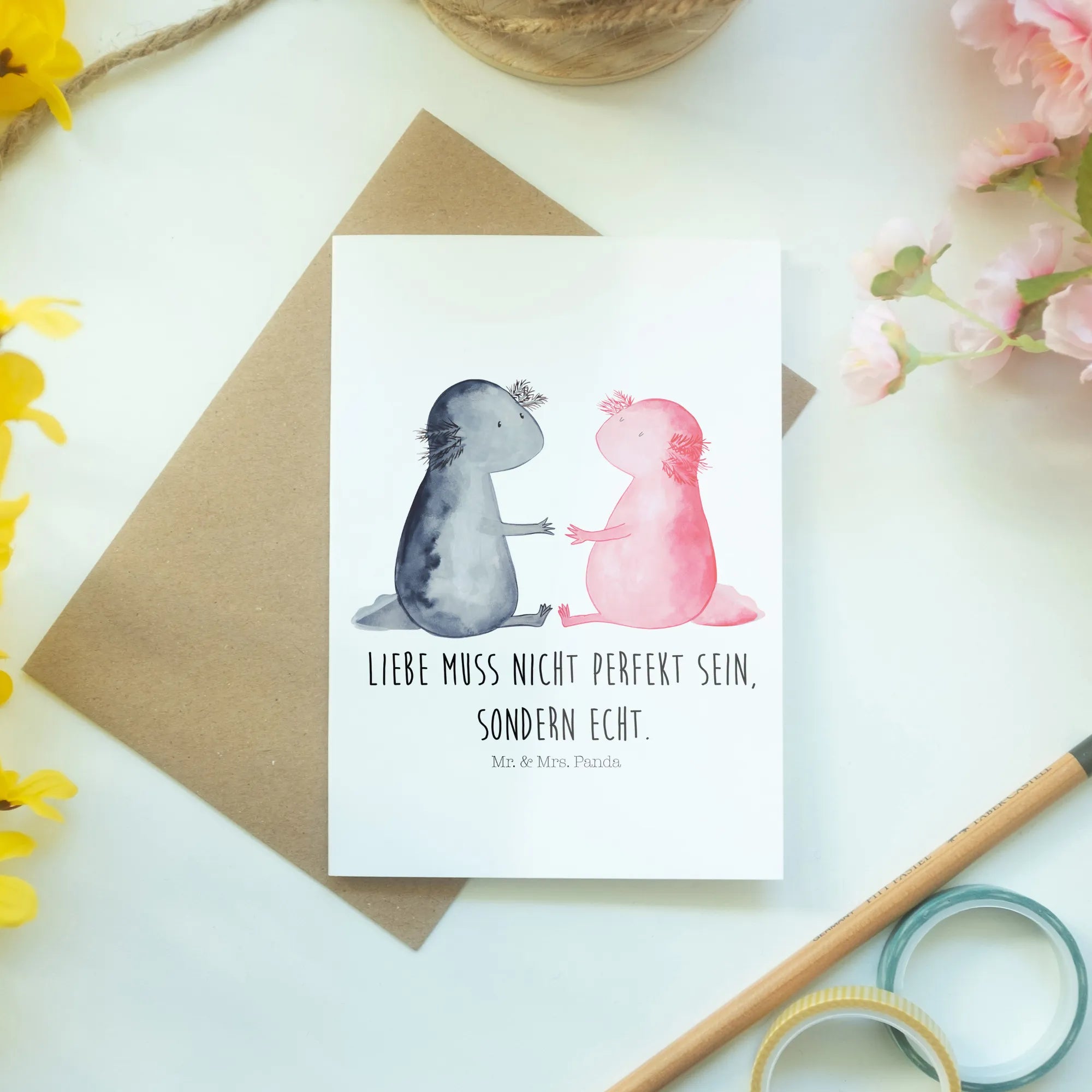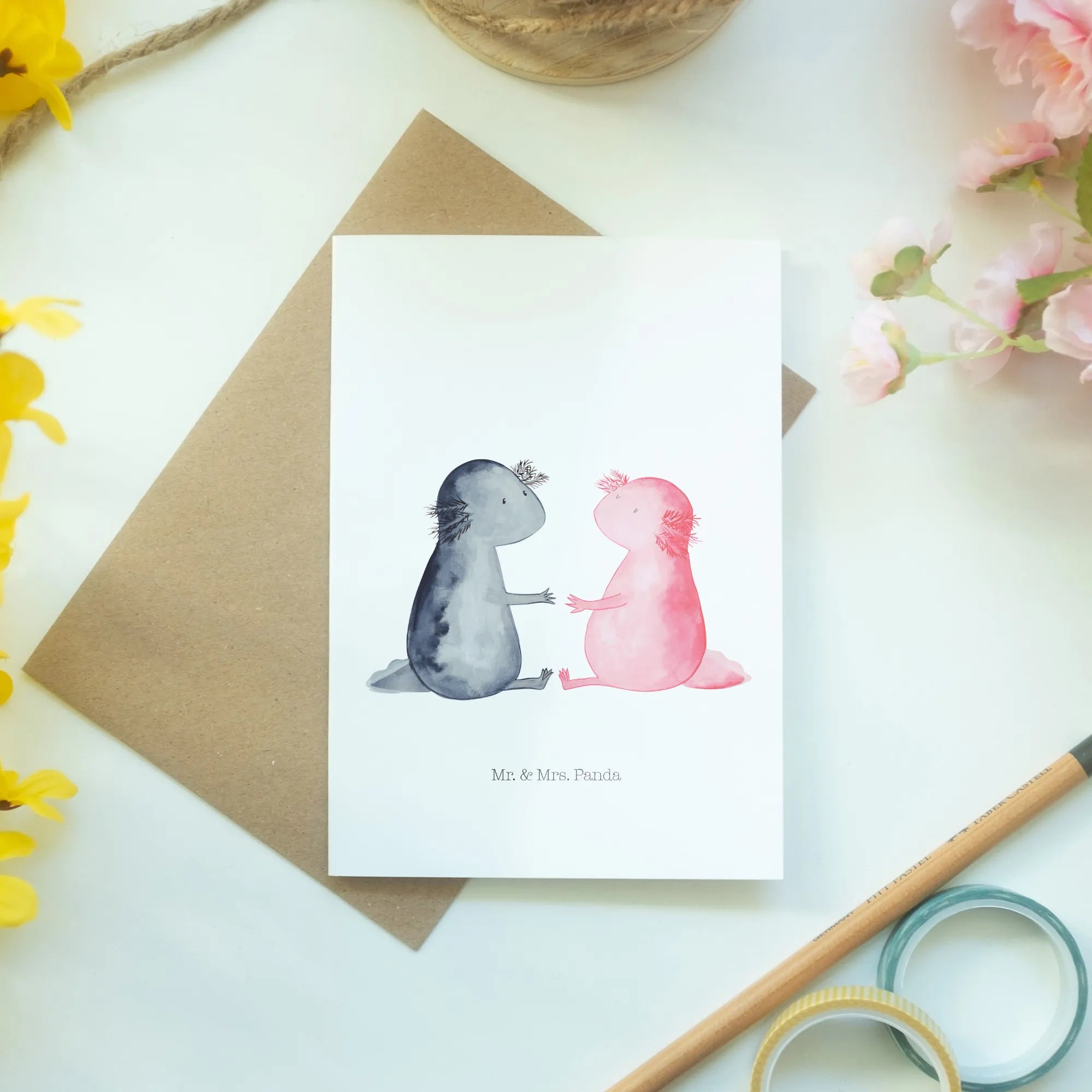 Kartka okolicznościowa Axolotl miłość - z napisem - biały