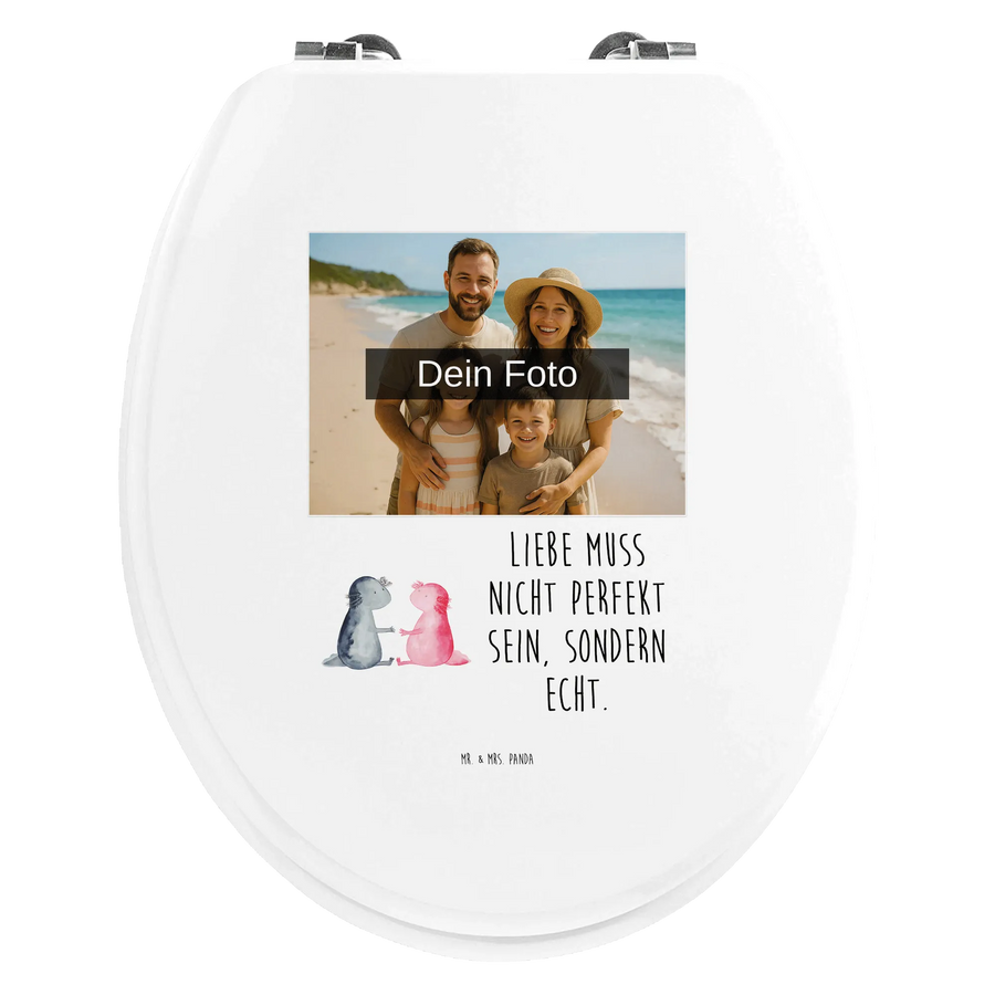 Personalisierter Foto WC Sitz Motiv Axolotl Liebe - Hartfaser Holzkern Weiß