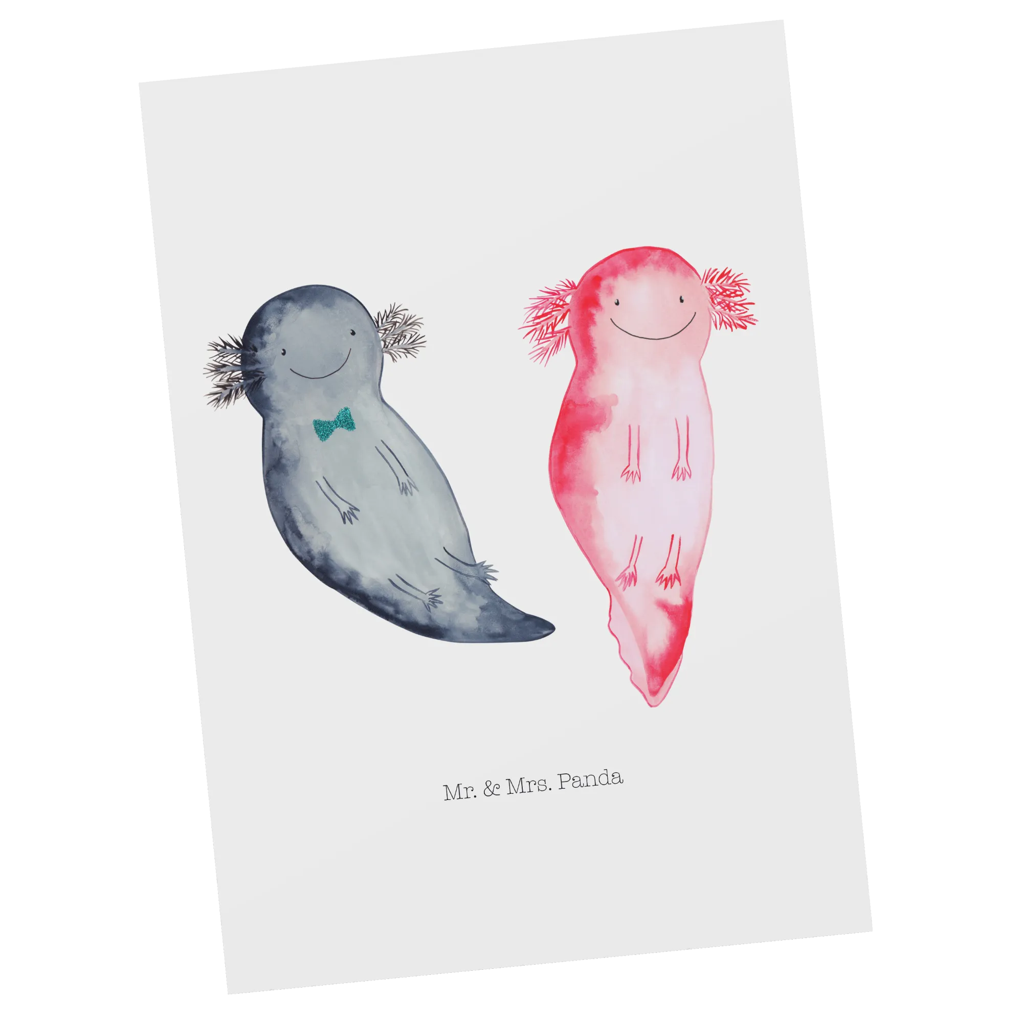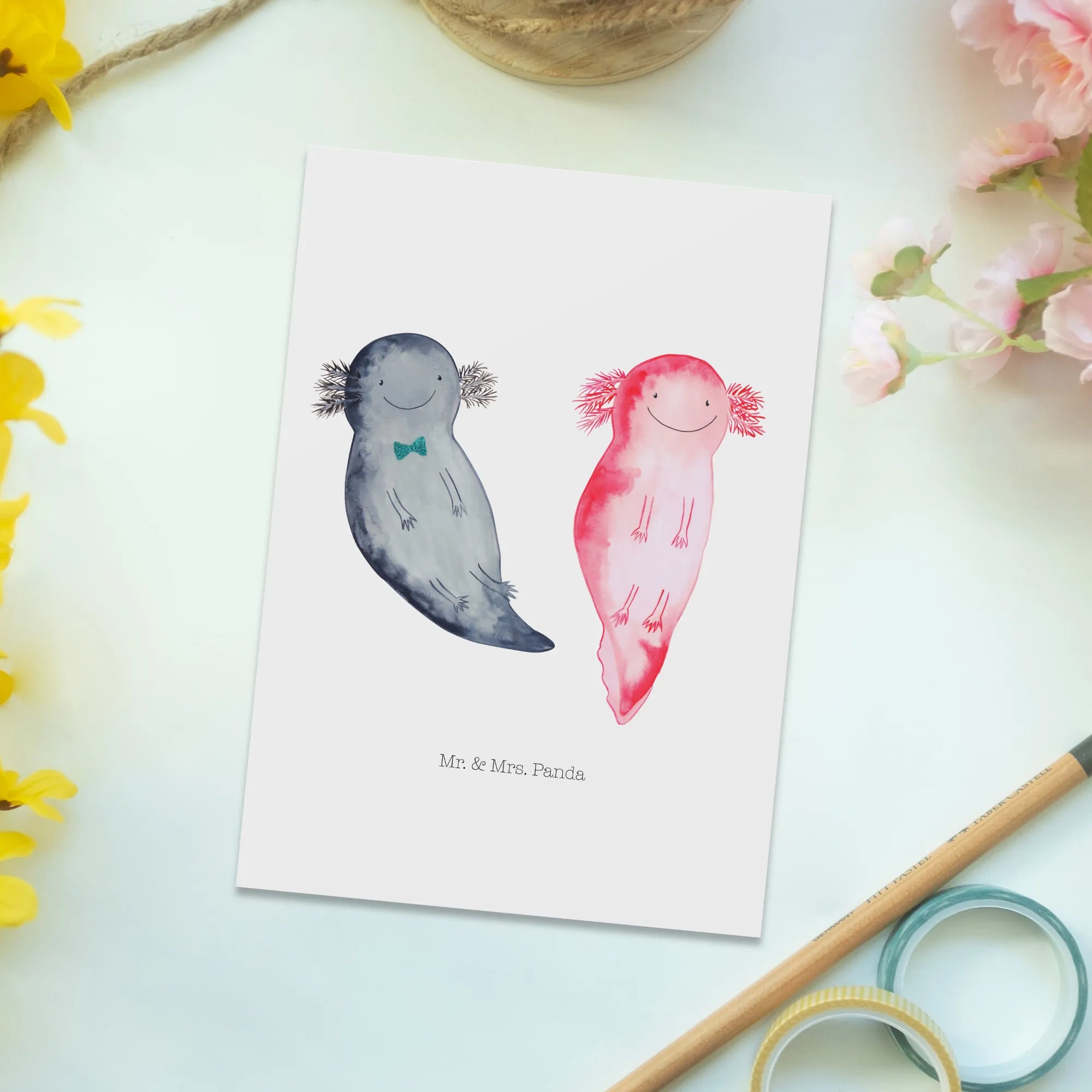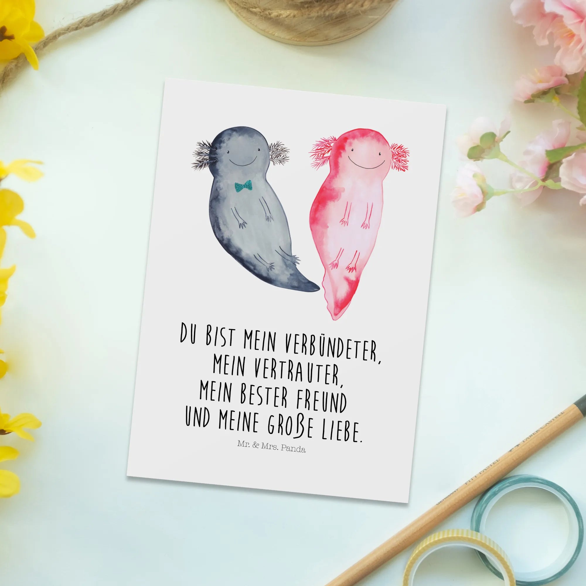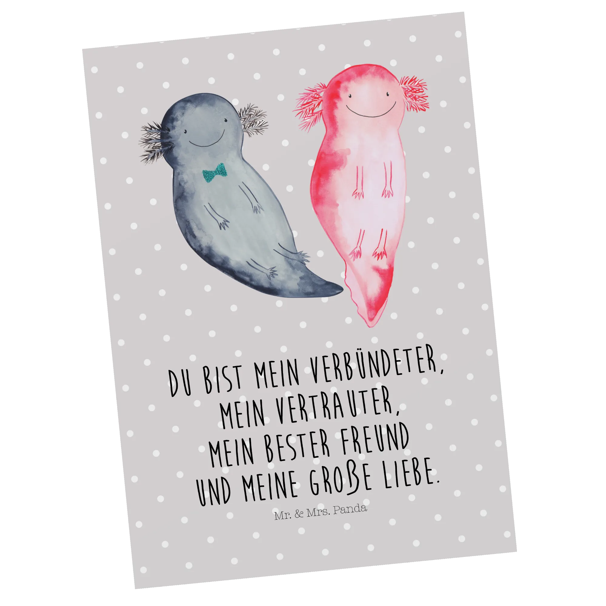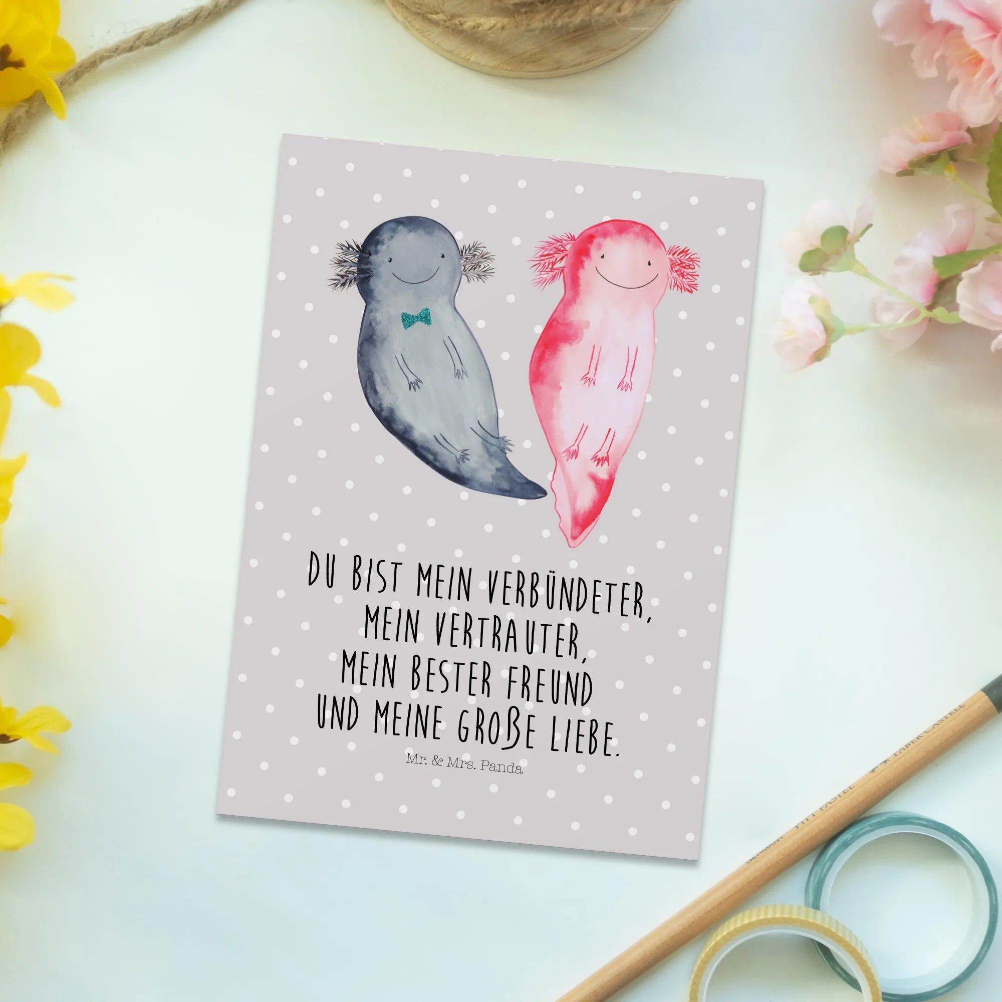 Pocztówka Axolotl Przyjaciółka - z napisem - Pastelowy szary