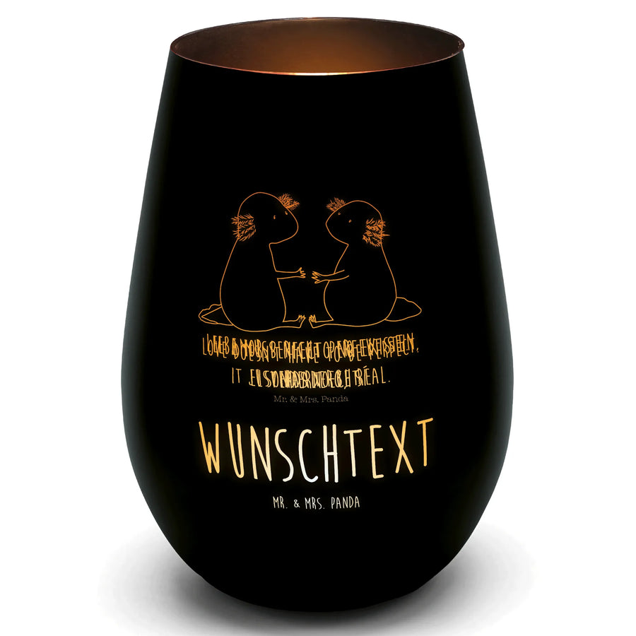 Złoty świecznik spersonalizowany Axolotl miłość - Czarny