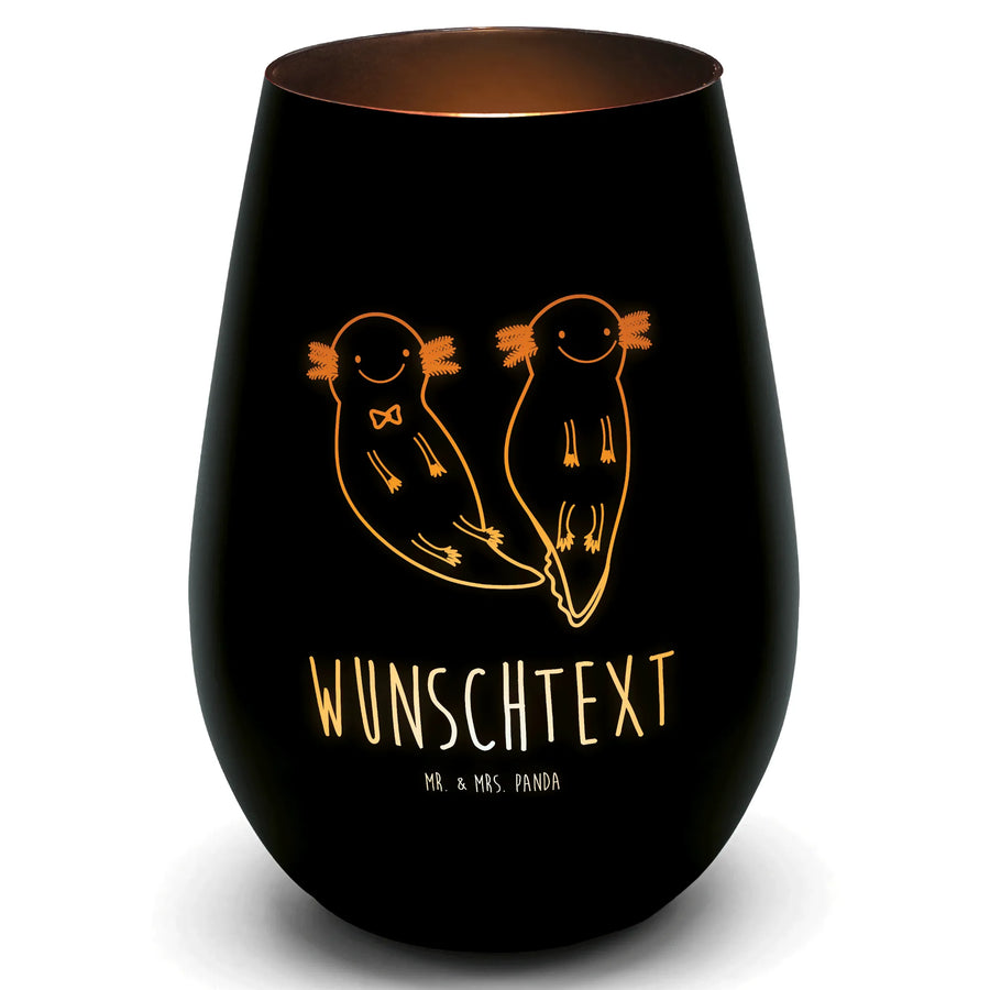 Das Gold Windlicht Personalisiert Axolotl Axel+Lotte von Mr. & Mrs. Panda ist das perfekte Geschenk für all diejenigen, die besondere Anlässe stilvoll feiern möchten. Dieses wunderschöne und edle Windlicht mit Gravur ist nicht nur ein tolles Wohnaccessoire, sondern auch ein liebevolles Zeichen der Zuneigung. Ob zum Jahrestag, zu Valentinstag oder einfach so, um seinen Liebsten eine Freude zu machen – unser personalisiertes Windlicht bringt Wärme und Licht in jedes Zuhause.