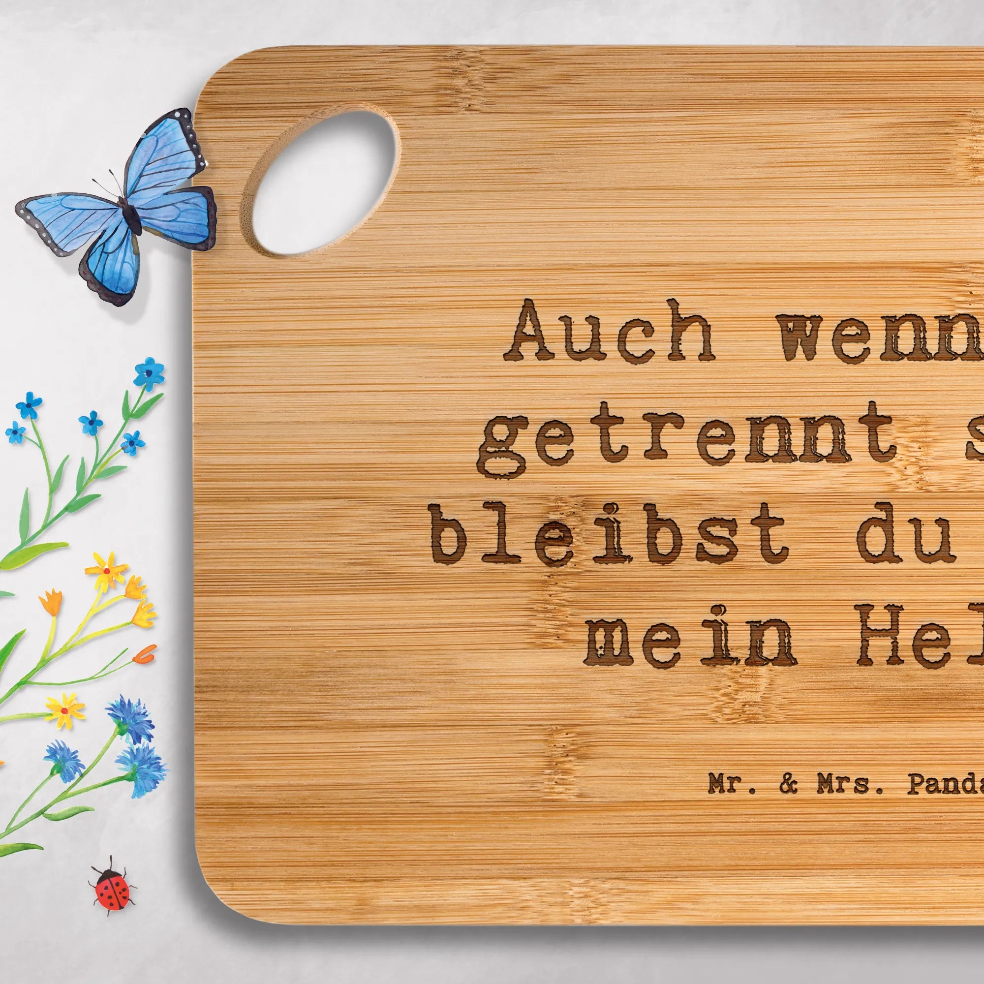 Bambus - deska do krojenia Przysłowie Auch wenn wir getrennt sind, bleibst du immer mein Held.
