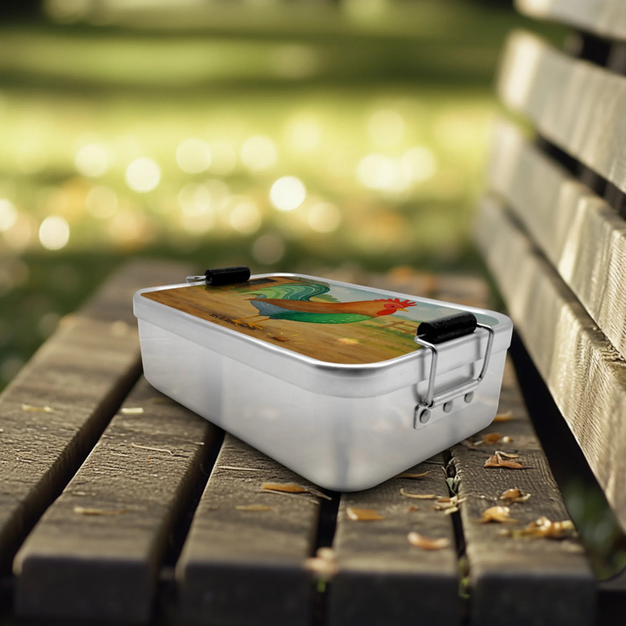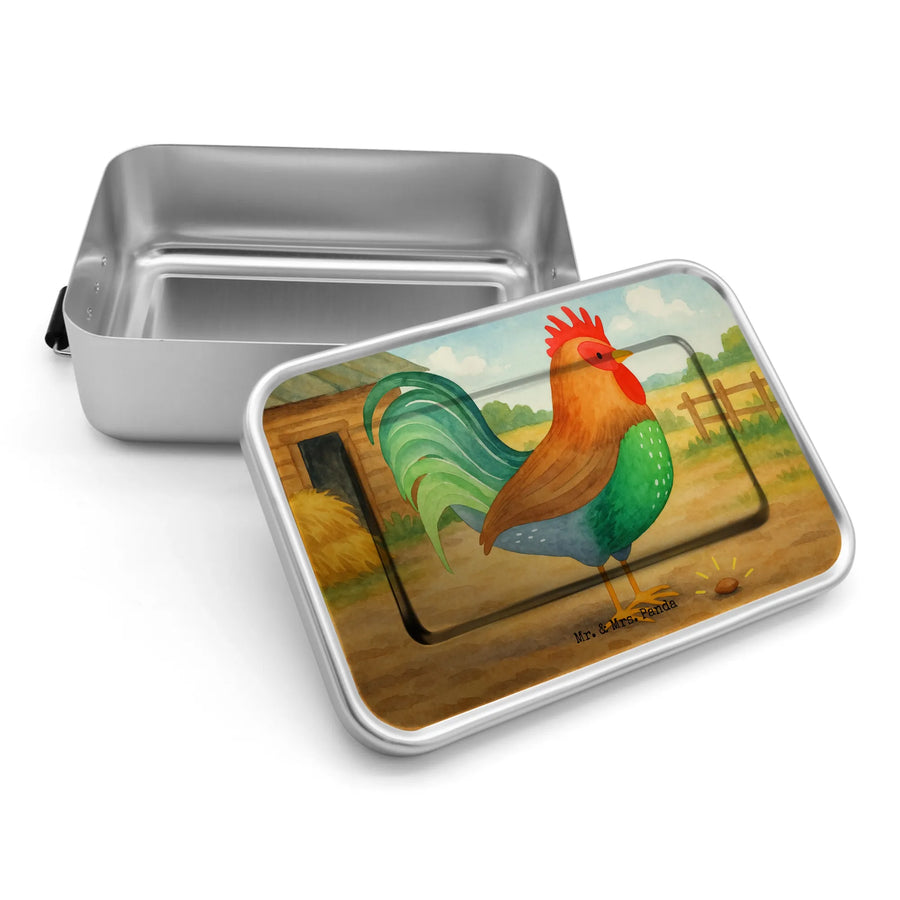 Unsere Metall Brotdose aus der Bauernhof-Kollektion von Mr. & Mrs. Panda verbindet liebevolle Illustration mit praktischem Nutzen. Das hübsche Hahn-Motiv bringt Naturgefühl und Nostalgie in Deine Pause und macht die Brotdose zur idealen Geschenkidee für Kinder, Eltern, Lehrerinnen, Landwirtinnen und alle Freunde des Landlebens.