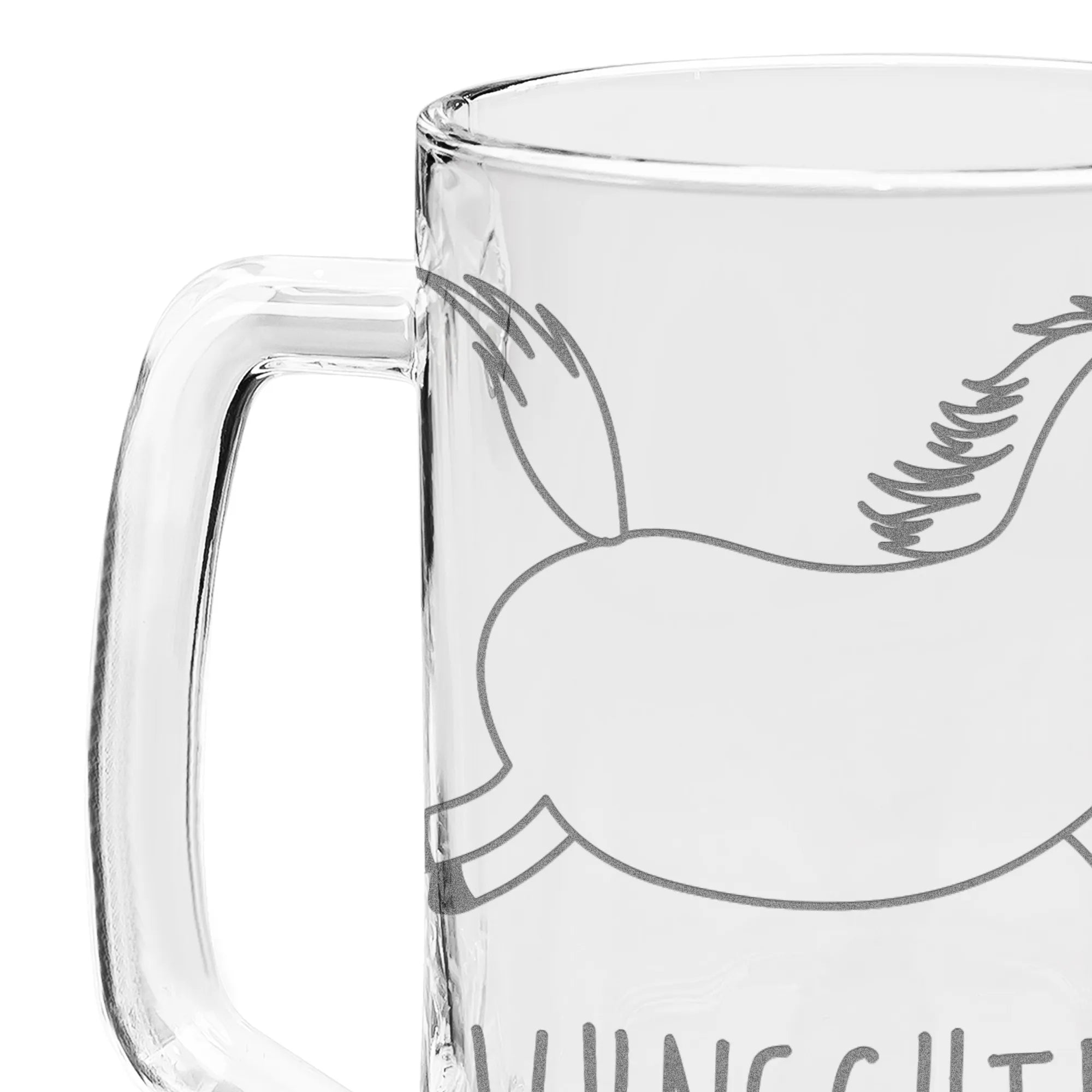 Du suchst ein persönliches Geschenk für Pferdefreunde? Unser Personalisierter Gravur Bierkrug „Pferd springt" aus der Bauernhof Kollektion von Mr. & Mrs. Panda ist die perfekte Wahl! 🐴✨ Mit dem liebevoll handgezeichneten Motiv eines freudig springenden Pferdes und dem warmen Slogan „Nichts ist schöner als der Duft im Pferdestall nach einem langen, anstrengenden Tag...." bringt dieser Krug Stallromantik direkt zum Anstoßen.