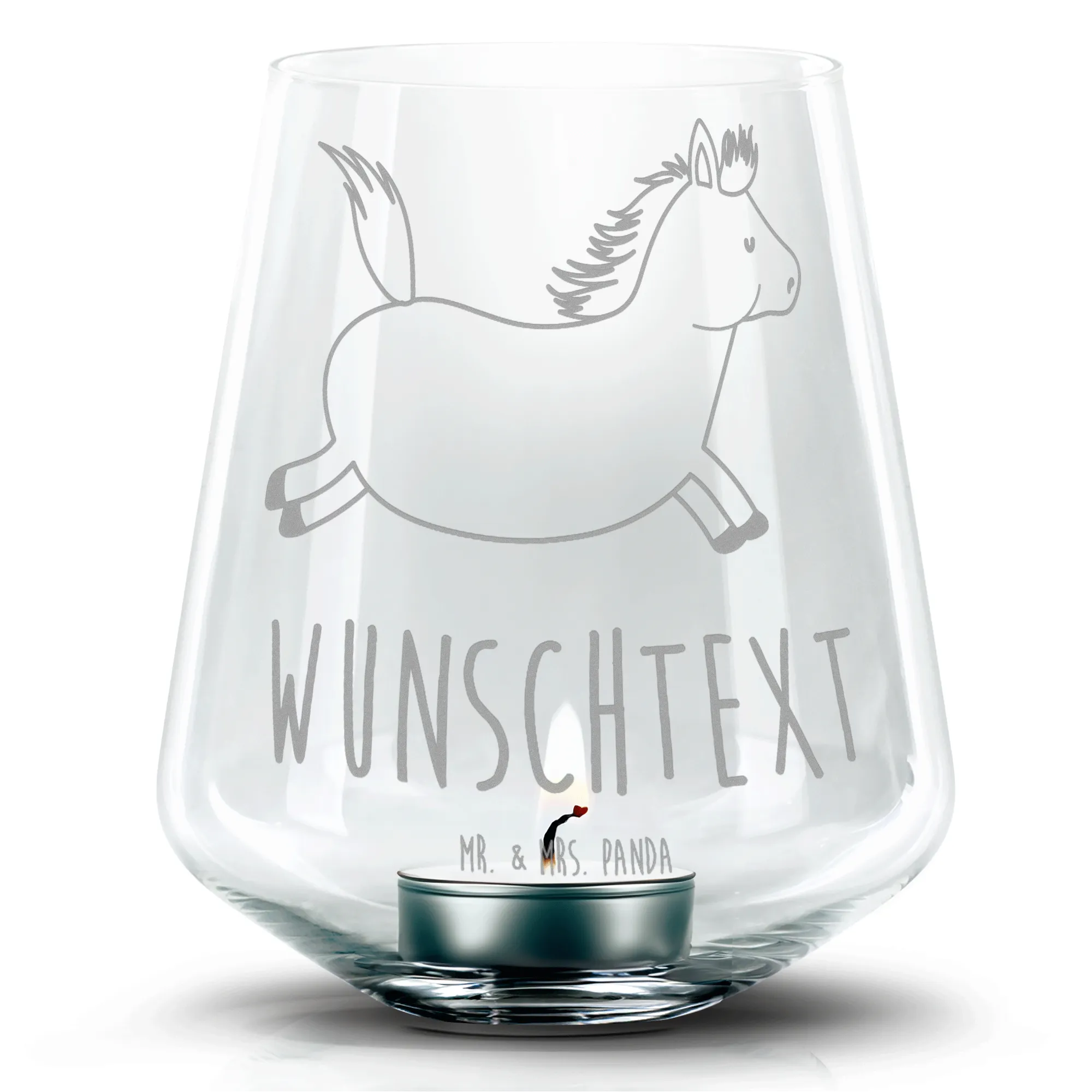 Spersonalizowany grawerowany świecznik koń skakać – Mr. & Mrs. Panda