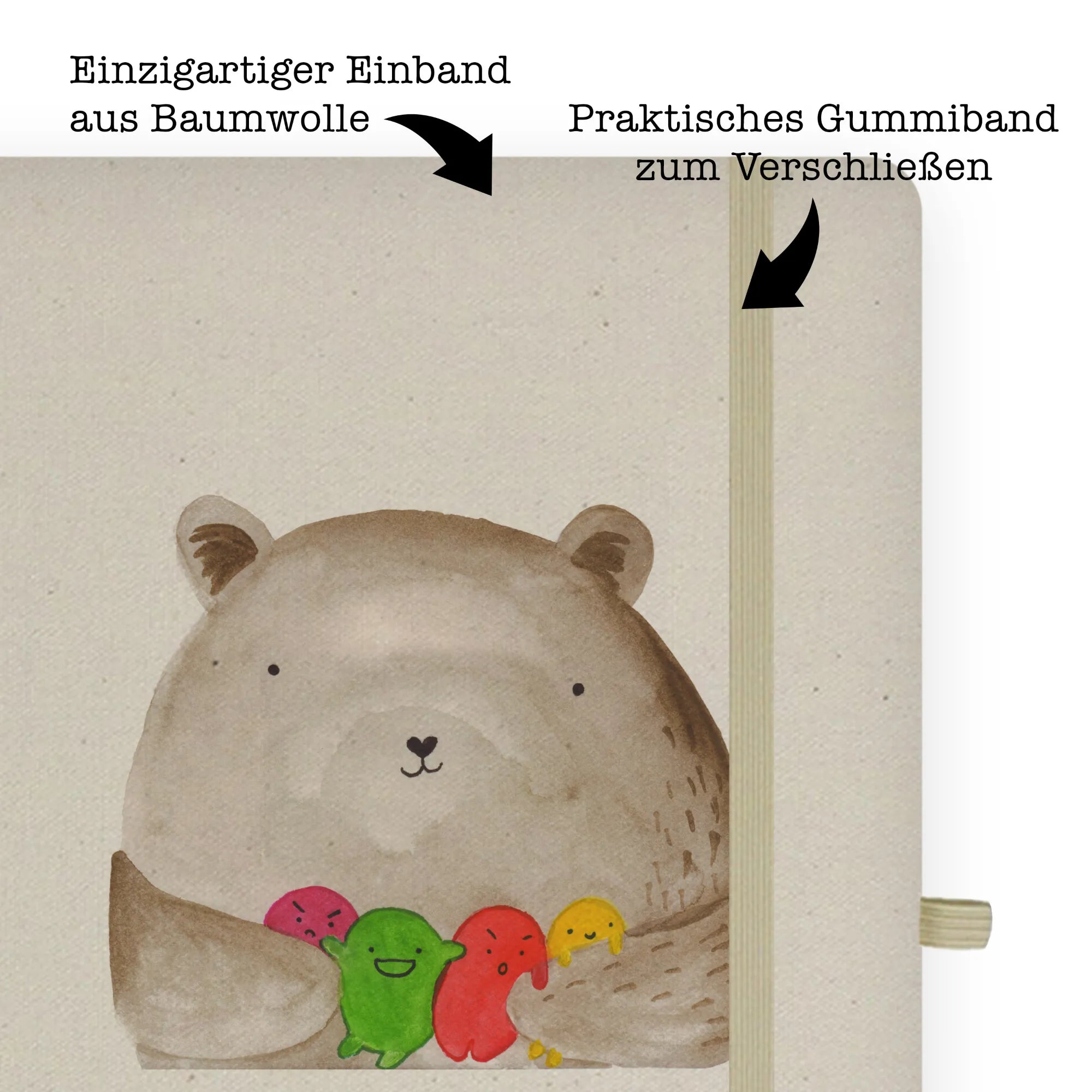 Bawełniany notatnik DIN A4 niedźwiedź uczucie - DIN A4 Baumwoll Notizbuch - z napisem