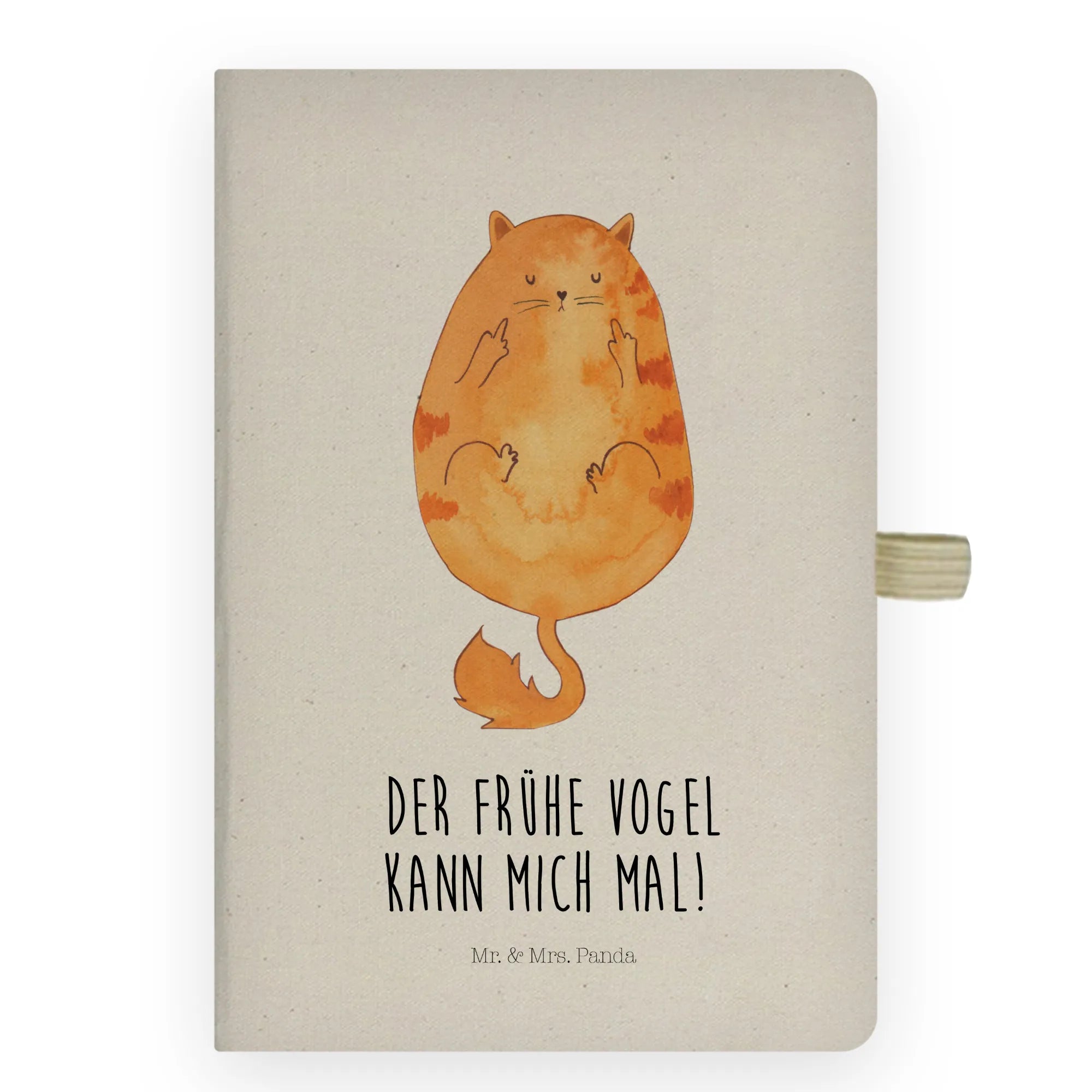 Bawełniany notatnik DIN A4 Kot ranny ptaszek - DIN A4 Baumwoll Notizbuch - z napisem