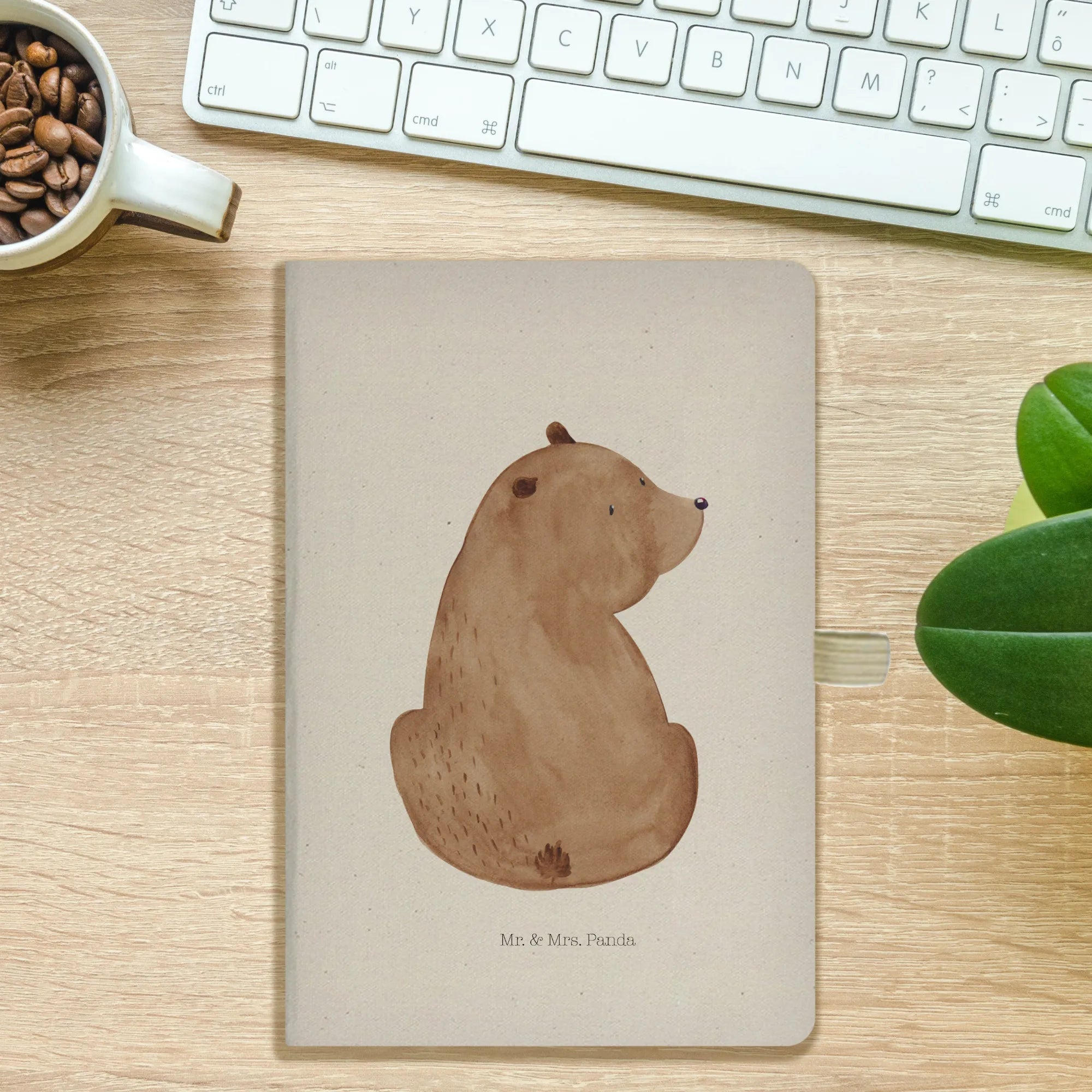 Bawełniany notatnik DIN A4 niedźwiedź spojrzenie przez ramię - Bawełniany notatnik DIN A5 - z napisem