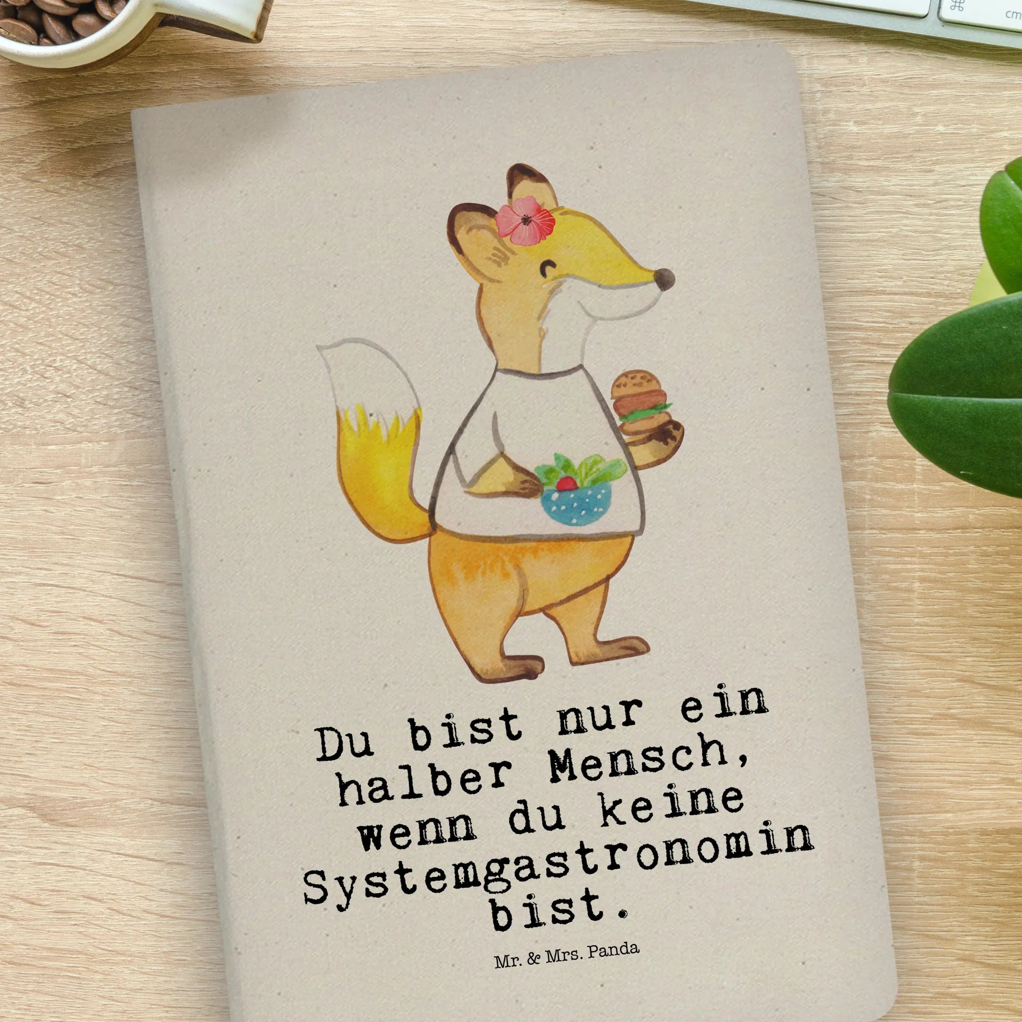 Suchst Du ein besonderes Geschenk für eine Systemgastronomin? Unser DIN A5 Baumwoll Notizbuch „Systemgastronomin mit Herz“ aus der Berufe-Kollektion von Mr. & Mrs. Panda verbindet liebevolles Design mit praktischer Funktion. Auf dem Cover zeigt ein süßer, weiblicher Fuchs in Schürze, wie er einen Burger und einen frischen Salat zubereitet. Der witzige Spruch „Du bist nur ein halber Mensch, wenn du keine Systemgastronomin bist.“ bringt ein Lächeln und macht das Notizbuch persönlich und sympathisch.