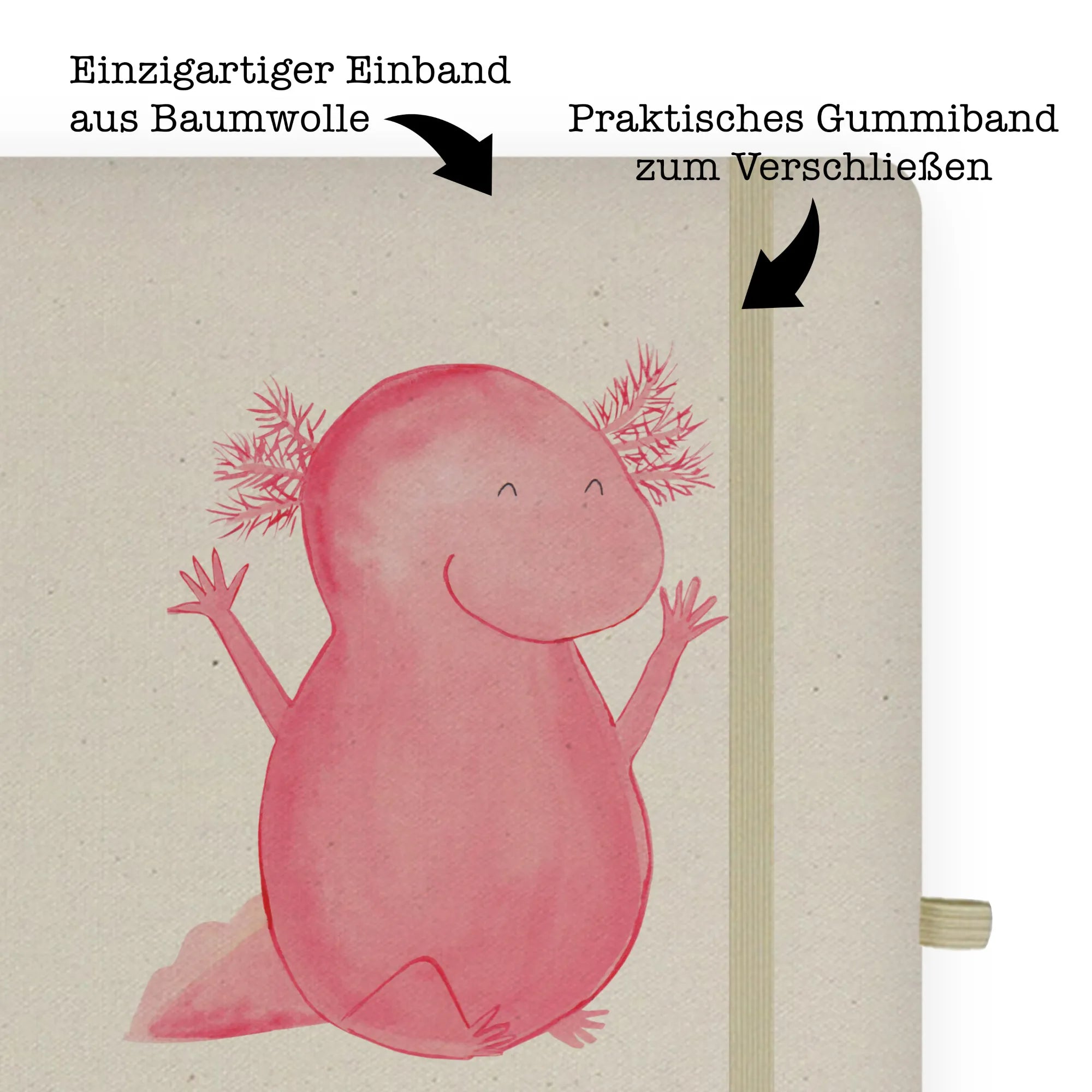 Bawełniany notatnik DIN A4 Axolotl Hurra - DIN A5 Baumwoll Notizbuch - z napisem