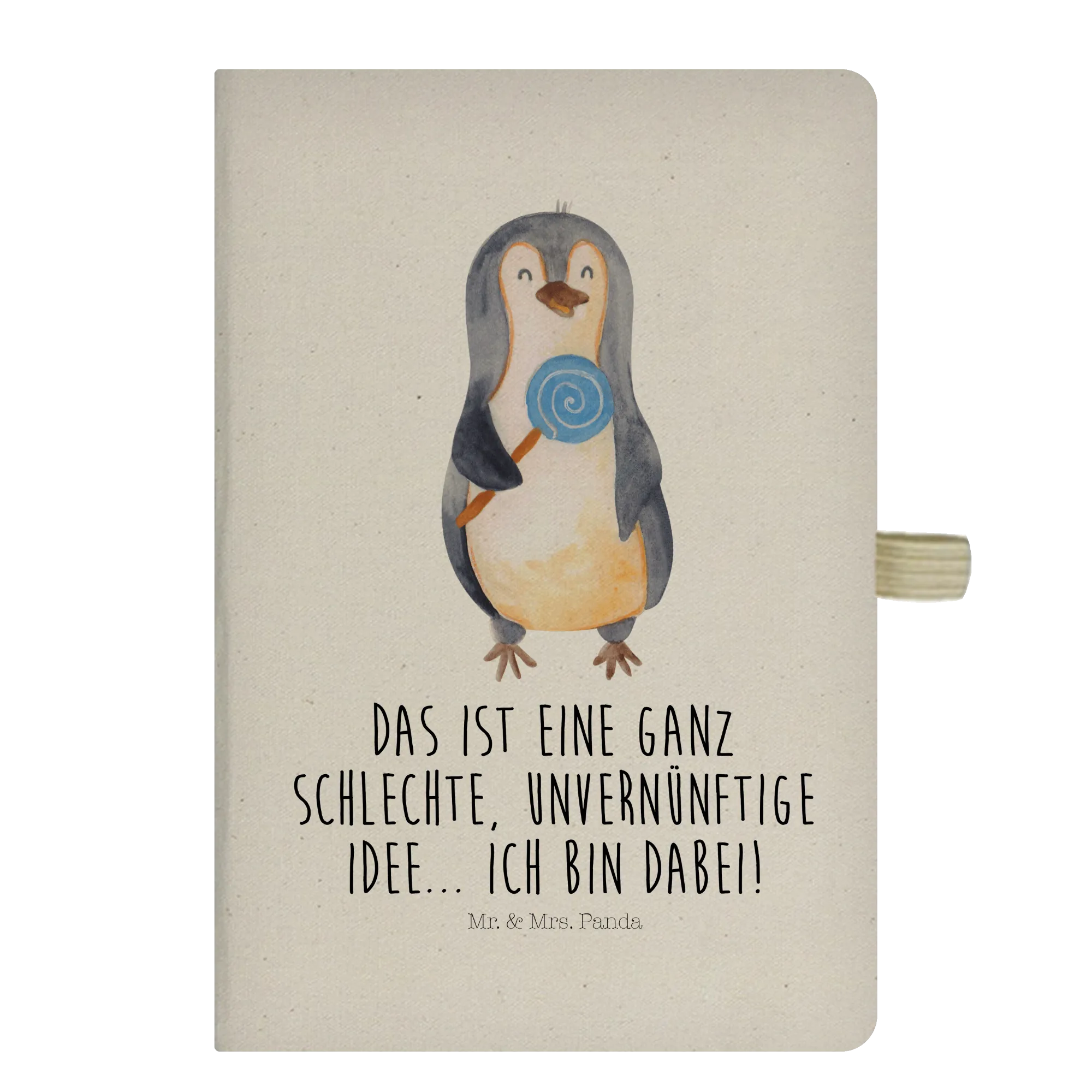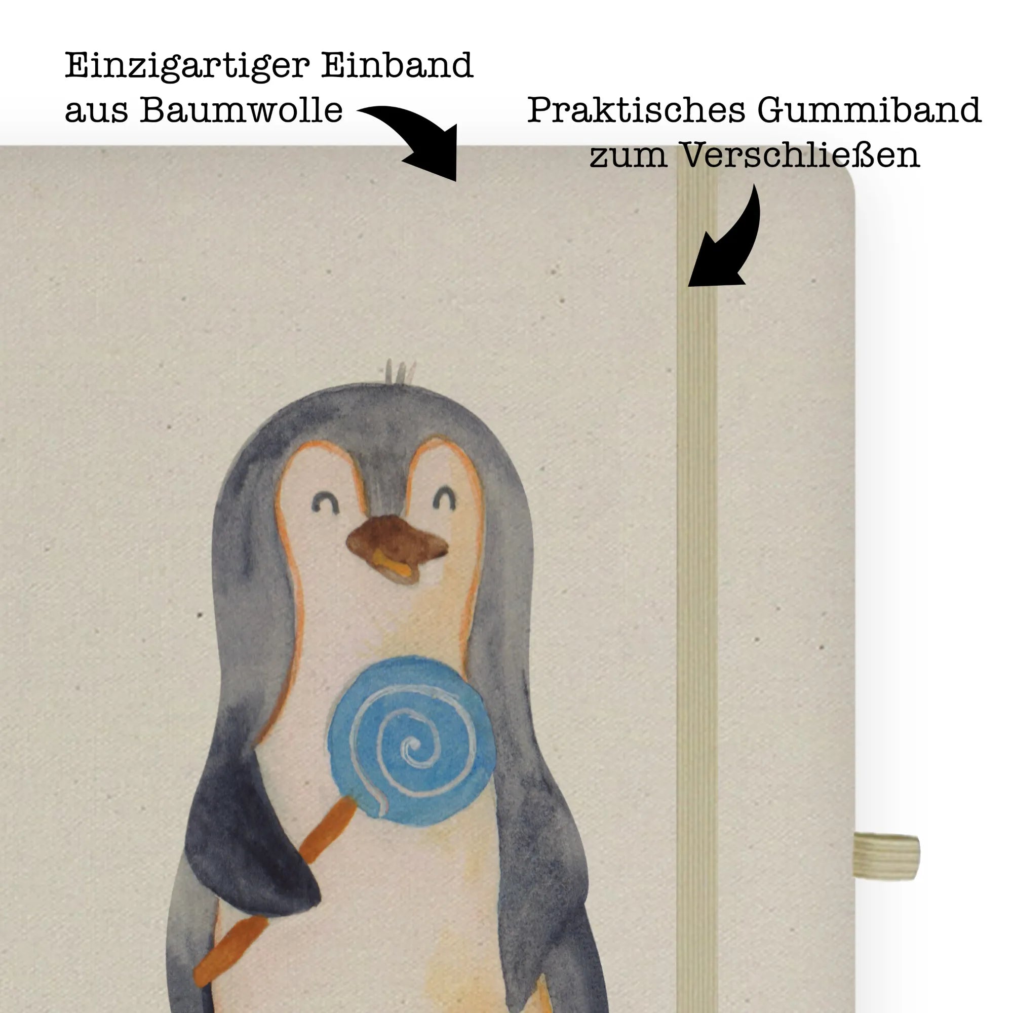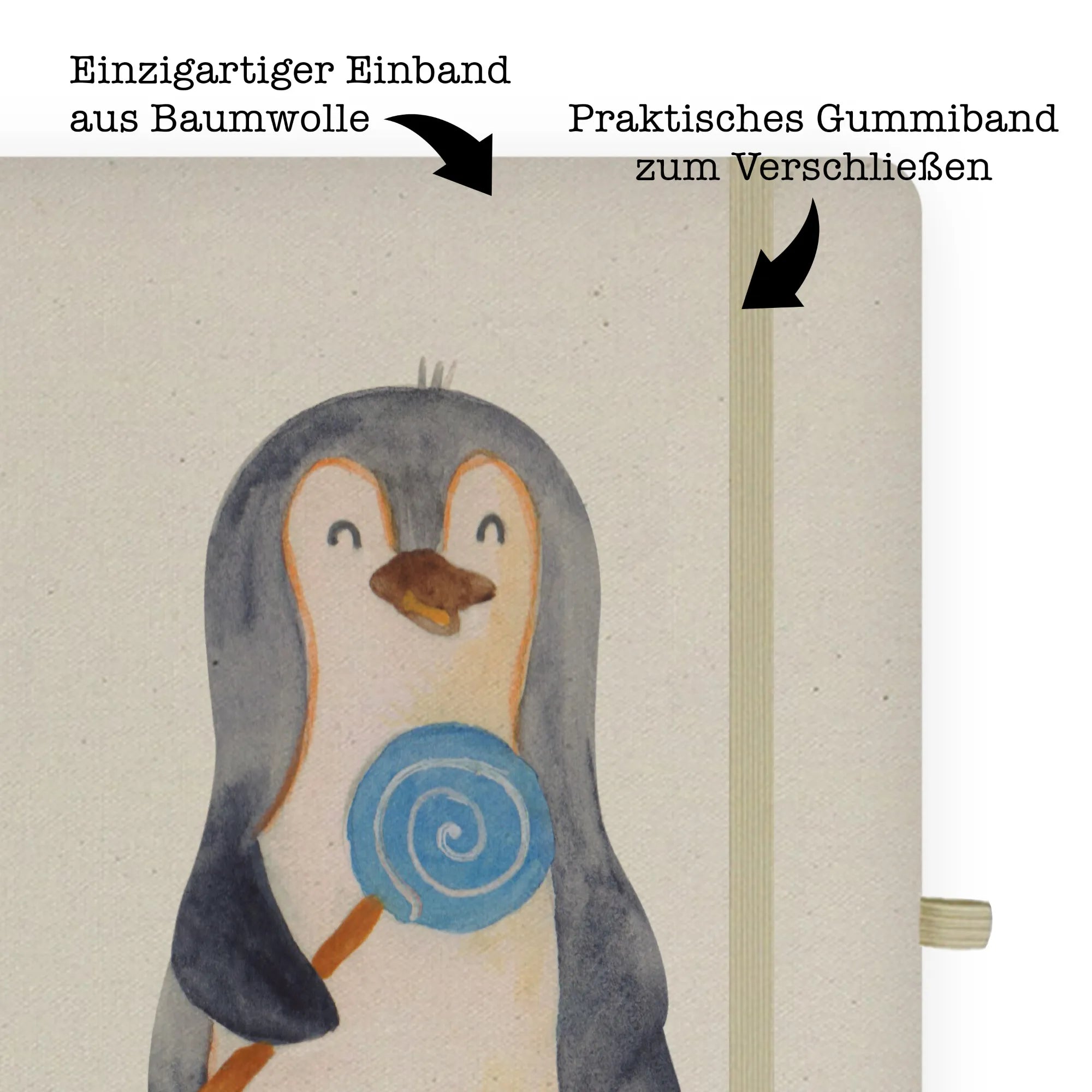 Bawełniany notatnik DIN A4 pingwin lizak - DIN A5 Baumwoll Notizbuch - z napisem