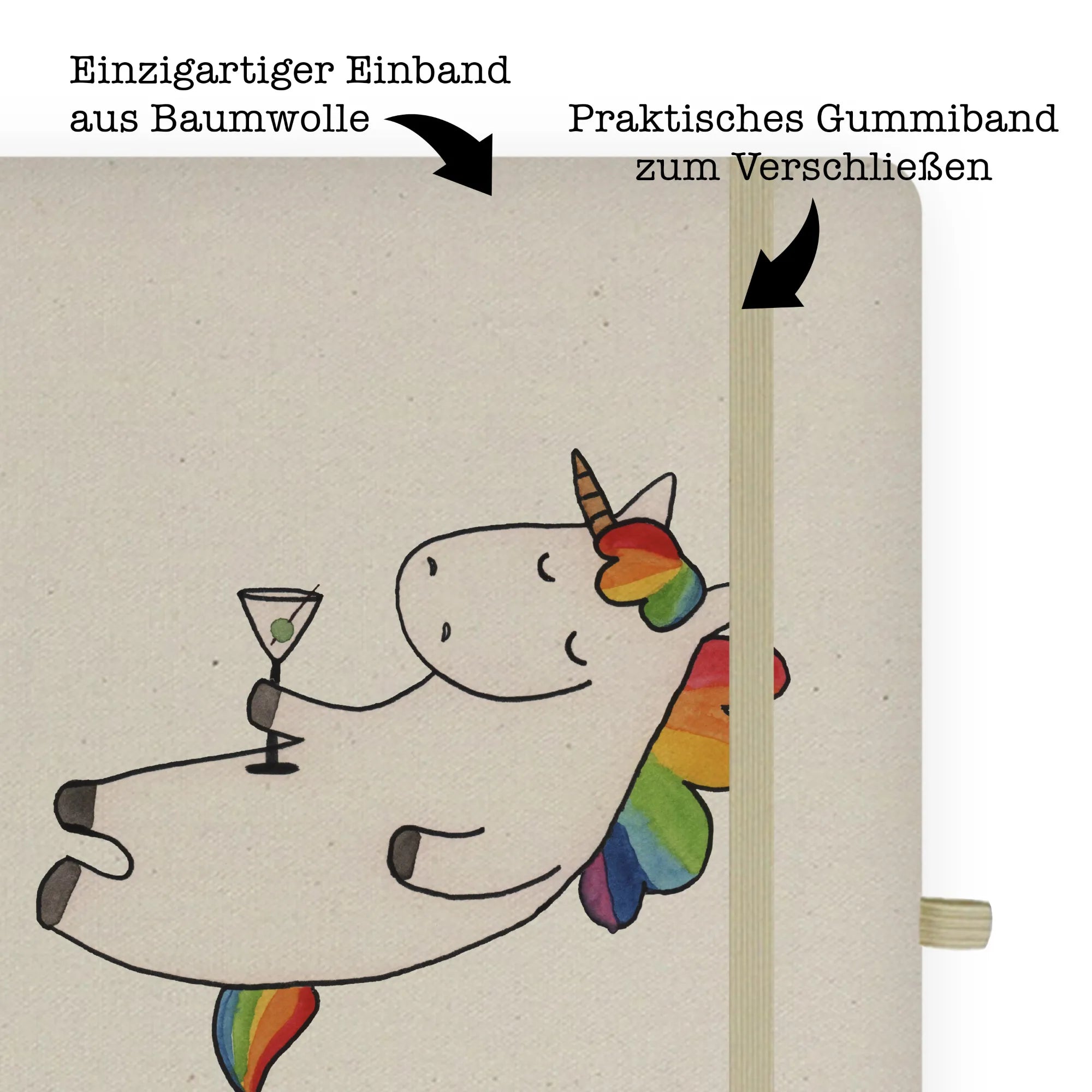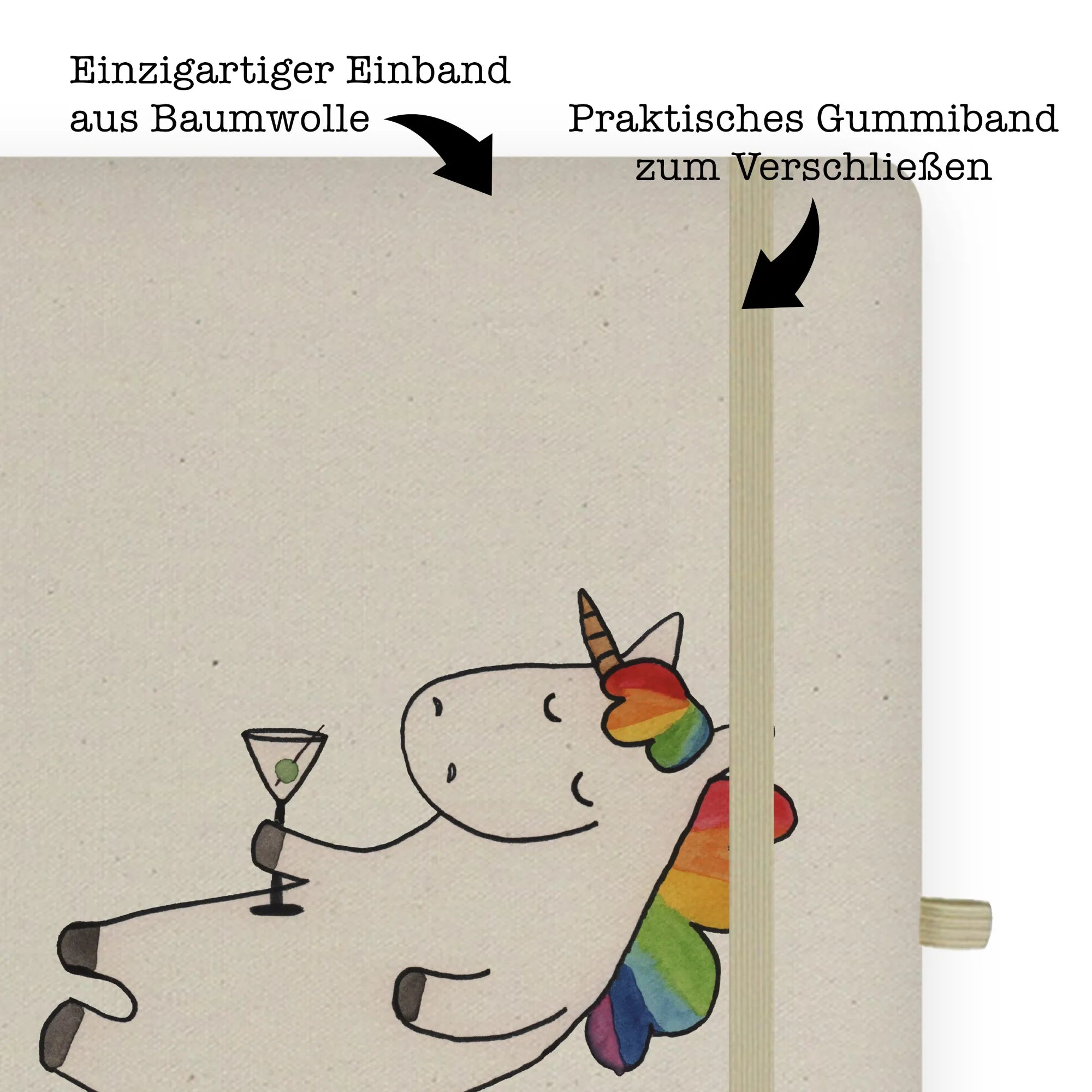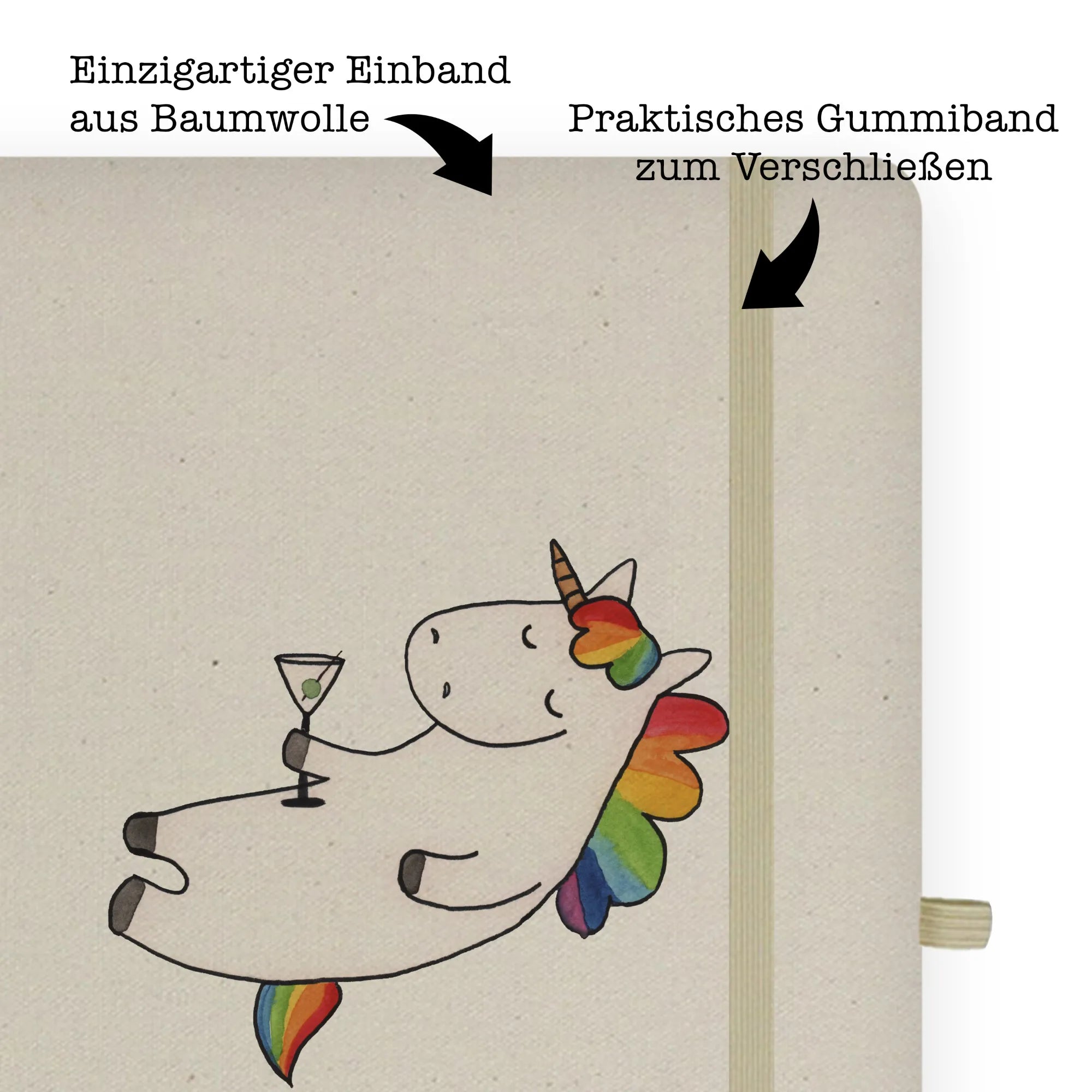 Bawełniany notes DIN A5 jednorożec koktajl - DIN A4 Baumwoll Notizbuch - z napisem