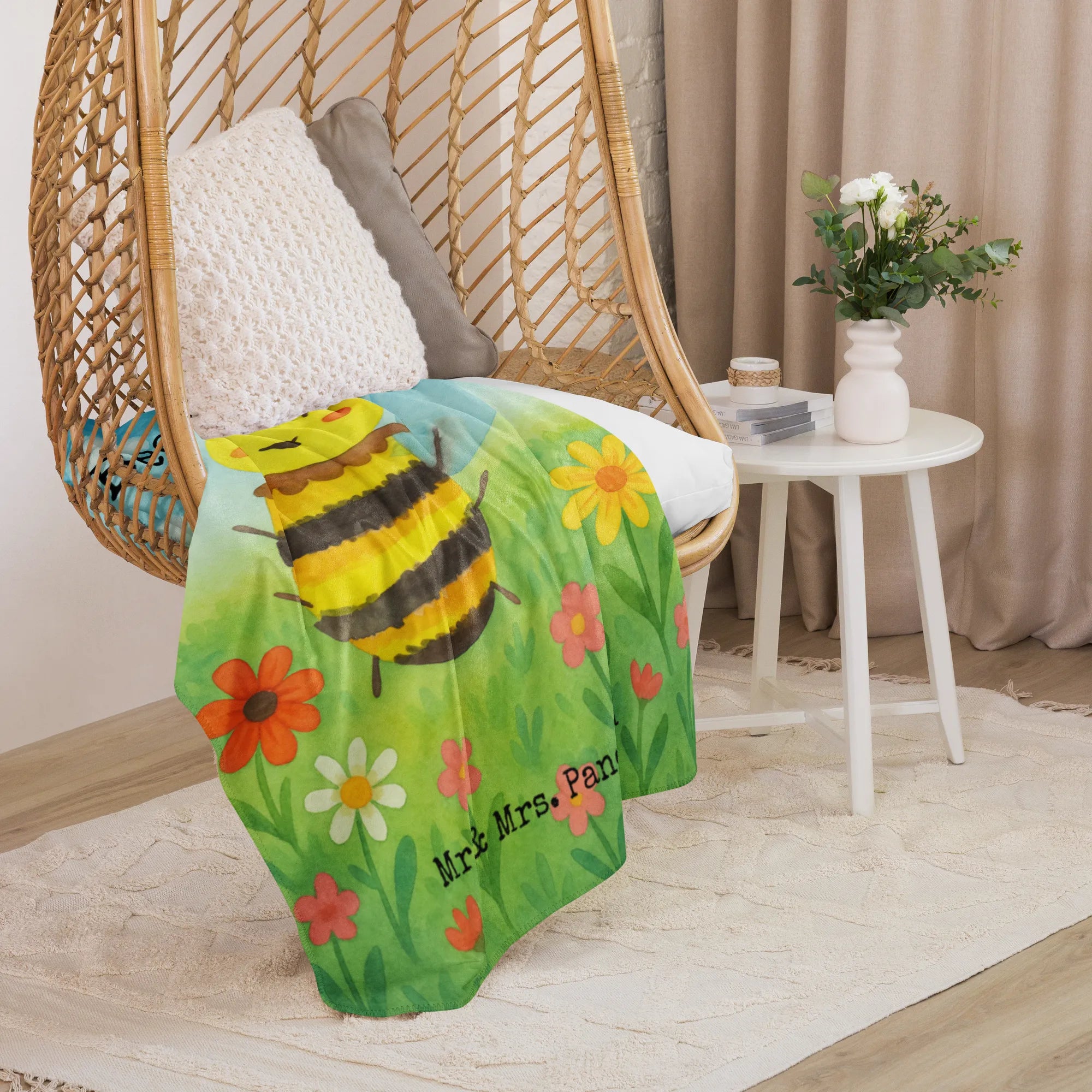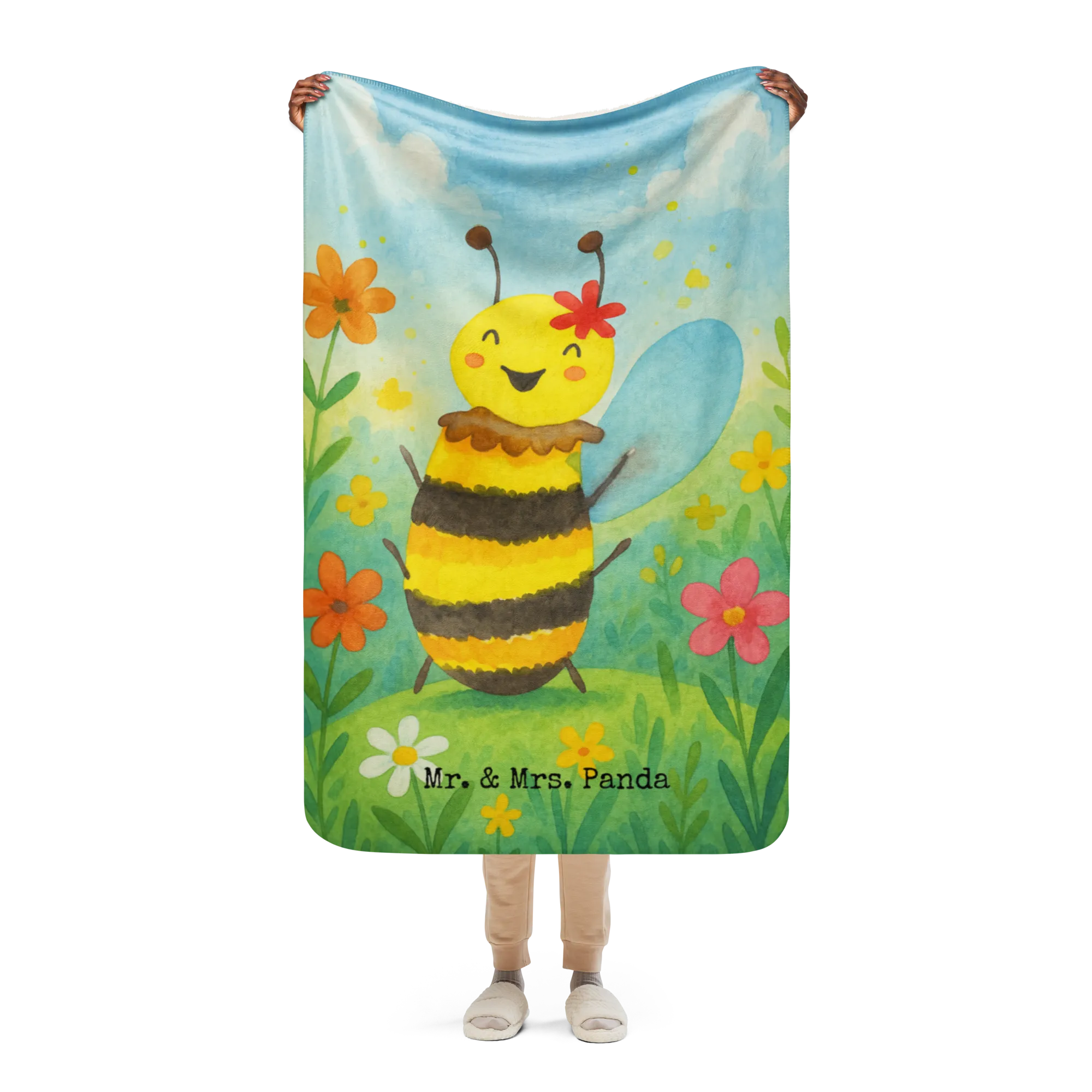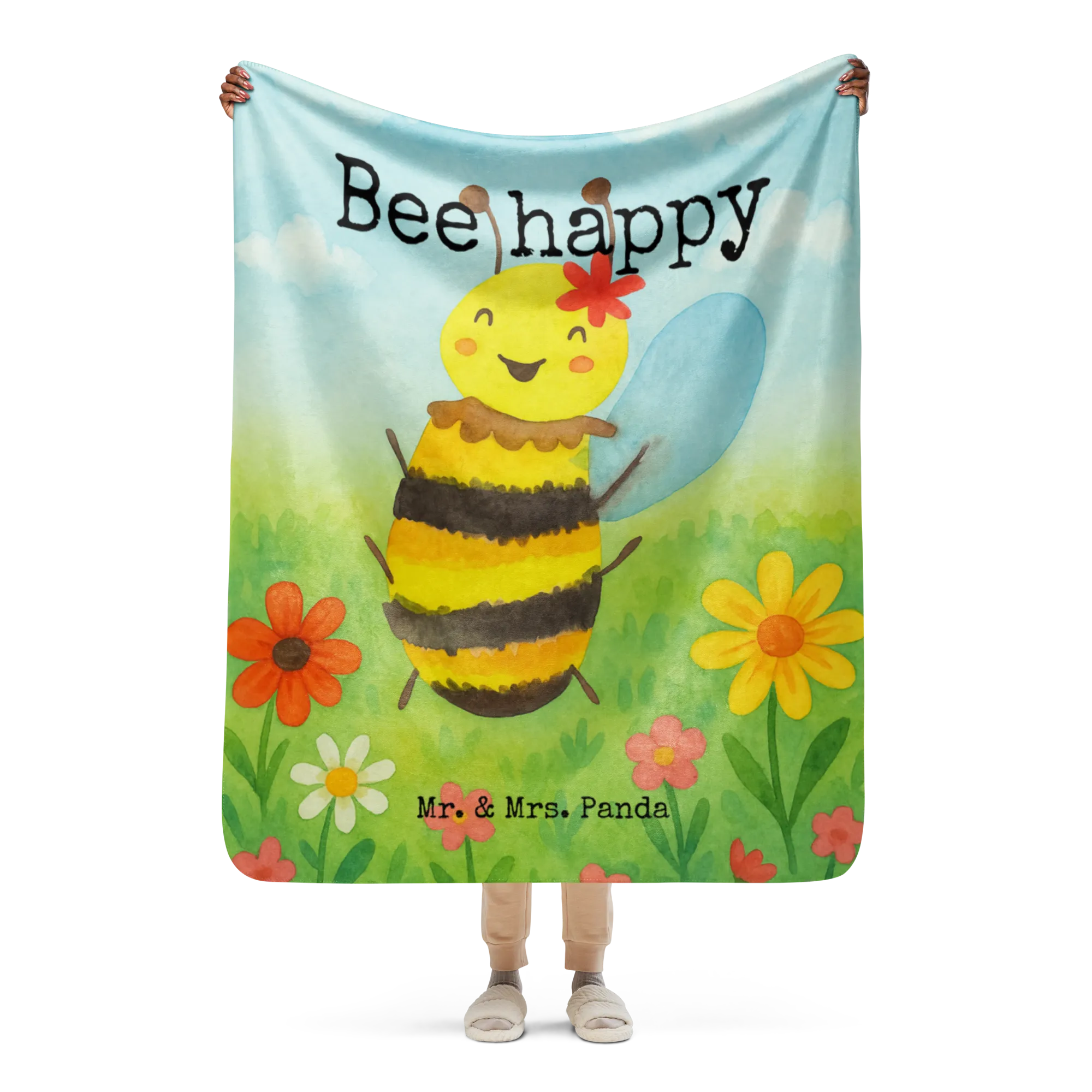 Koc Sherpa pszczoła Szczęśliwy Design - 100 x 150 cm - z napisem
