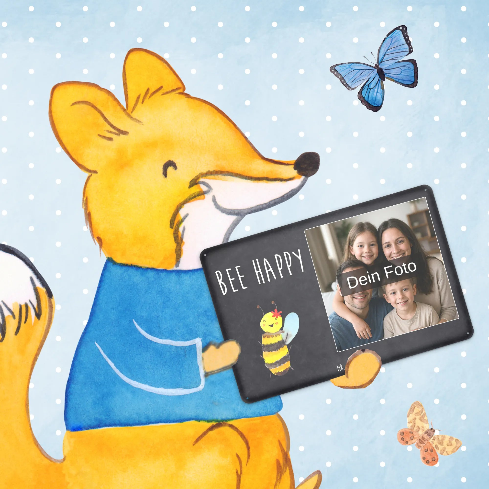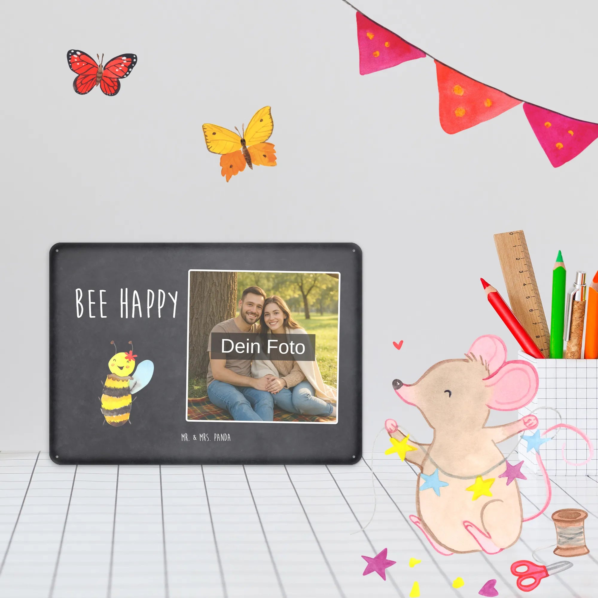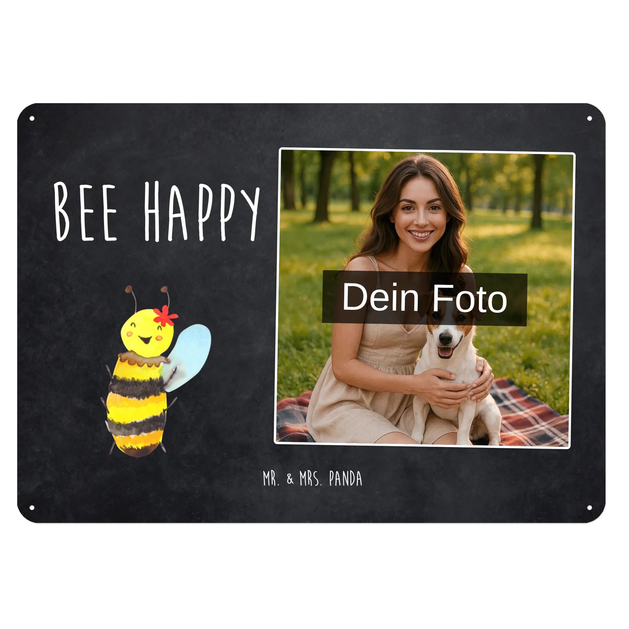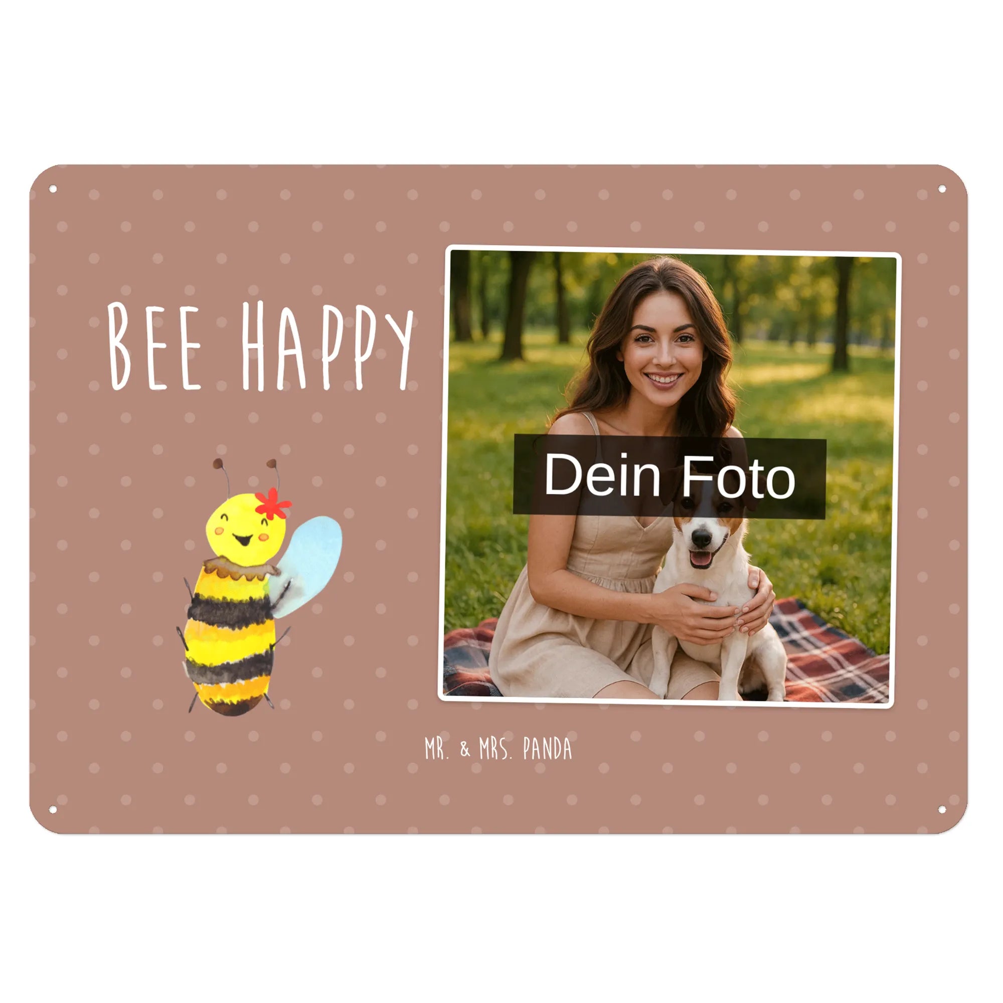Spersonalizowany metalowy szyld ze zdjęciem pszczoła Szczęśliwy - DIN A6 - Brąz Pastelowy