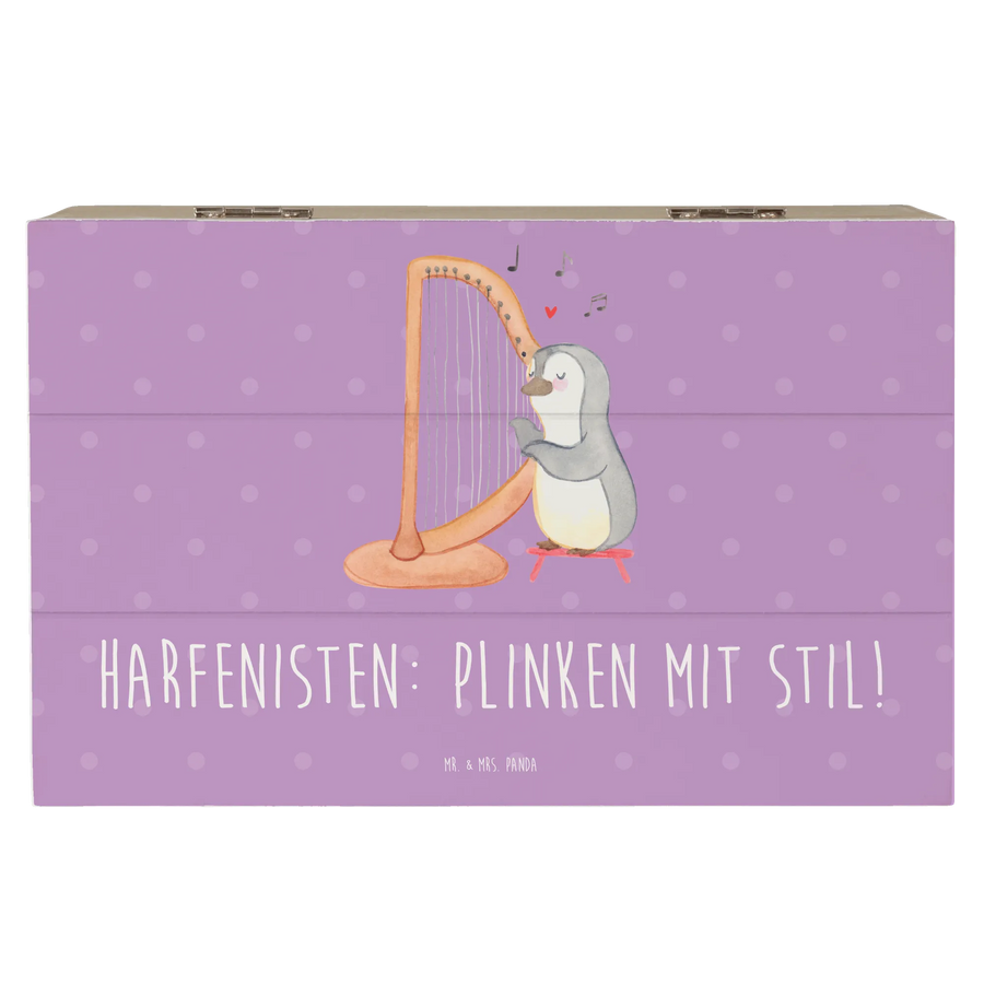 Die wunderschöne Holzkiste von Mr. & Mrs. Panda ist mehr als nur eine Kiste – sie ist ein Ort, an dem Erinnerungen bewahrt werden. Mit einem eleganten Harfen-Motiv und dem Slogan "Harfenisten: Plinken mit Stil!" ist diese Schatzkiste perfekt für Musiker und Musikliebhaber.