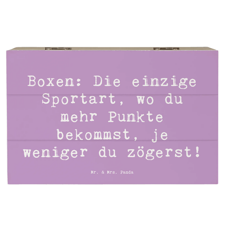 Die wunderschöne Holzkiste von Mr. & Mrs. Panda ist das perfekte Geschenk für alle Sportliebhaber! Mit dem motivierenden Spruch "Boxen: Die einzige Sportart, wo du mehr Punkte bekommst, je weniger du zögerst!" bringt diese einzigartige Erinnerungskiste nicht nur Stil, sondern auch Spaß in jedes Zuhause.