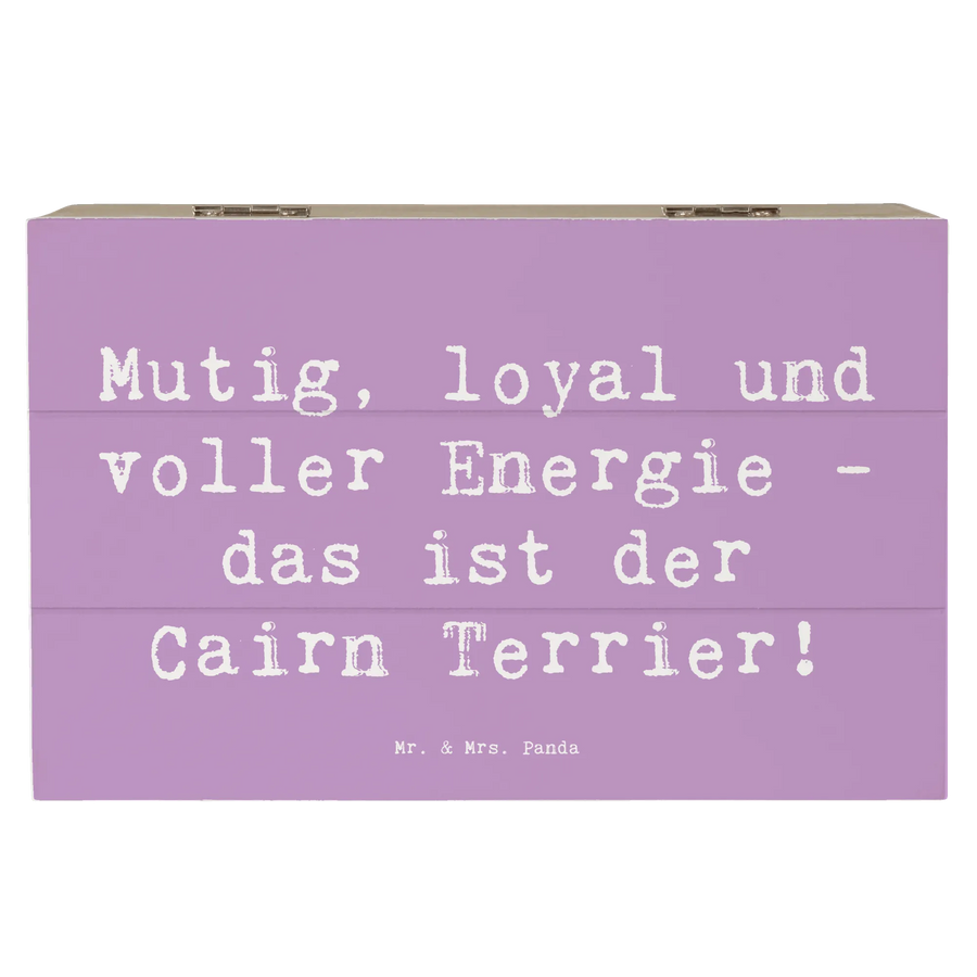 Die wunderschöne Holzkiste von Mr. & Mrs. Panda ist der perfekte Ort, um all Deine wertvollen Erinnerungen und Schätze sicher aufzubewahren. Mit einem einzigartigen Motiv des Cairn Terriers und dem liebevollen Spruch "Mutig, loyal und voller Energie - das ist der Cairn Terrier!" wird diese Erinnerungskiste garantiert zum Blickfang in Deinem Zuhause.