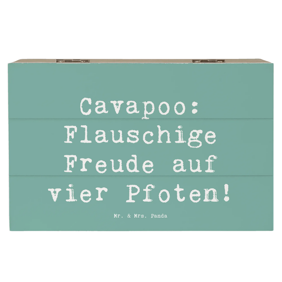Die wunderschöne Holzkiste mit dem niedlichen Cavapoo-Motiv von Mr. & Mrs. Panda ist der perfekte Begleiter für all deine wertvollen Erinnerungen. Ob als Schatzkiste für besondere Anlässe, als Aufbewahrungsbox für Fotos oder als kreative Geschenkbox – diese Kiste ist vielseitig einsetzbar und ein echter Hingucker in jedem Raum. Ihr einzigartiges Design macht sie zu einem absoluten Muss für jeden Hundefan und insbesondere für Liebhaber der Hunderasse Cavapoo. Mit der Aufschrift "Cavapoo: Flauschige Freude auf vier Pfoten!" bereitet sie garantiert ein Lächeln auf das Gesicht jedes Betrachters.
