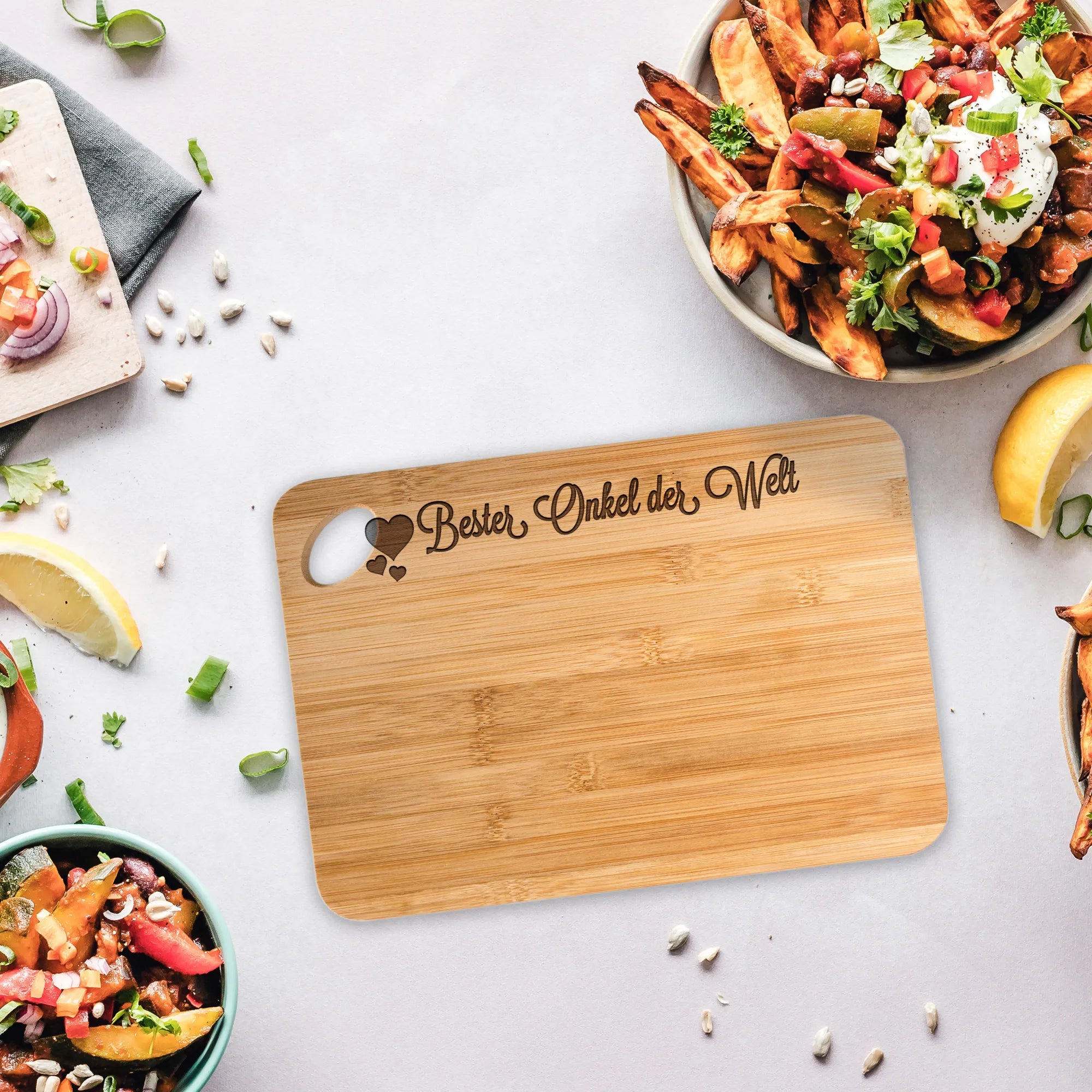 Praktisch und schön: Das Holzbrett ist sehr strapazierfähig und eignet sich wunderbar als Hackbrett für Kräuter, als Küchenbrett für die tägliche Vorbereitung oder als hübsches Servierbrett für Käse und Brot. Die langlebige Lasergravur bleibt schön sichtbar, auch bei häufiger Nutzung. Ein Geschenk für den Lieblingsonkel, Großonkel oder einfach für den Onkel, der immer für dich da ist.