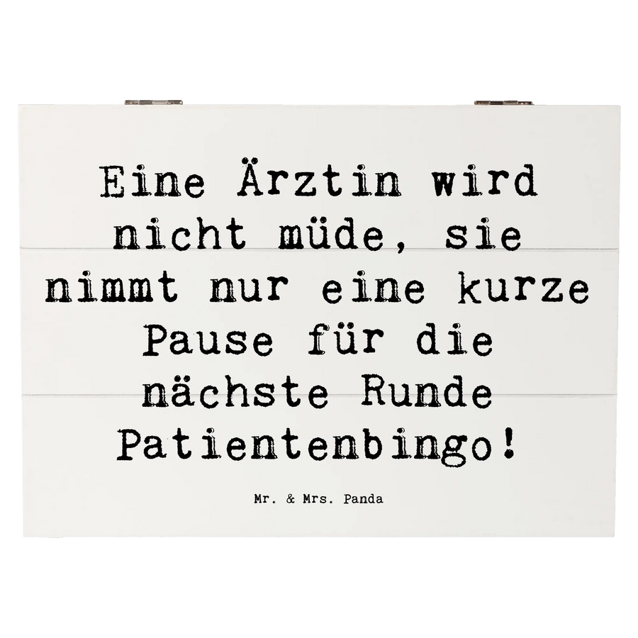 Die wunderschöne Holzkiste von Mr. & Mrs. Panda ist das perfekte Geschenk für alle Ärztinnen und medizinischen Fachkräfte! Mit dem humorvollen Spruch "Eine Ärztin wird nicht müde, sie nimmt nur eine kurze Pause für die nächste Runde Patientenbingo!" bringt diese Kiste nicht nur ein Lächeln, sondern auch eine persönliche Note.