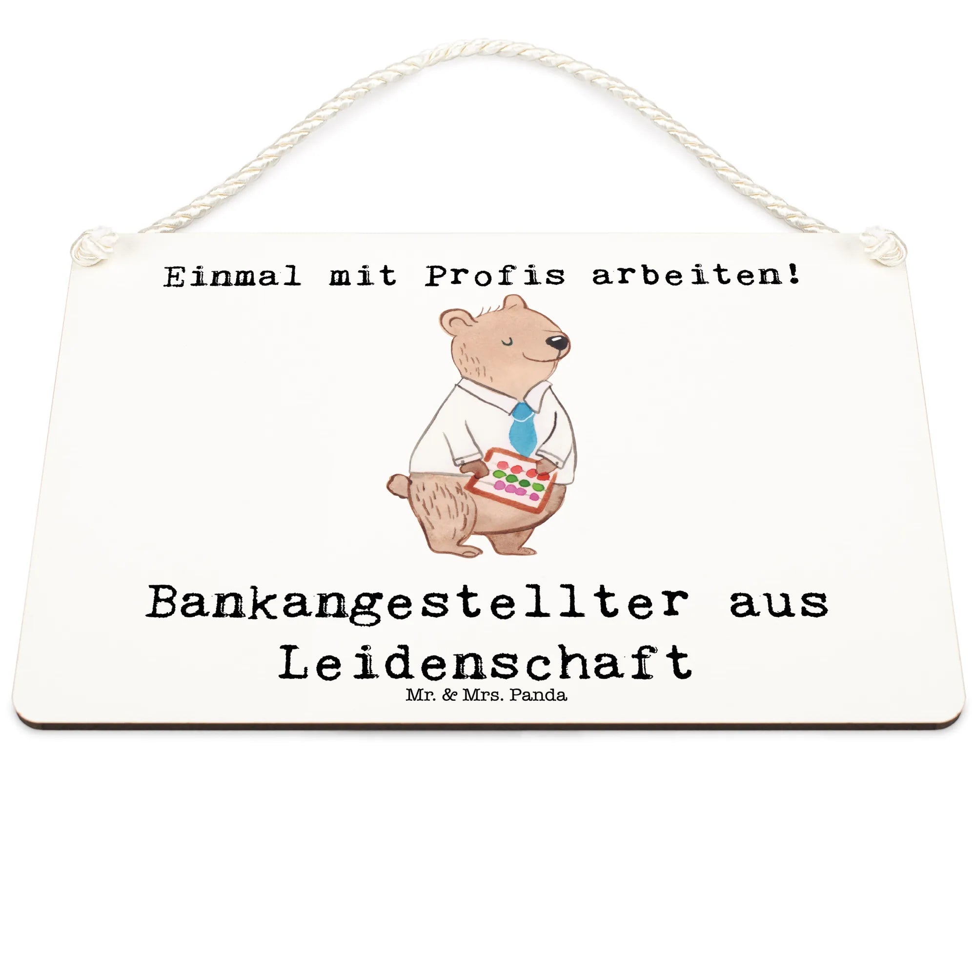 Das Deko Schild "Bankangestellter aus Leidenschaft" von Mr. & Mrs. Panda ist das perfekte Geschenk für alle Bankangestellten, die ihre Leidenschaft für ihren Beruf zelebrieren möchten. Mit seinem liebevollen Design und dem charmanten Motiv eines kleinen Bären, der einen Rechenschieber in der Hand hält, bringt dieses Holzschild Freude in jede Umgebung. Egal, ob als kreative Wanddeko oder stilvolles Türschild, dieses dekorative Element ist ideal, um das Arbeitsumfeld einladender zu gestalten.