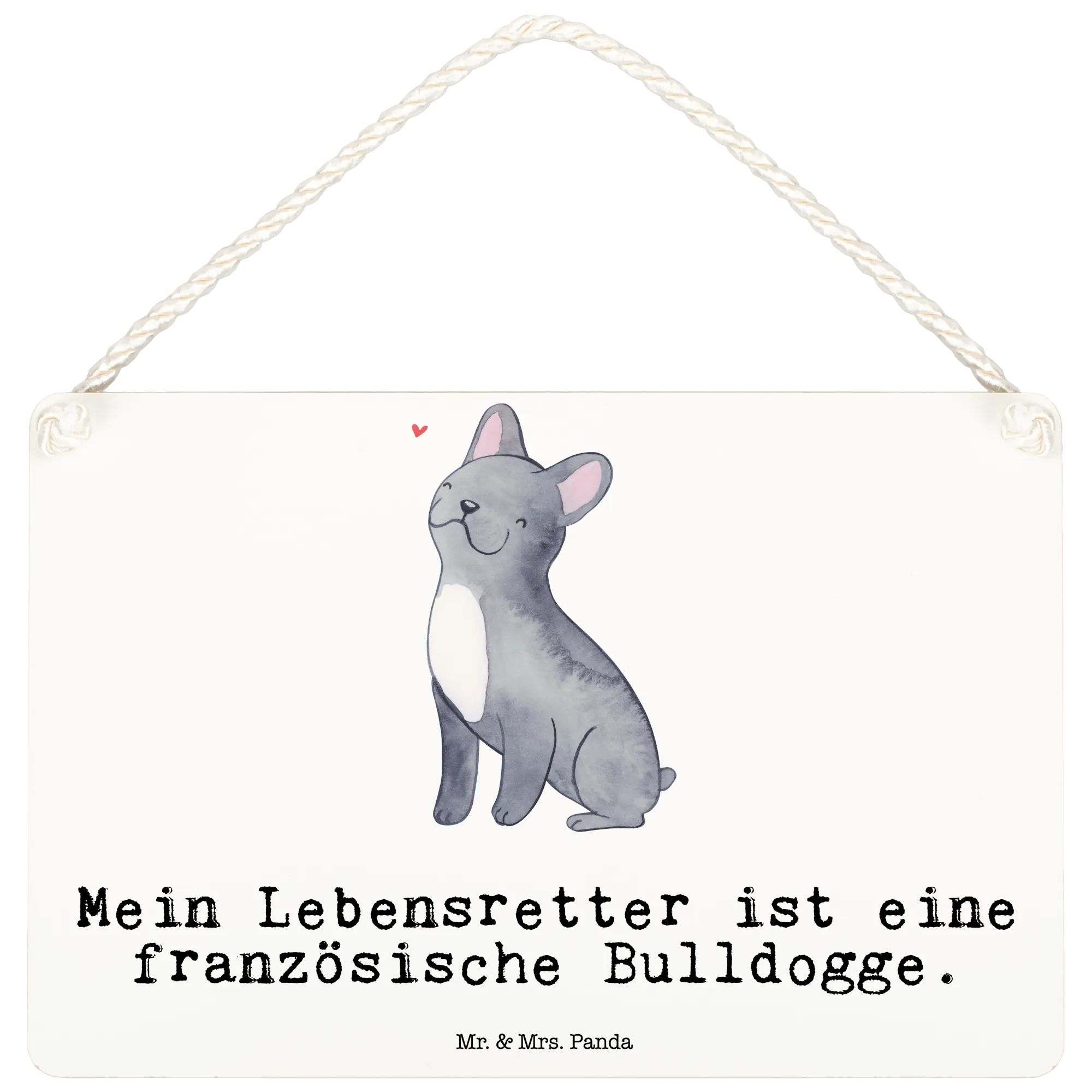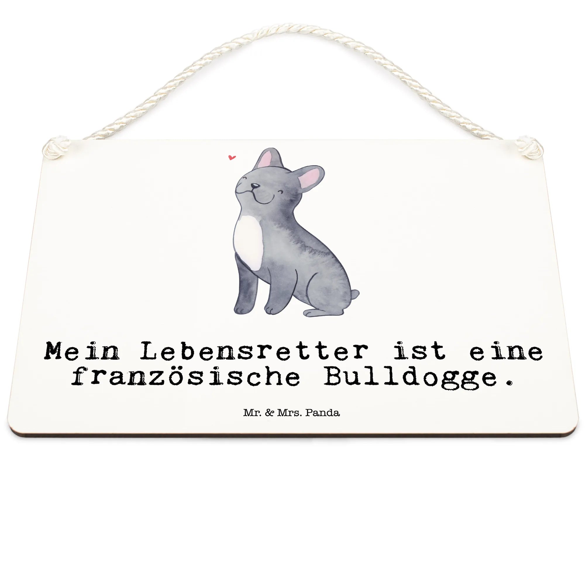 Mit diesem Deko Schild drückst Du die Liebe zu Deinem vierbeinigen Freund auf eine wunderschöne Art und Weise aus. Die Hunderasse Kollektion von Mr. & Mrs. Panda beaufschlagt jeden Raum mit einem Hauch von Herzlichkeit und zeigt die besondere Bindung zwischen Mensch und Hund. Schenke Freude, teile Deine Liebe und zeige, wie wichtig Deine französische Bulldogge für Dich ist - mit unserem einzigartigen Deko Schild wird das leicht gemacht!
