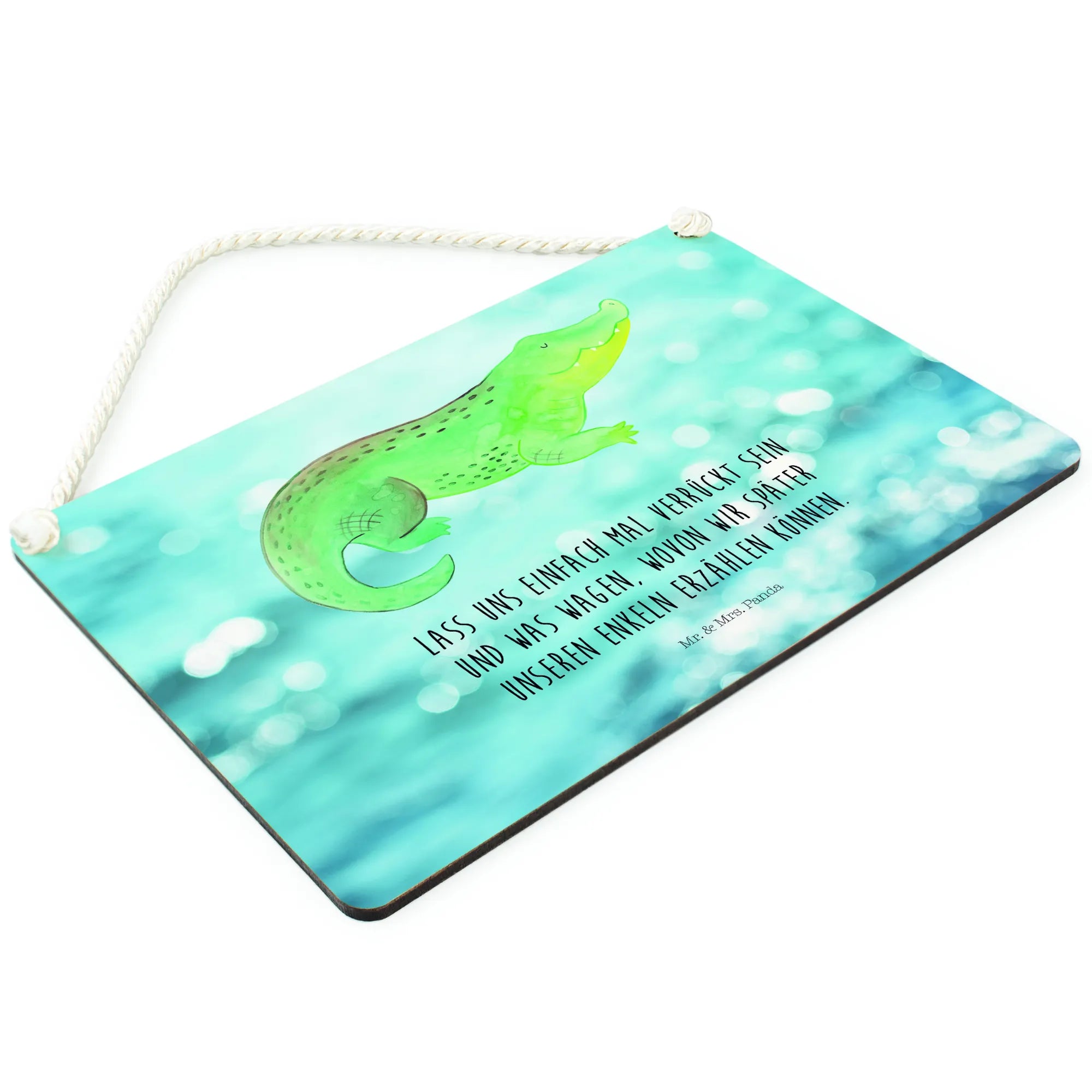Dekoracyjny znak Krokodyl - z napisem - biały