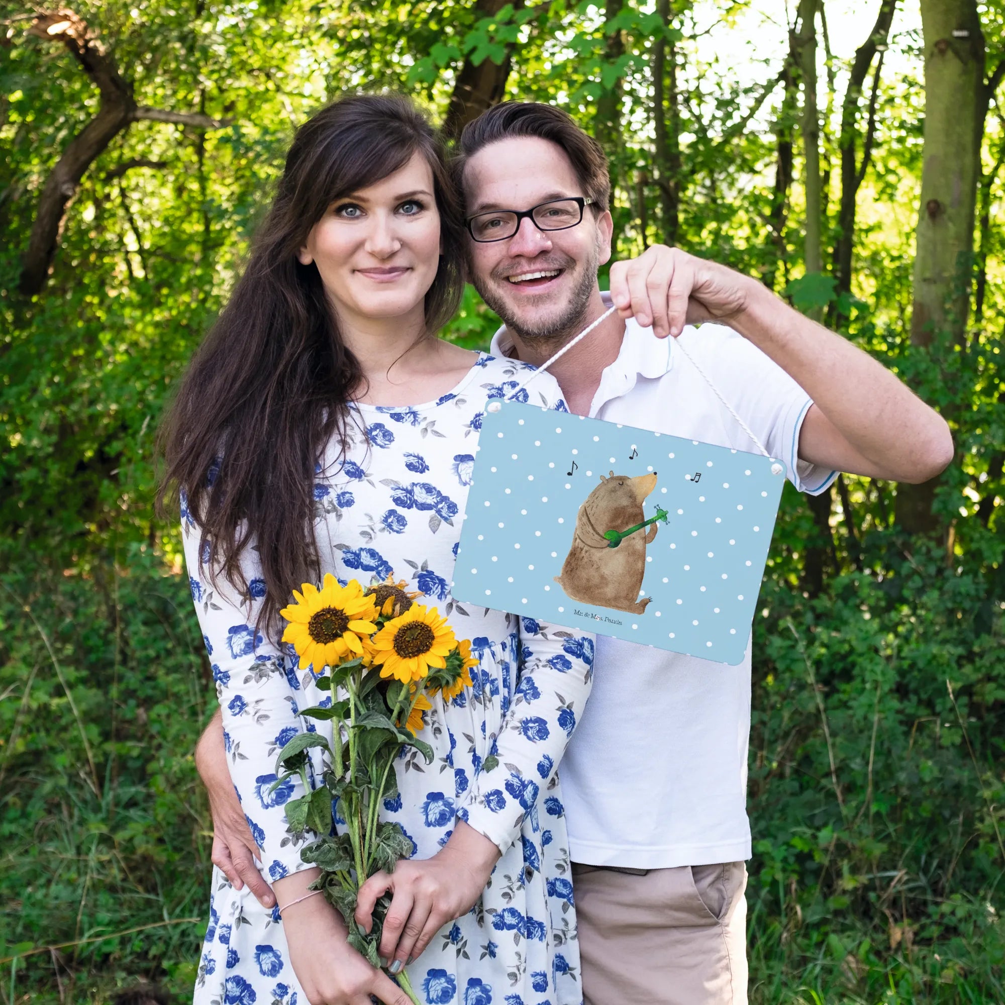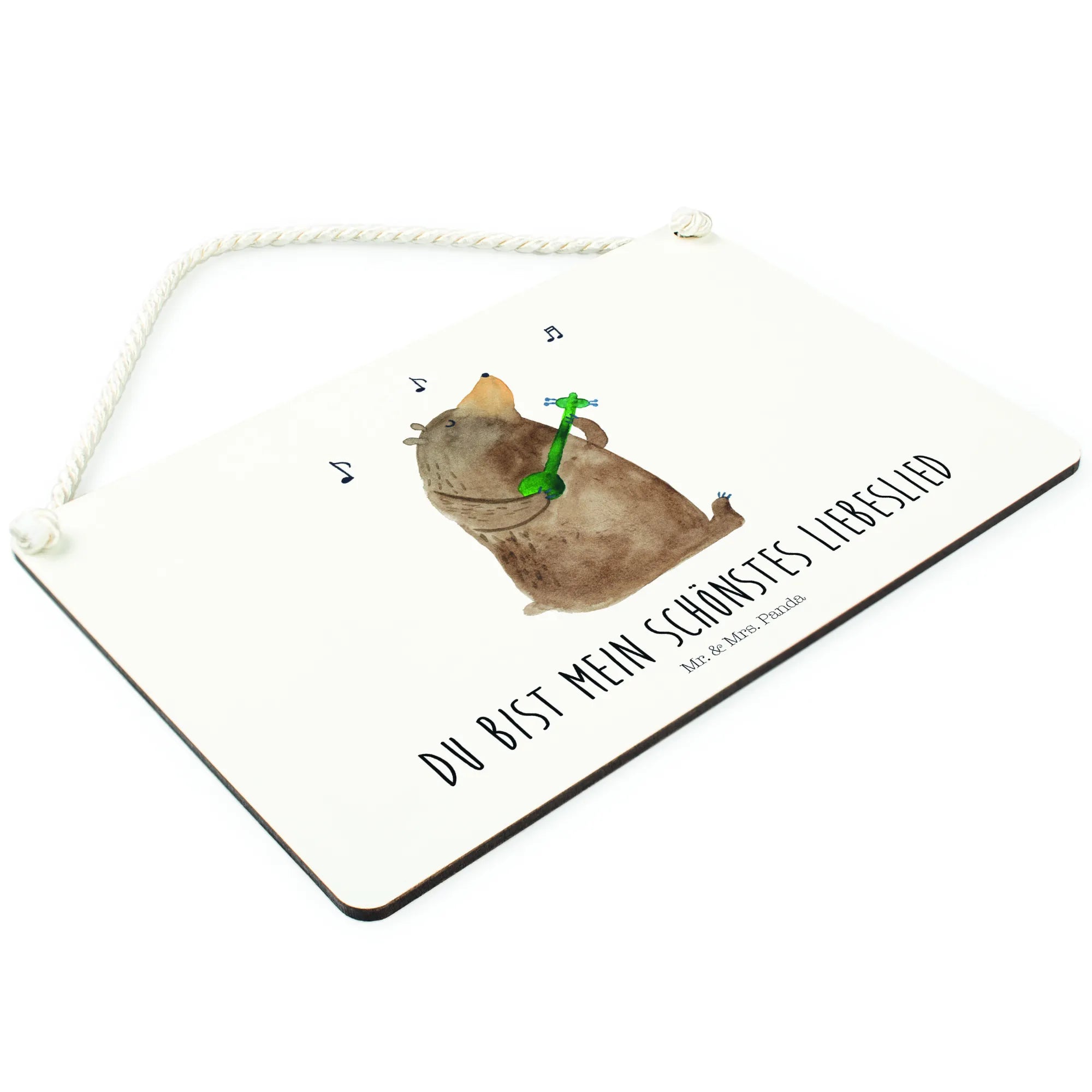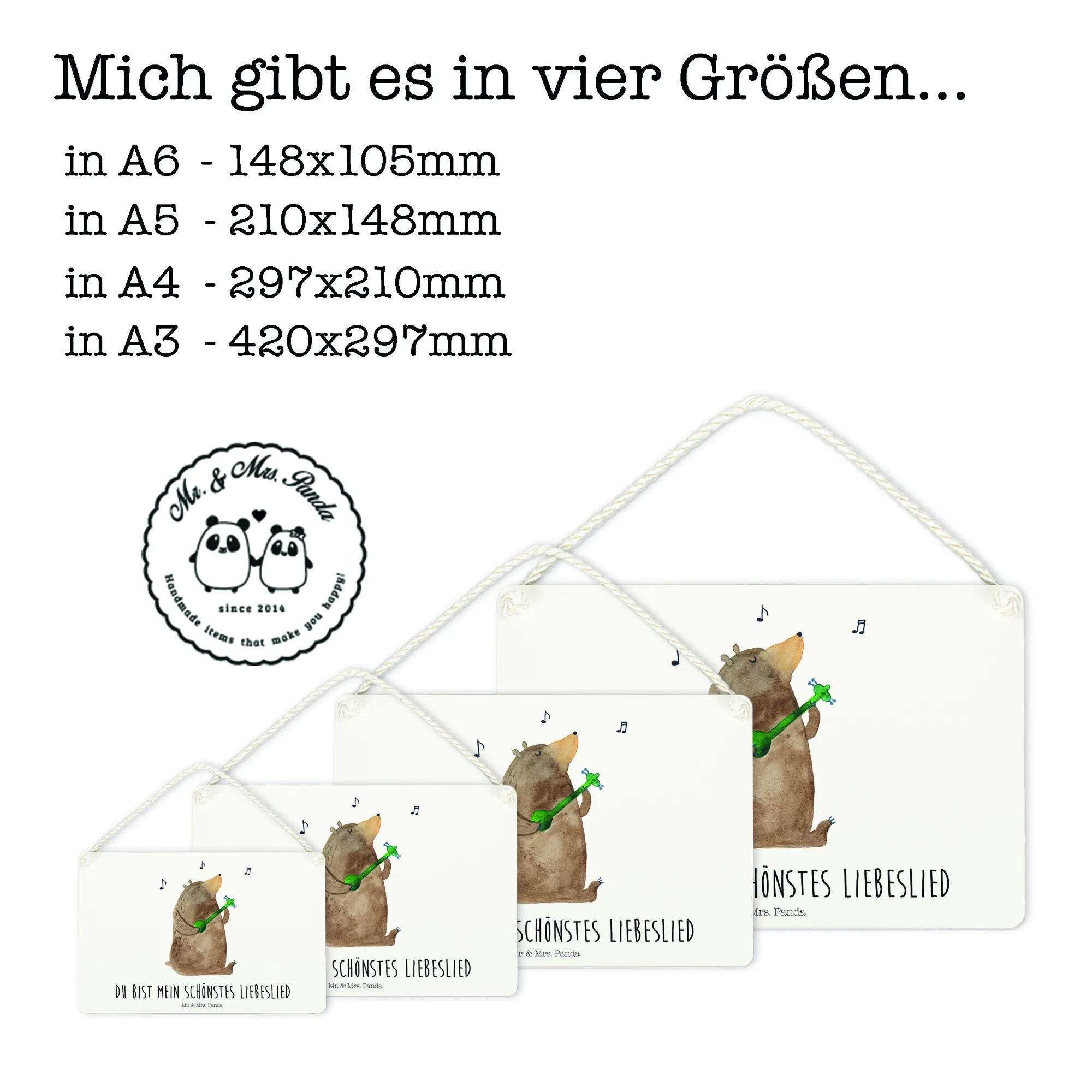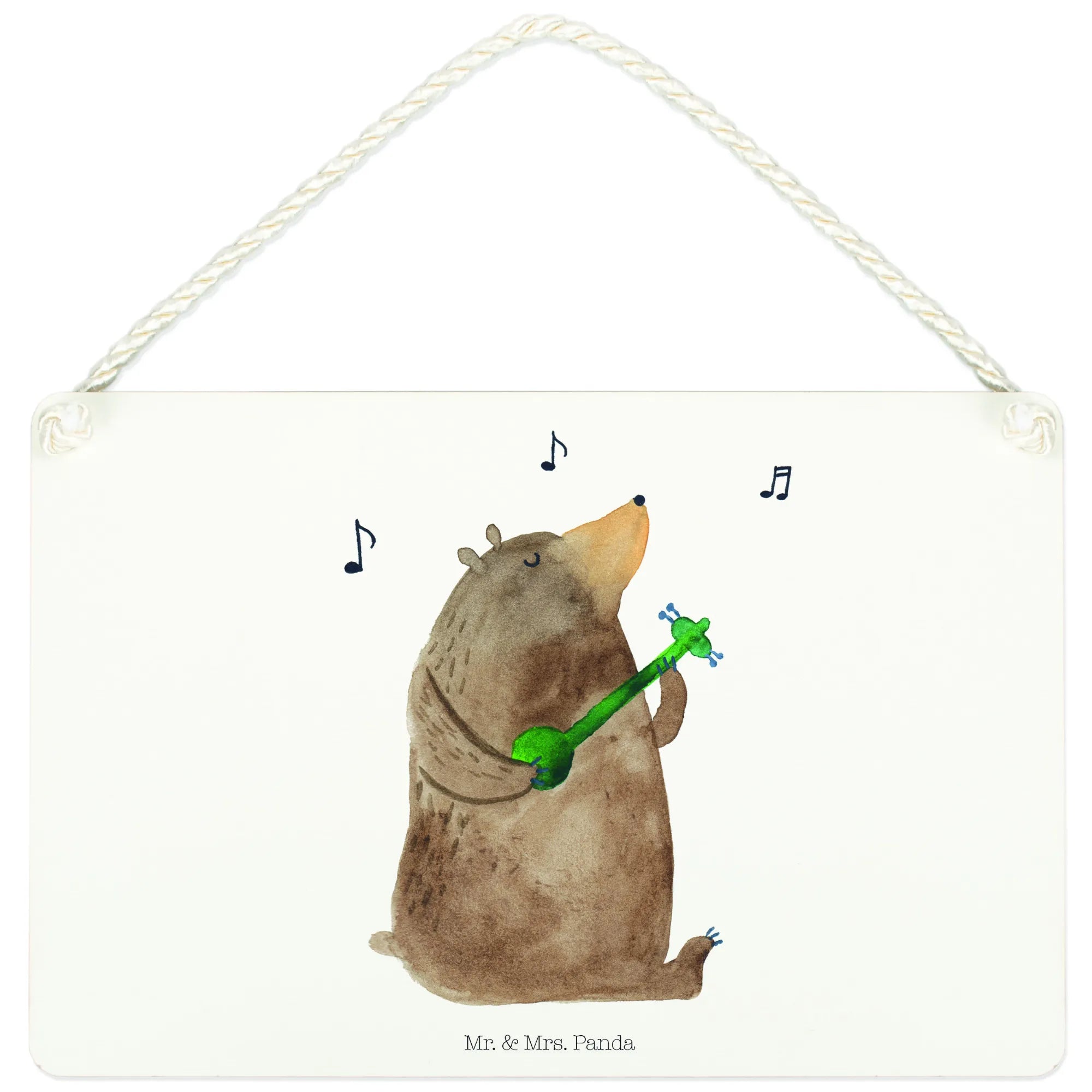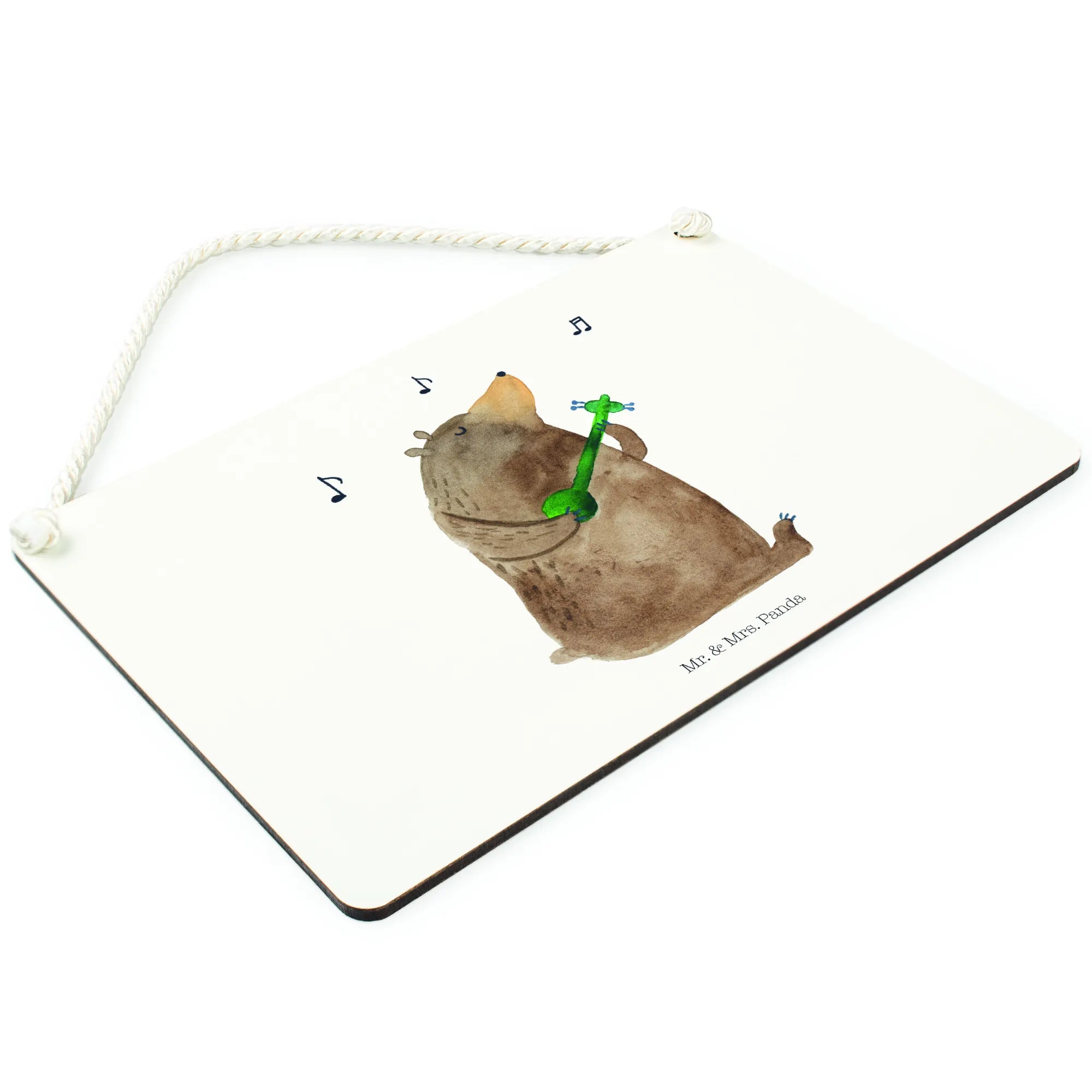 Dekoracyjny znak niedźwiedź piosenka - z napisem - biały