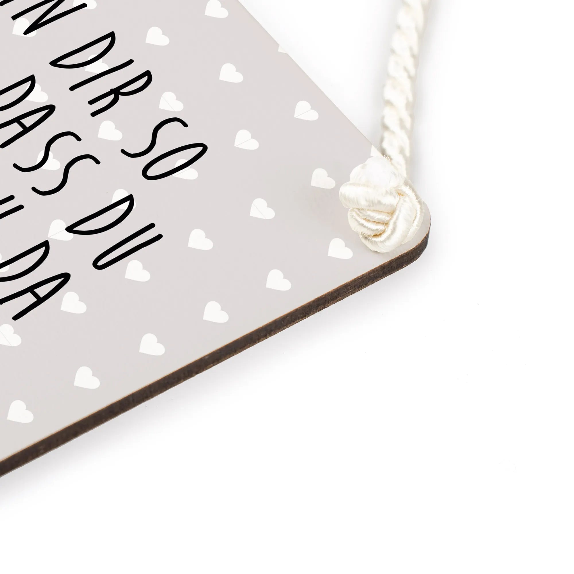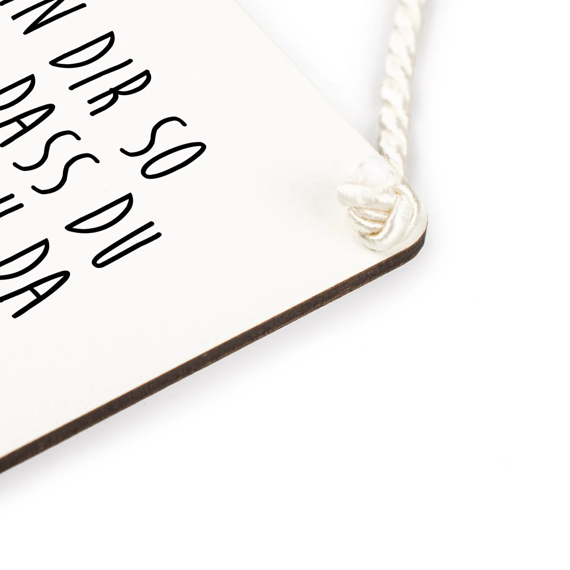 Die sorgfältige Verarbeitung aus beschichteten Holzfasern sorgt dafür, dass das Schild langlebig bleibt und seine Farben auch nach Jahren noch strahlen. Mit einer wunderschönen, gedrehten Kordel lässt sich das Schild leicht aufhängen.