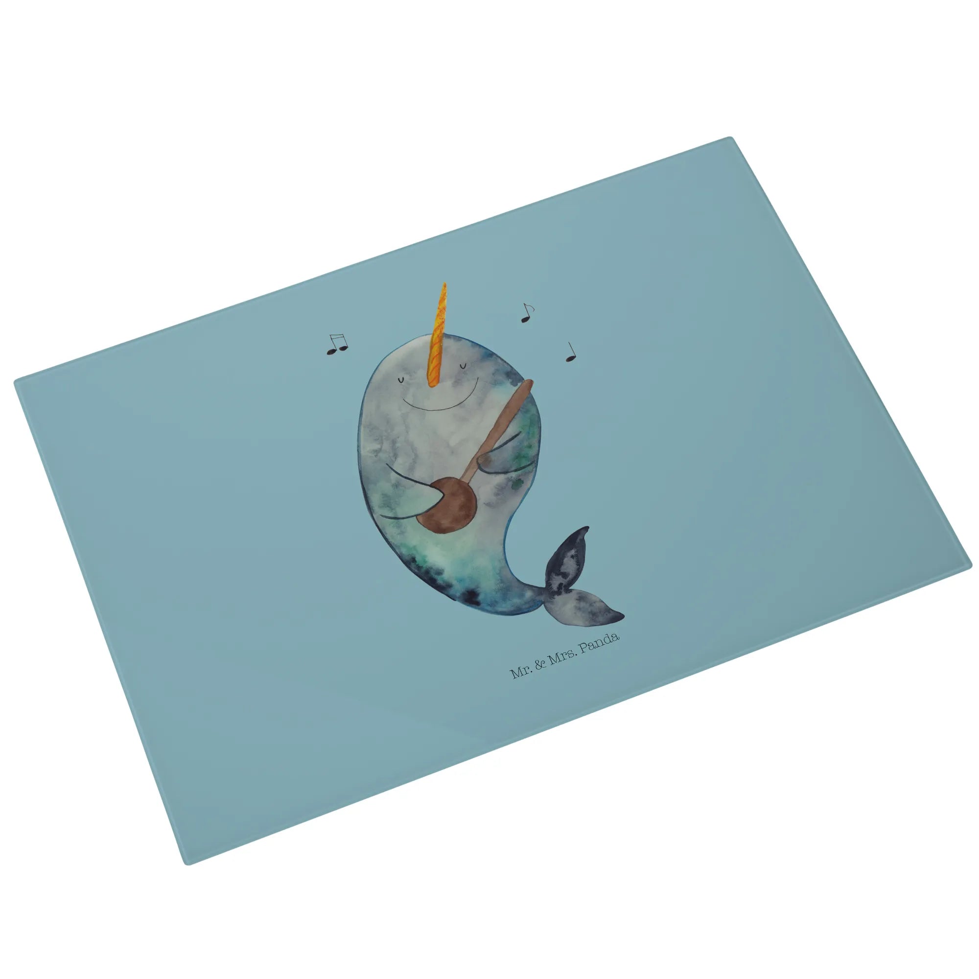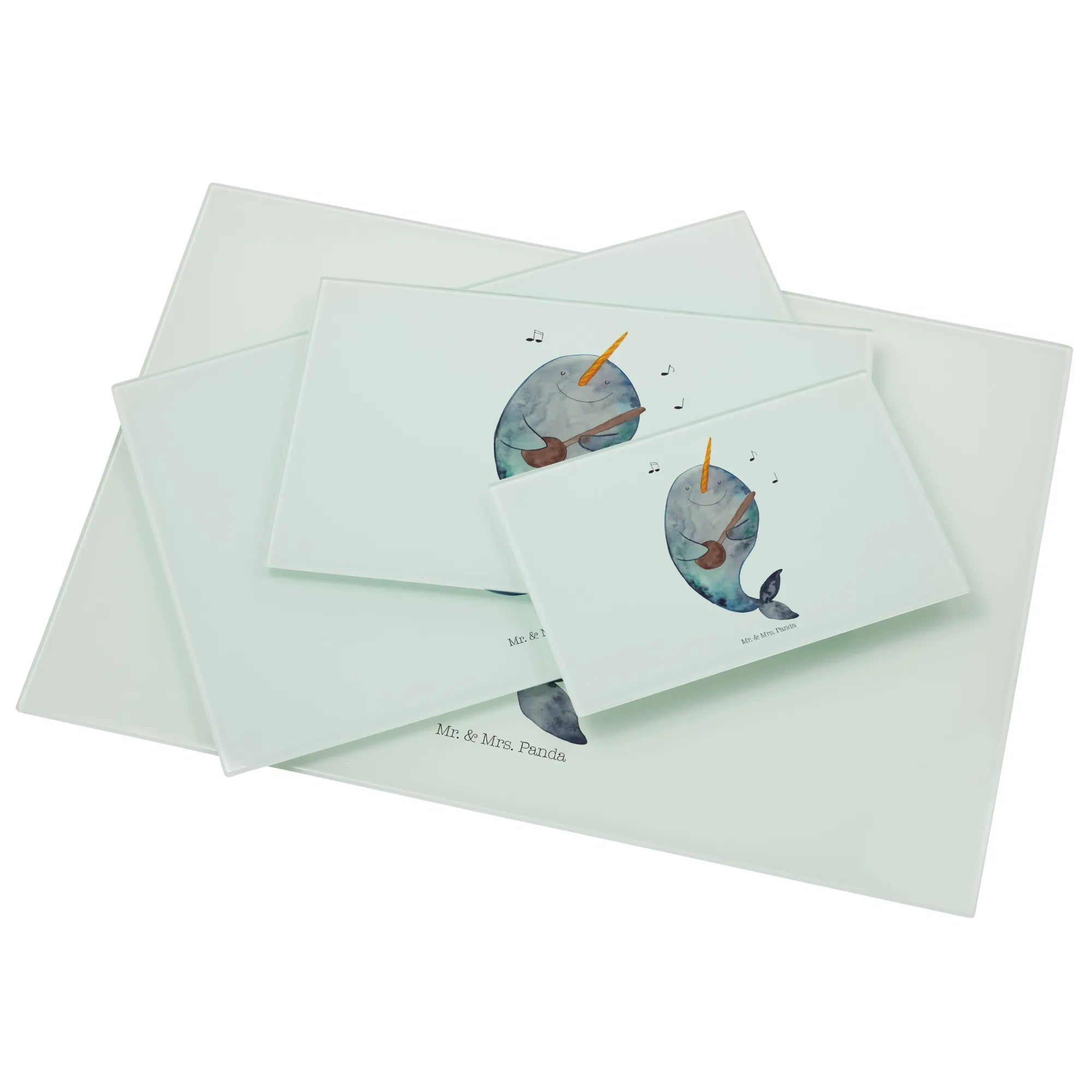 XL Szklana Deska do Krojenia narwal Gitara - Medium Glas Schneidbrett - z napisem - biały