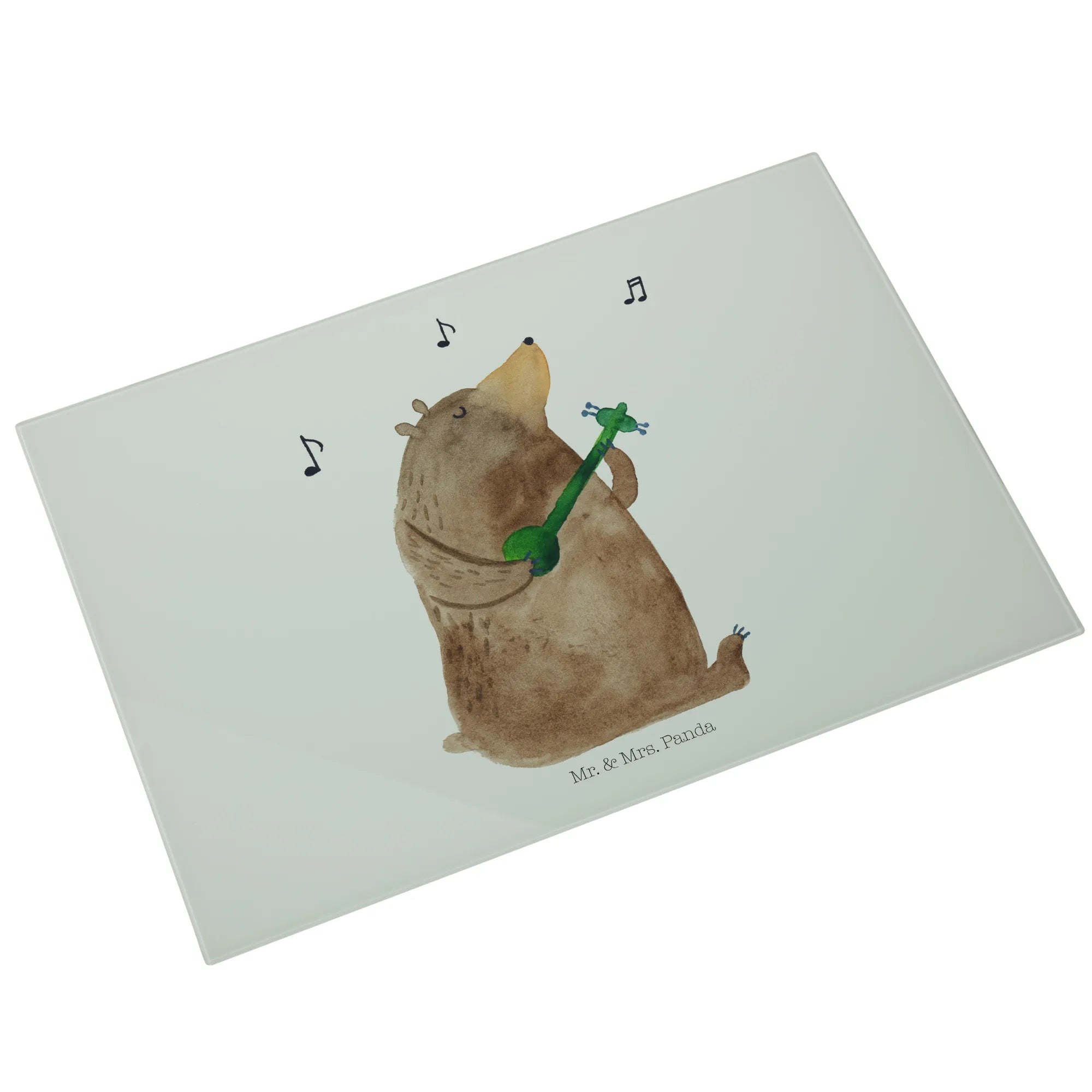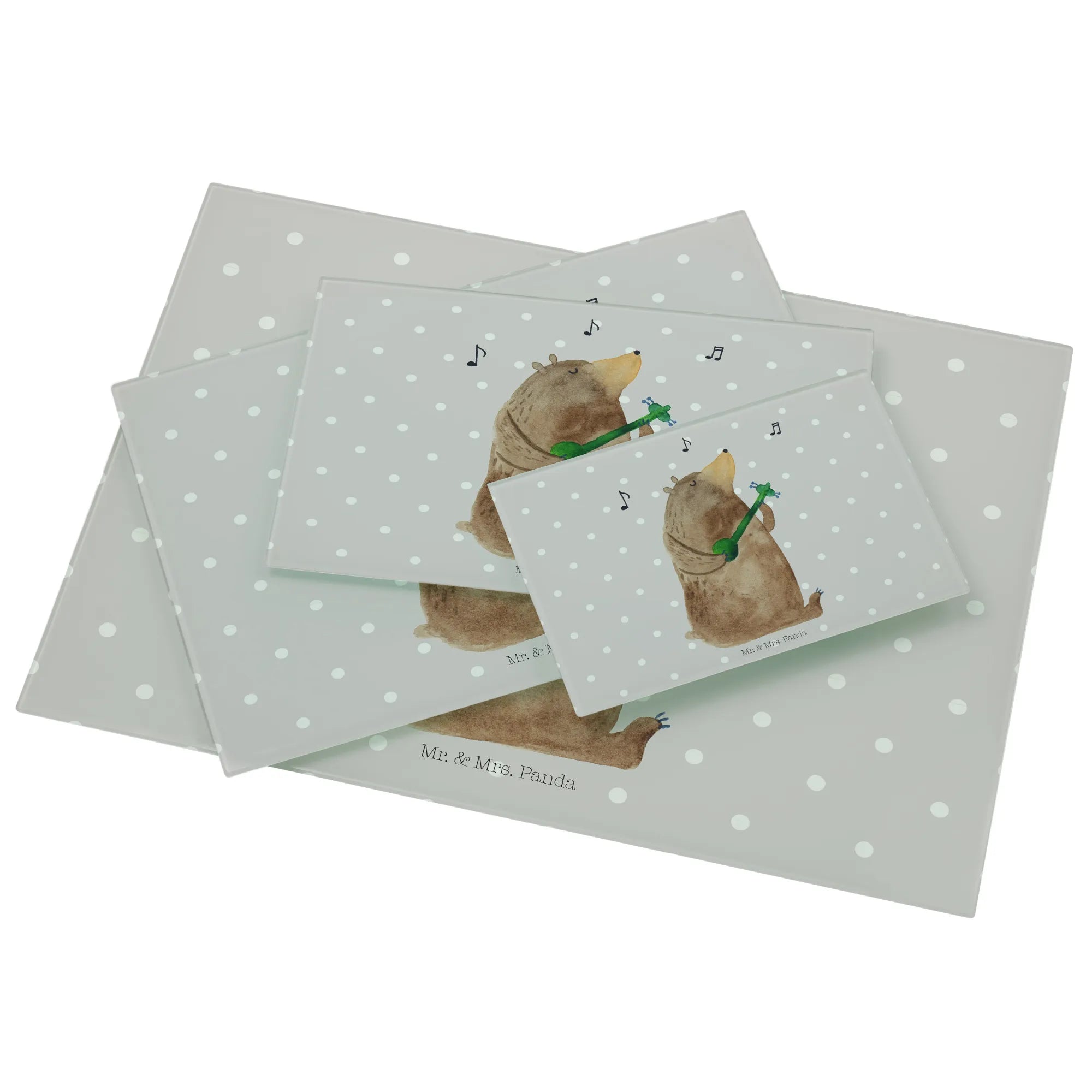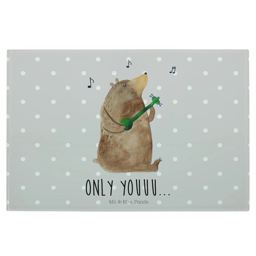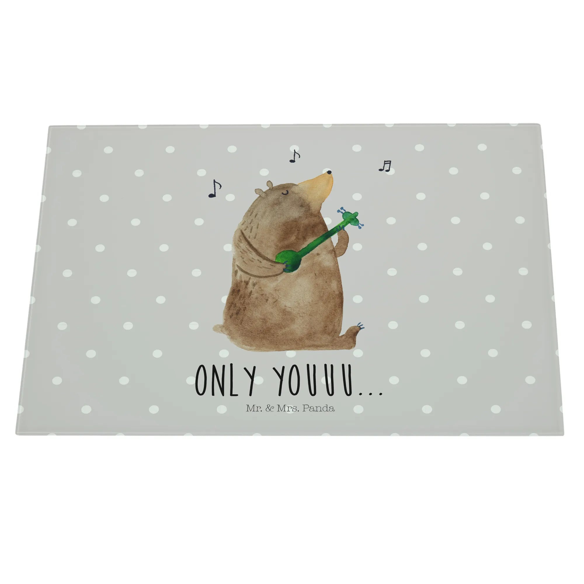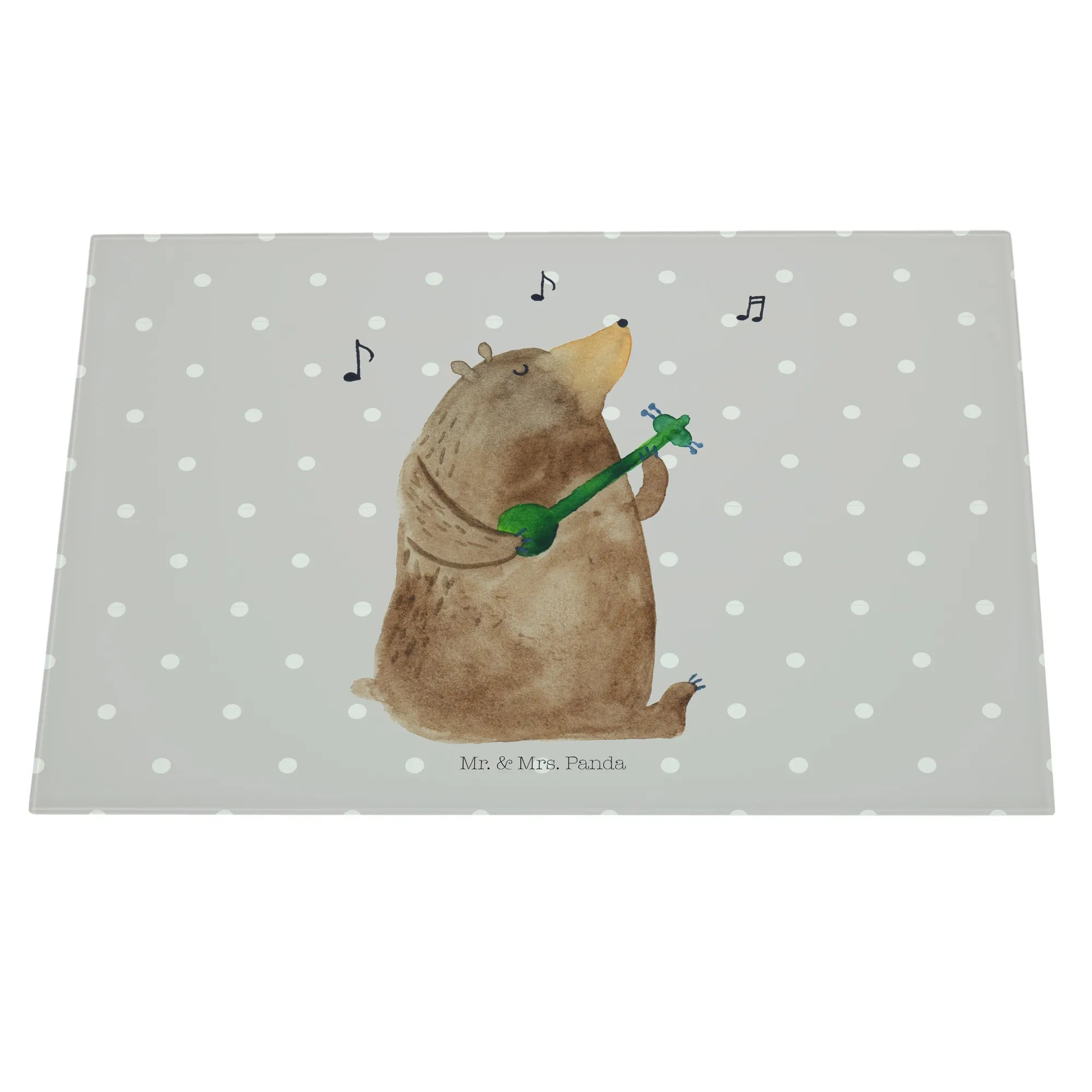 XL Szklana Deska do Krojenia niedźwiedź Gitara - Medium Glas Schneidbrett - z napisem - Pastelowy szary