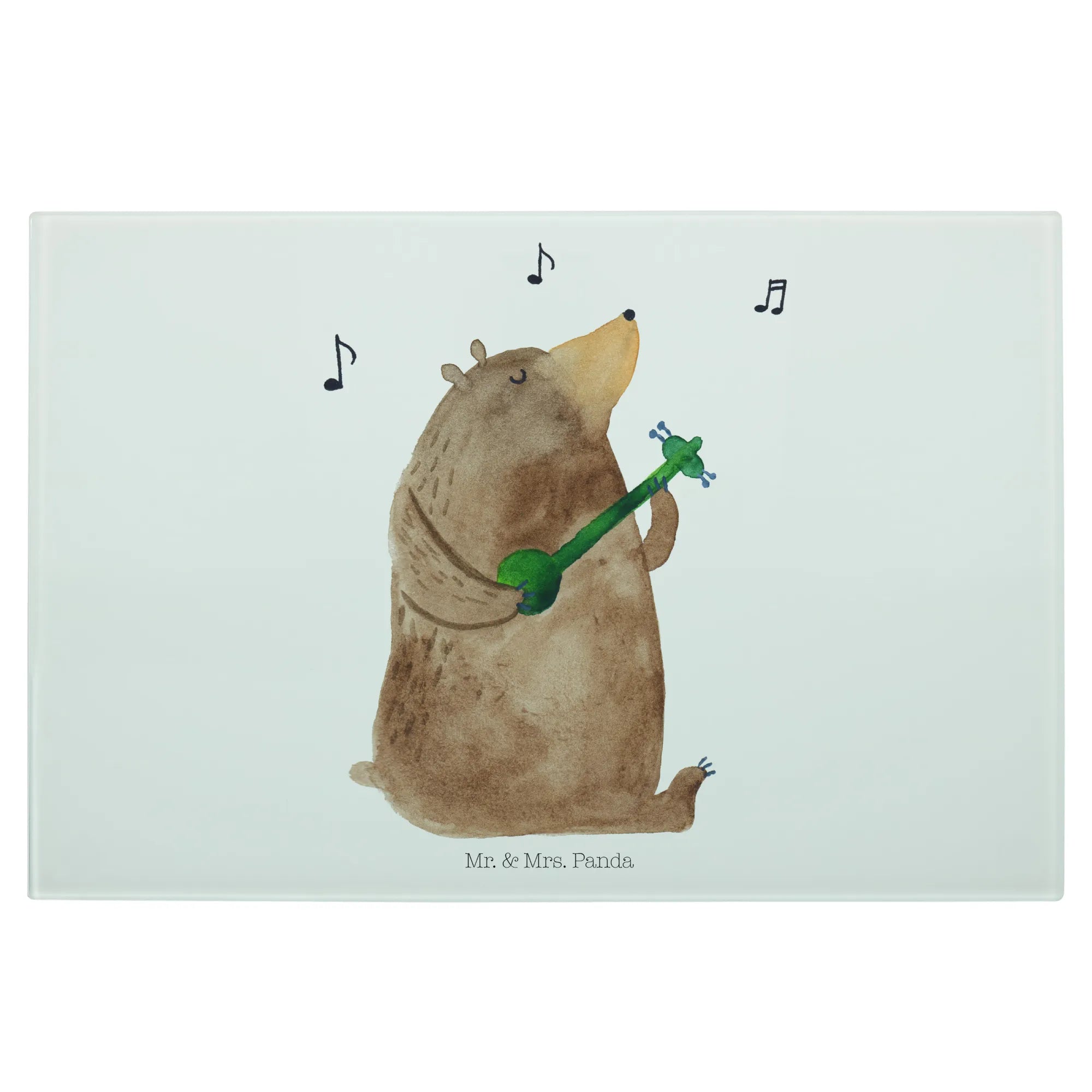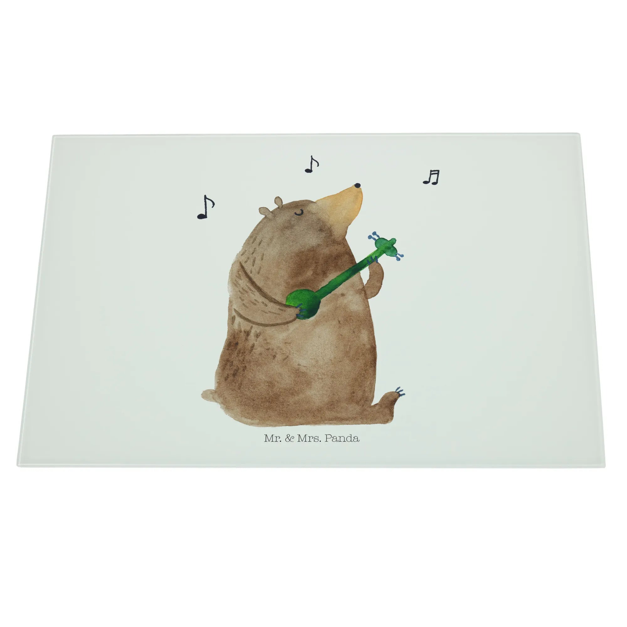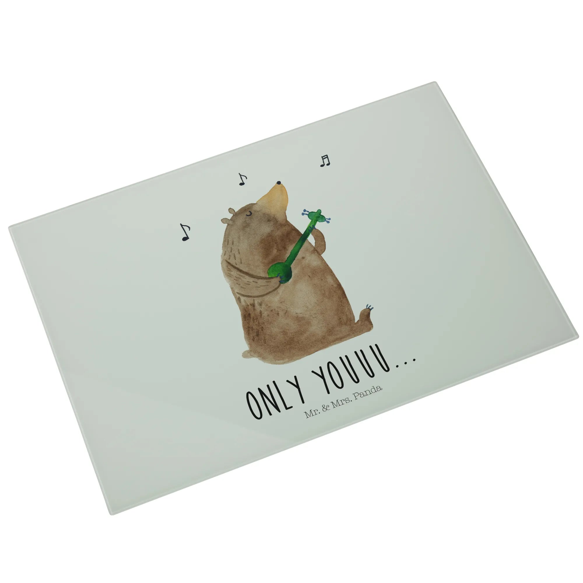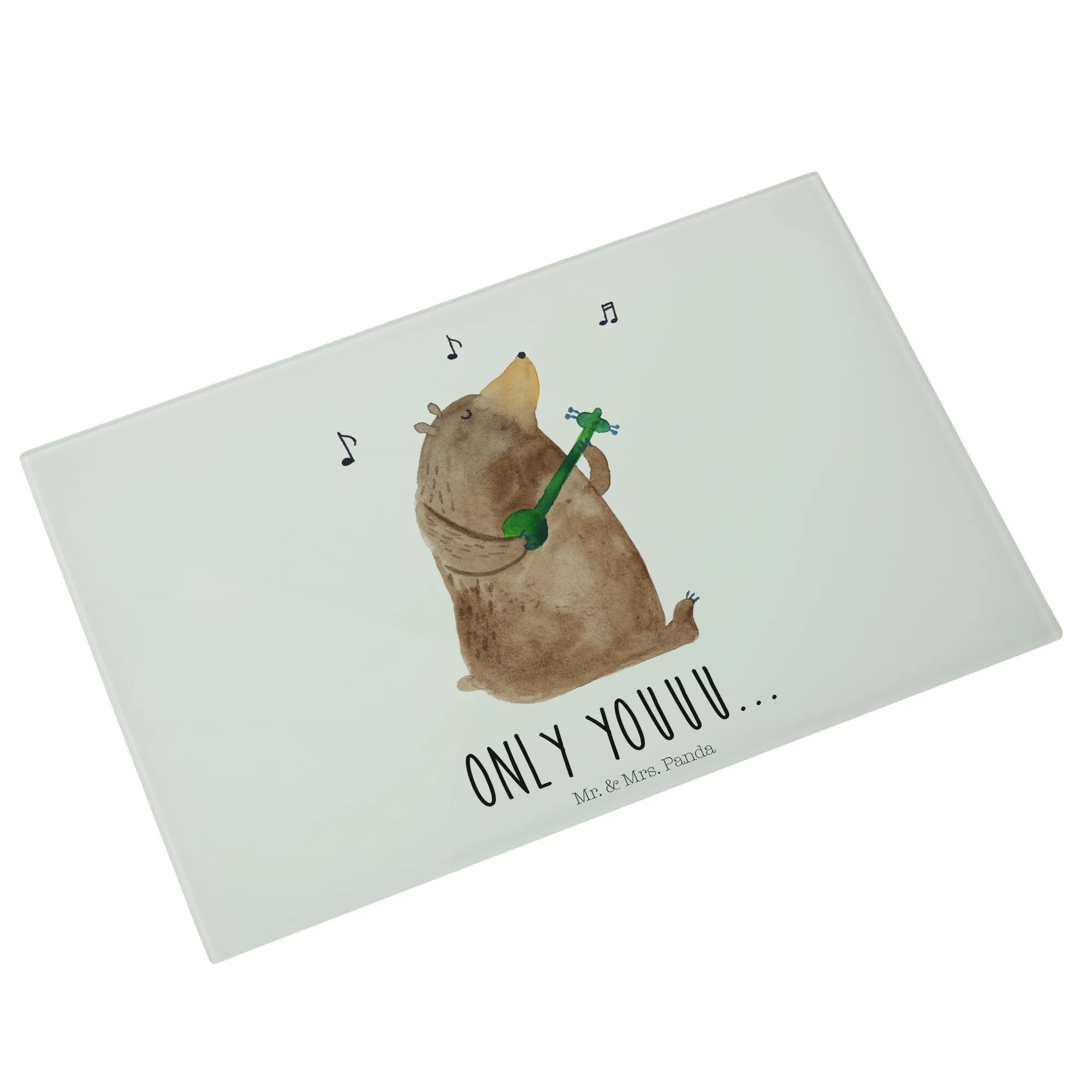 XL Szklana Deska do Krojenia niedźwiedź Gitara - Medium Glas Schneidbrett - z napisem - Pastelowy szary