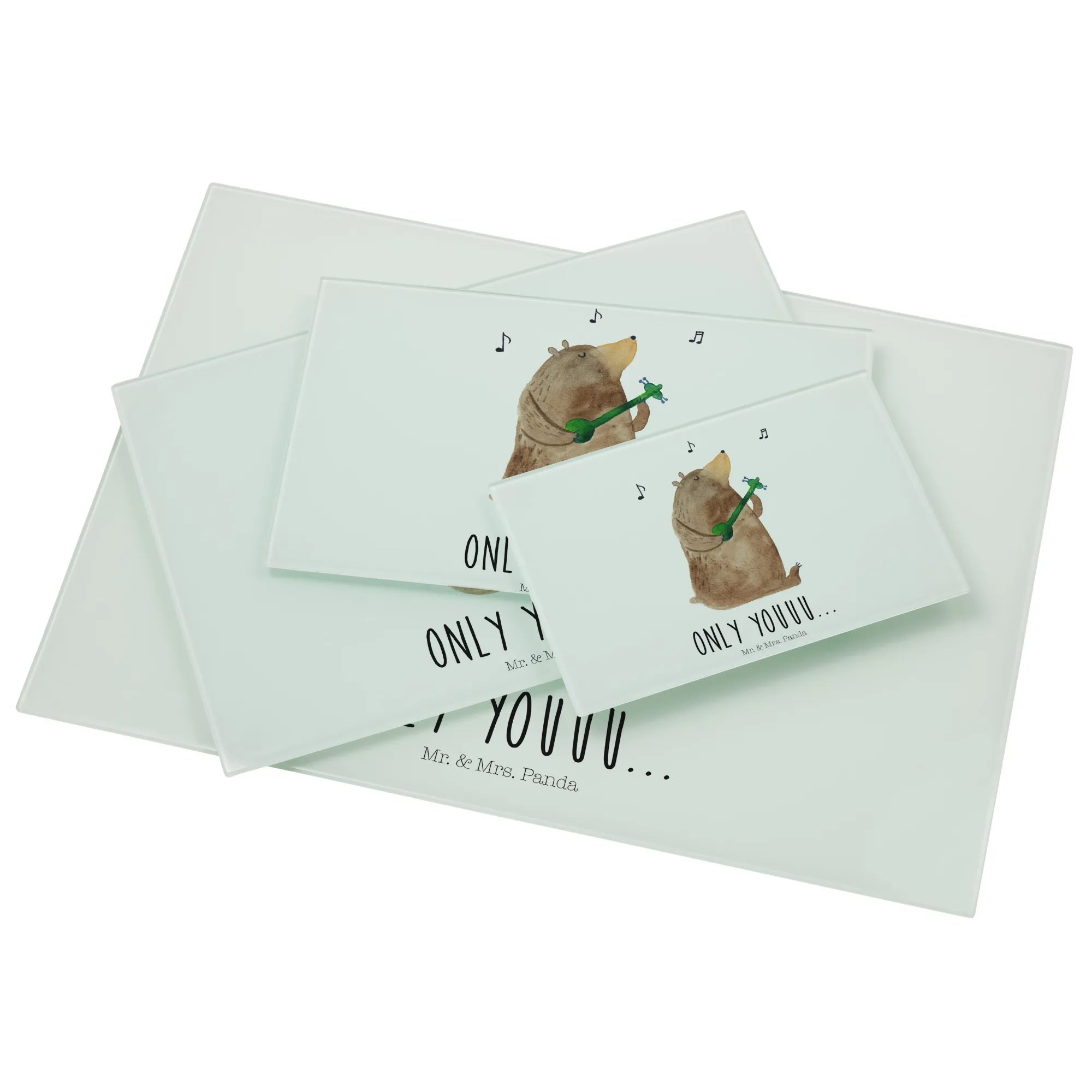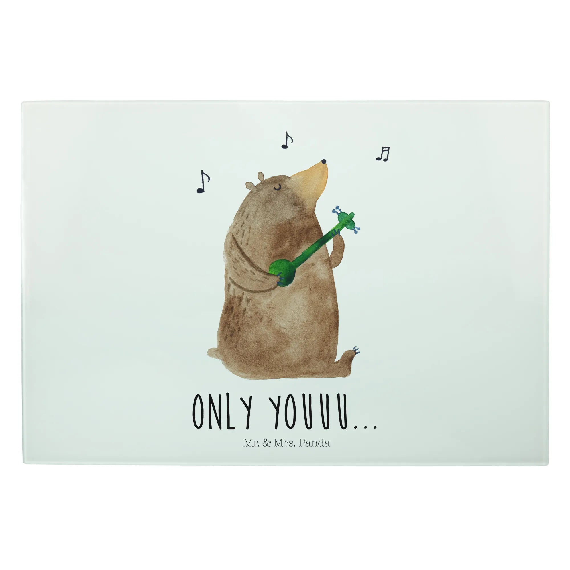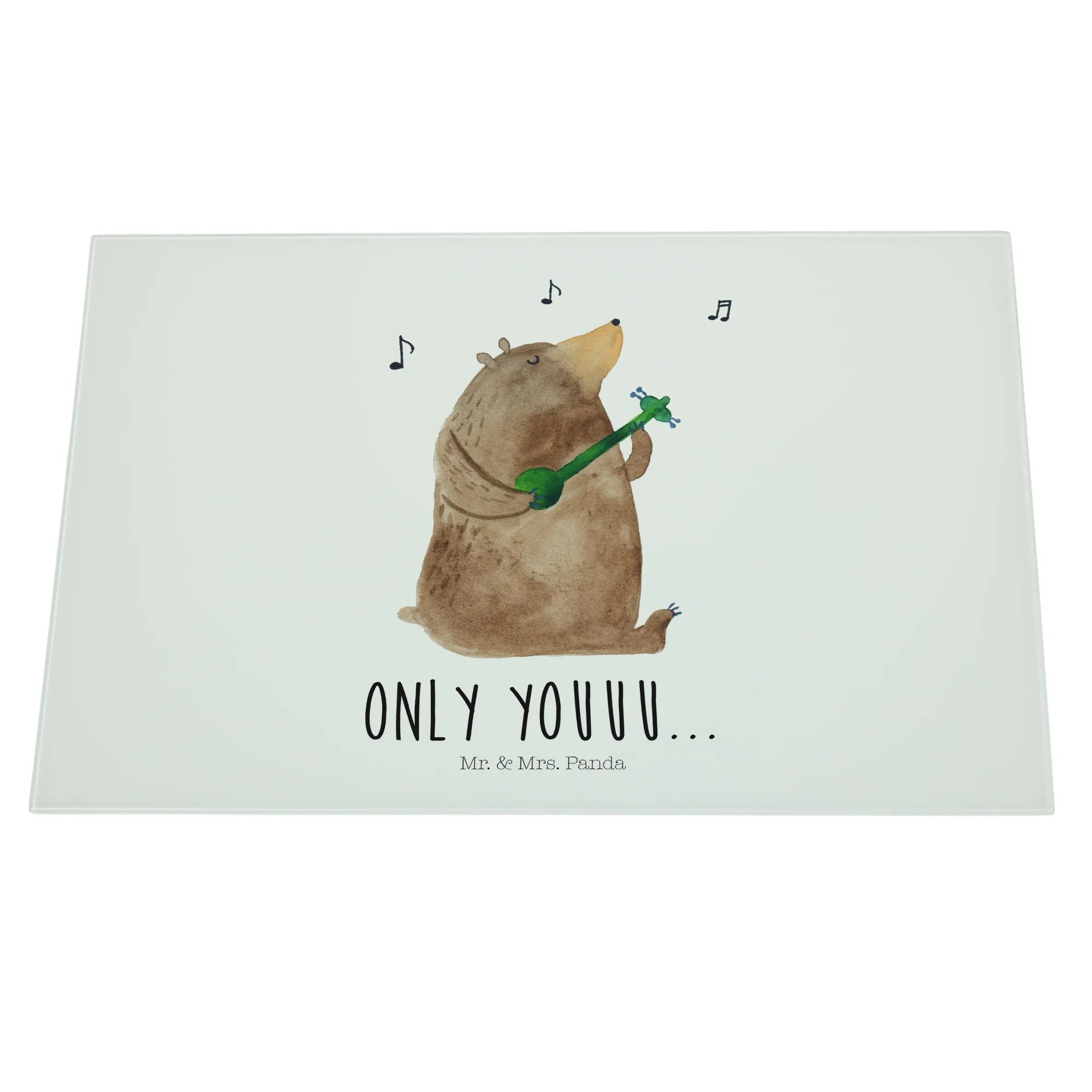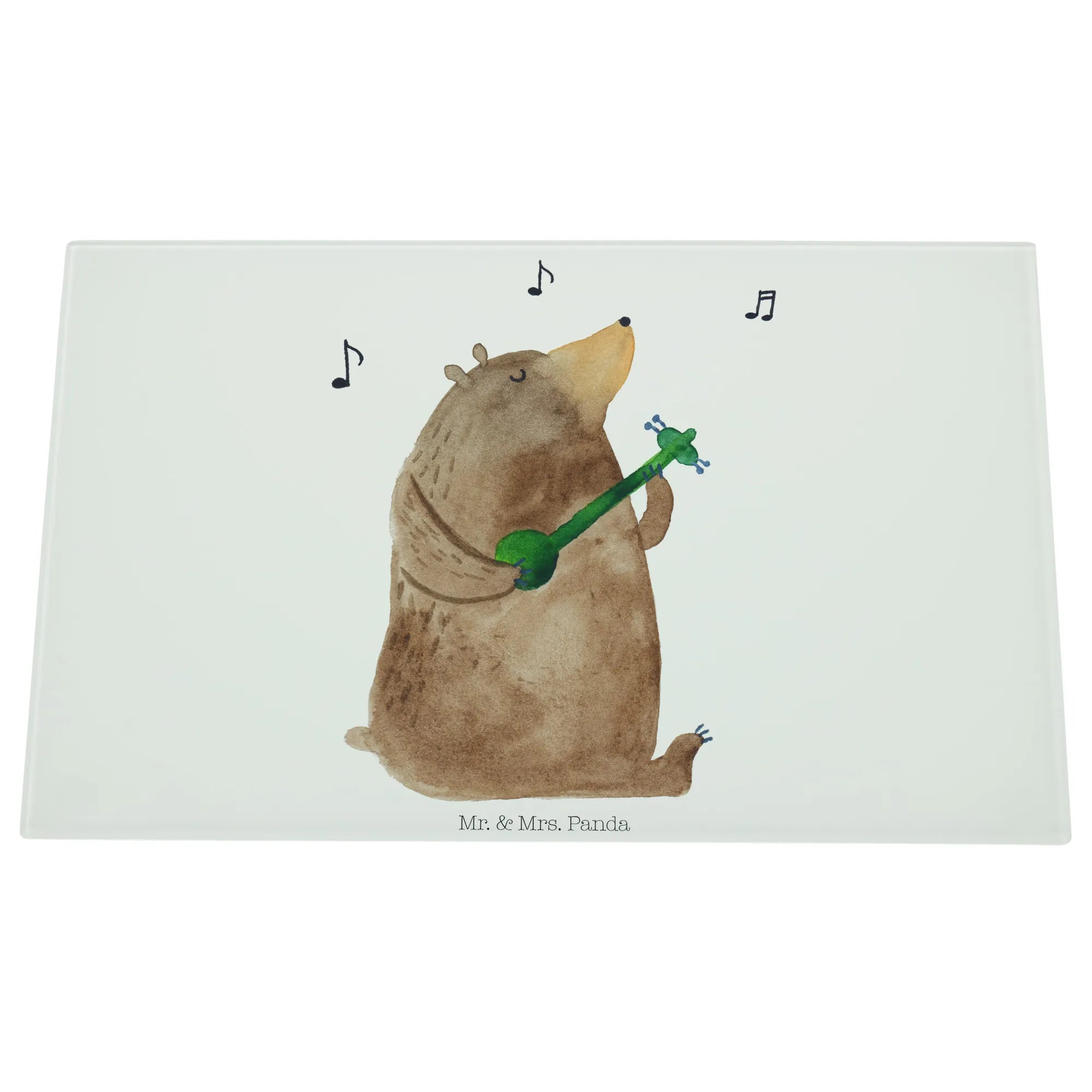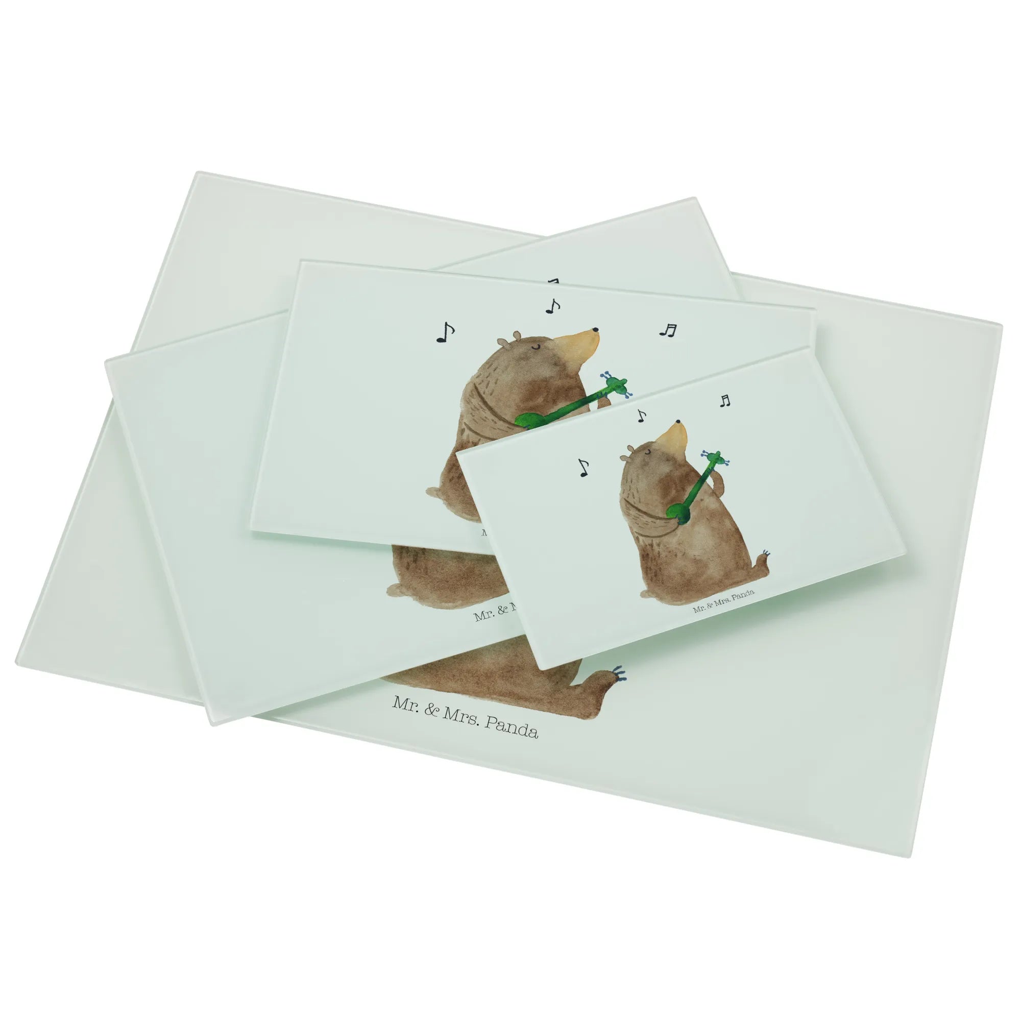 XL Szklana Deska do Krojenia niedźwiedź Gitara - Medium Glas Schneidbrett - z napisem - Pastelowy szary