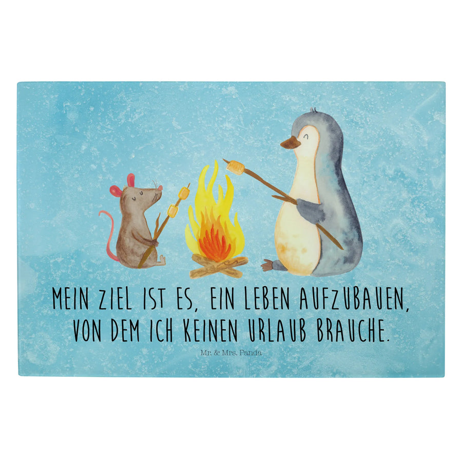 XL Szklana Deska do Krojenia pingwin ognisko - XL Glas Schneidbrett - z napisem - lodowoniebieski