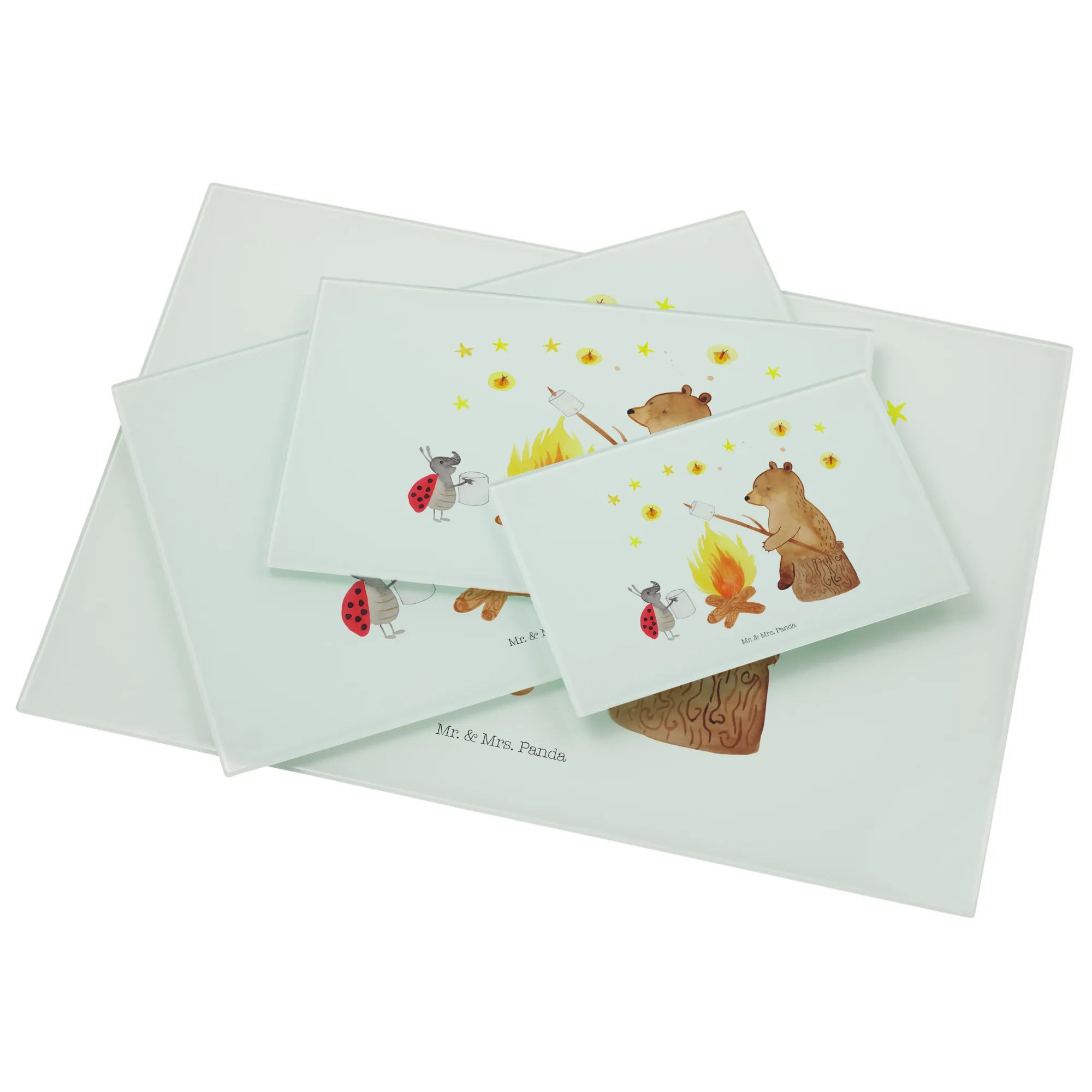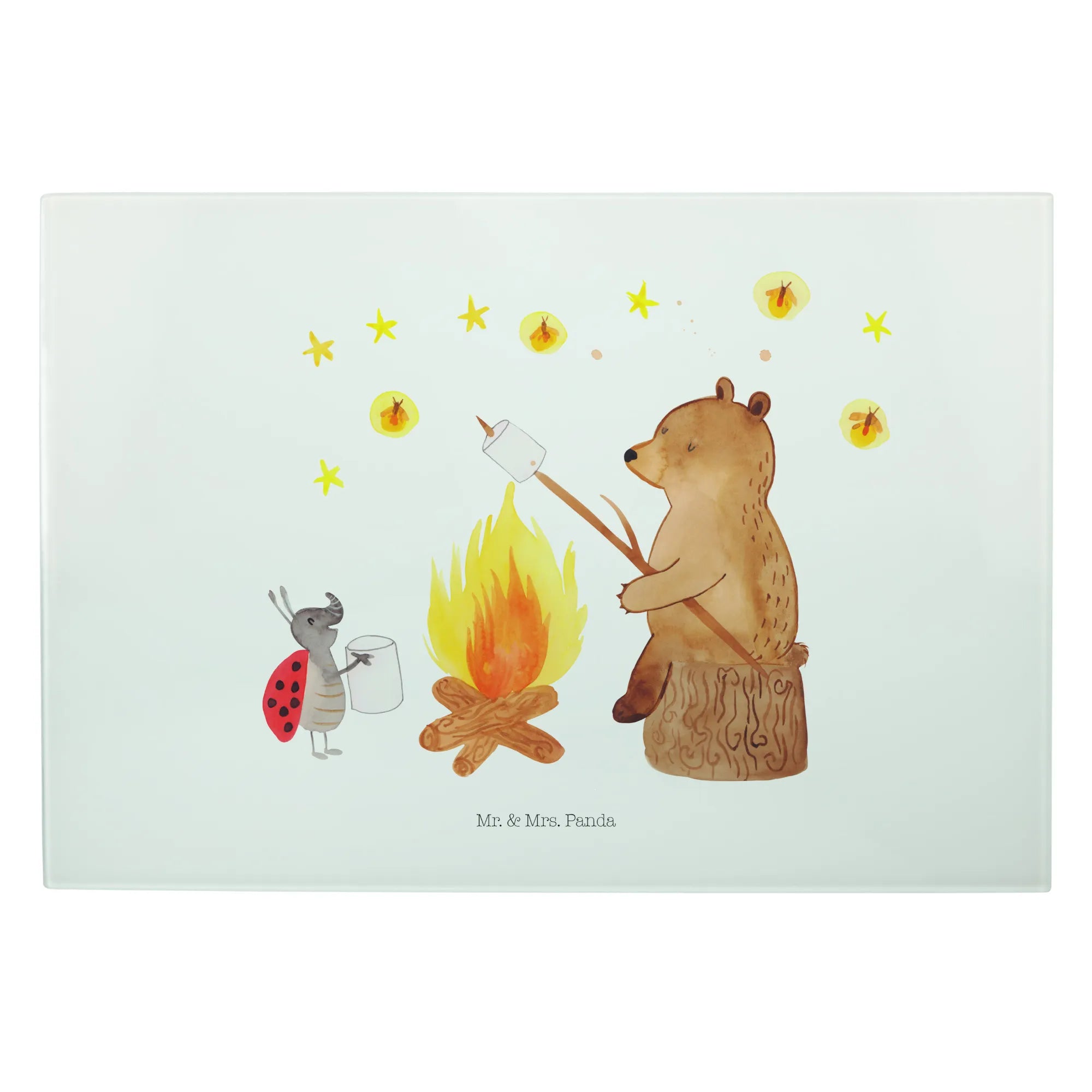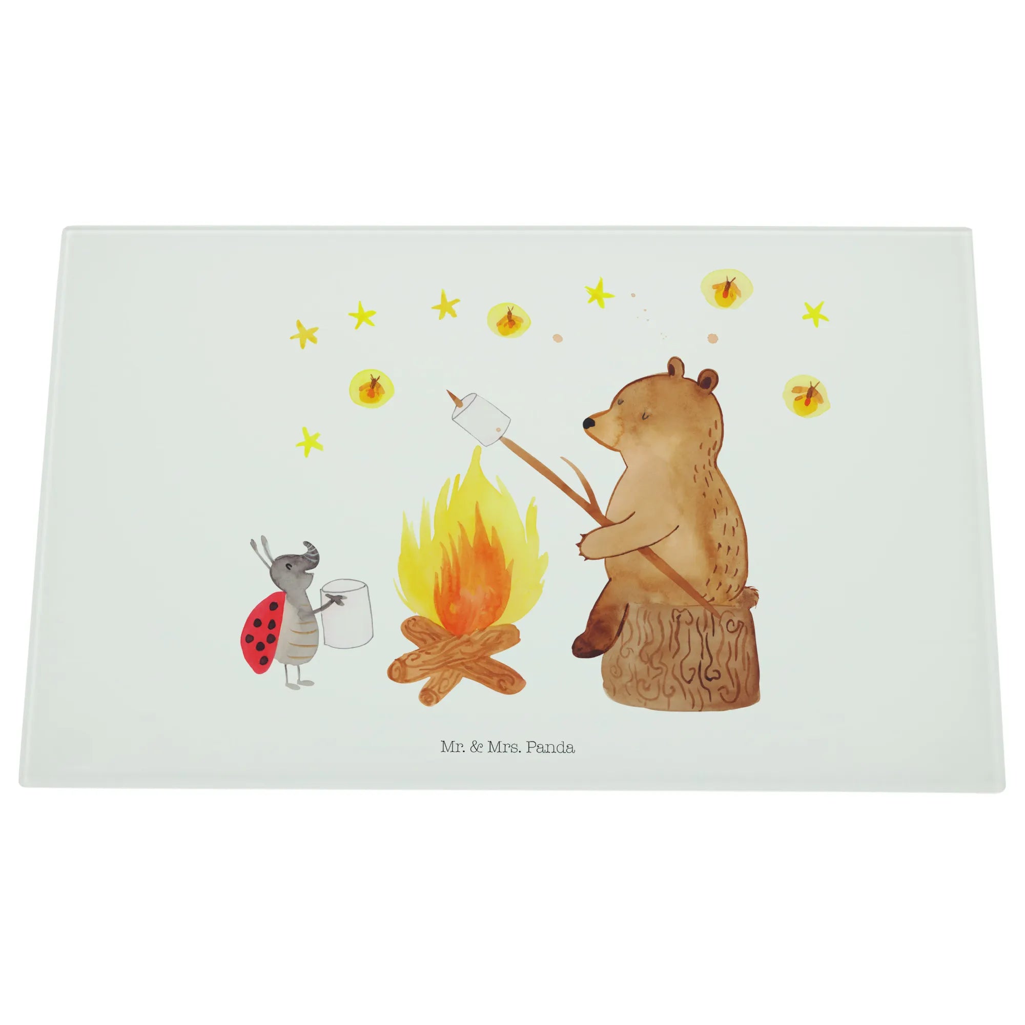 XL Szklana Deska do Krojenia Niedźwiedź i biedronka przy ognisku – Mr. & Mrs. Panda