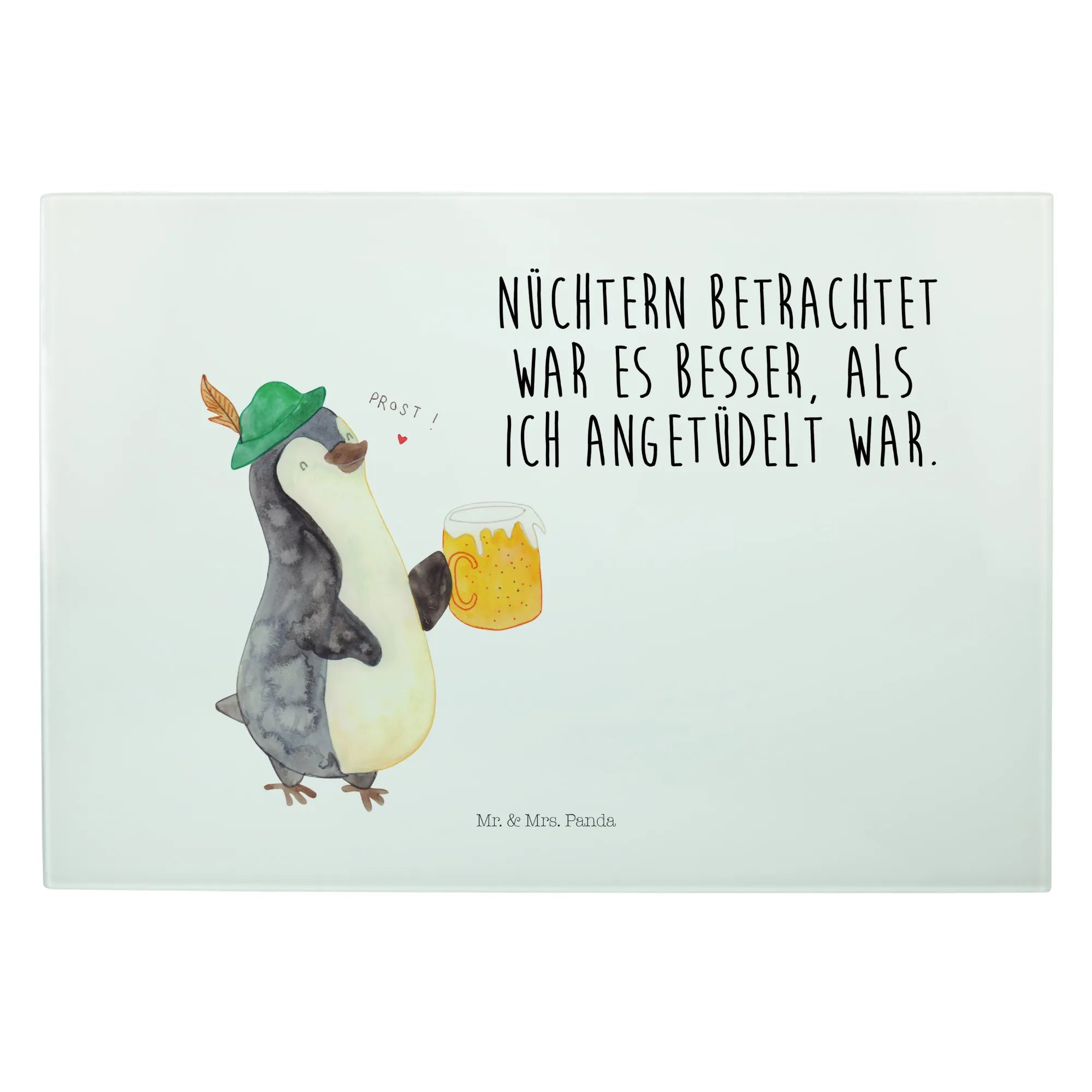 XL Szklana Deska do Krojenia pingwin piwo - Medium Glas Schneidbrett - z napisem - biały
